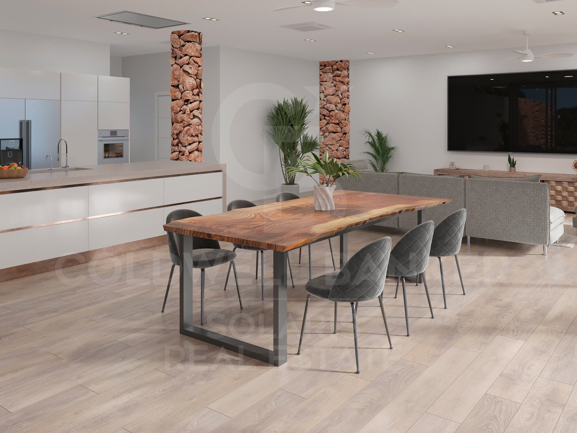 Cocina equipada con electrodomésticos de alta gama, frigorífico americano e isla con placa vitrocerámica invisible