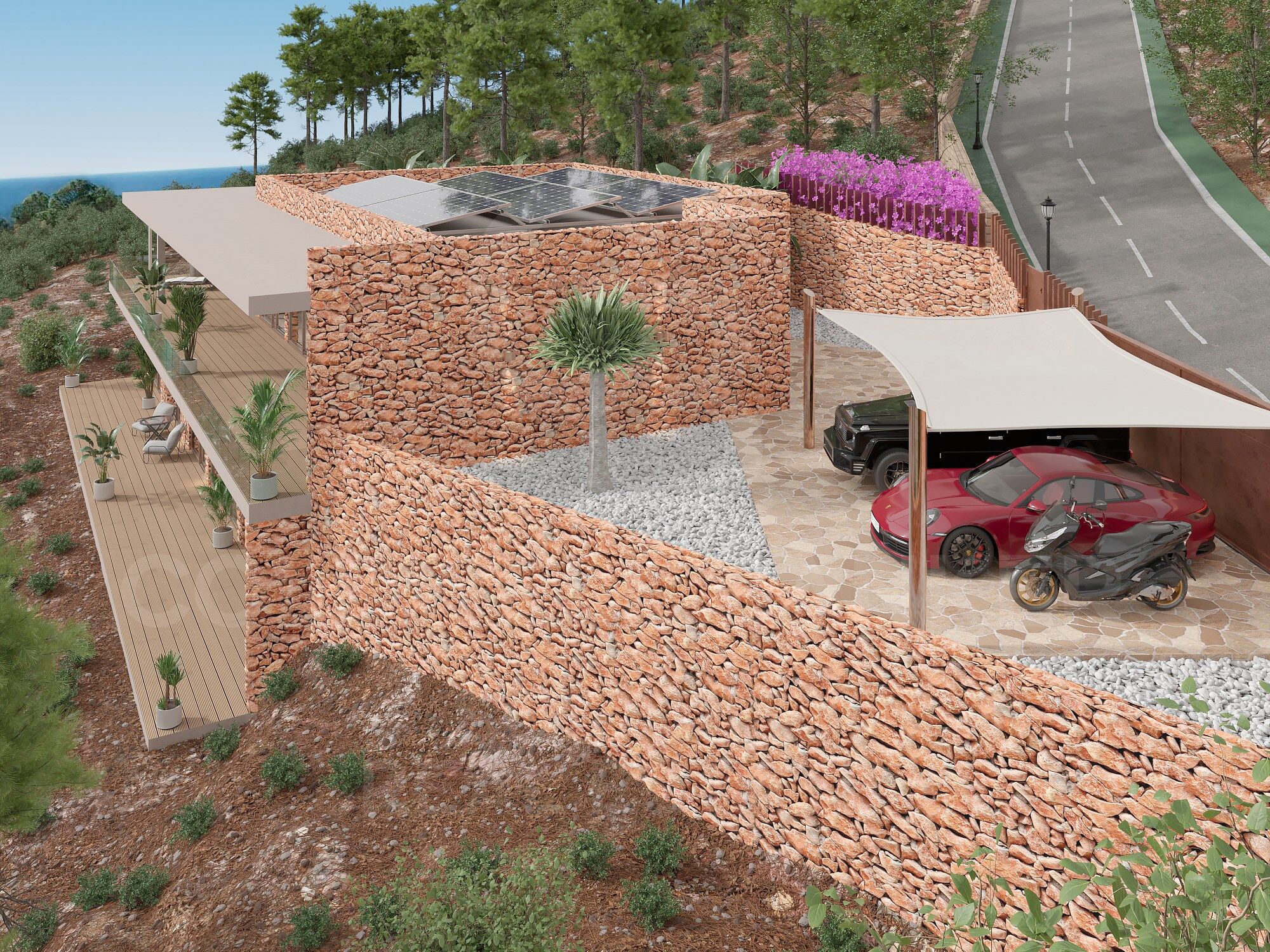 La villa ofrece una parcela llana y privada, perfecta para diseñar un jardín a medida, piscina o zonas chill-out.