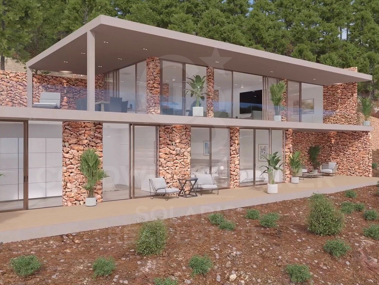 Construcción con estructura de acero y acabado artesanal en piedra natural