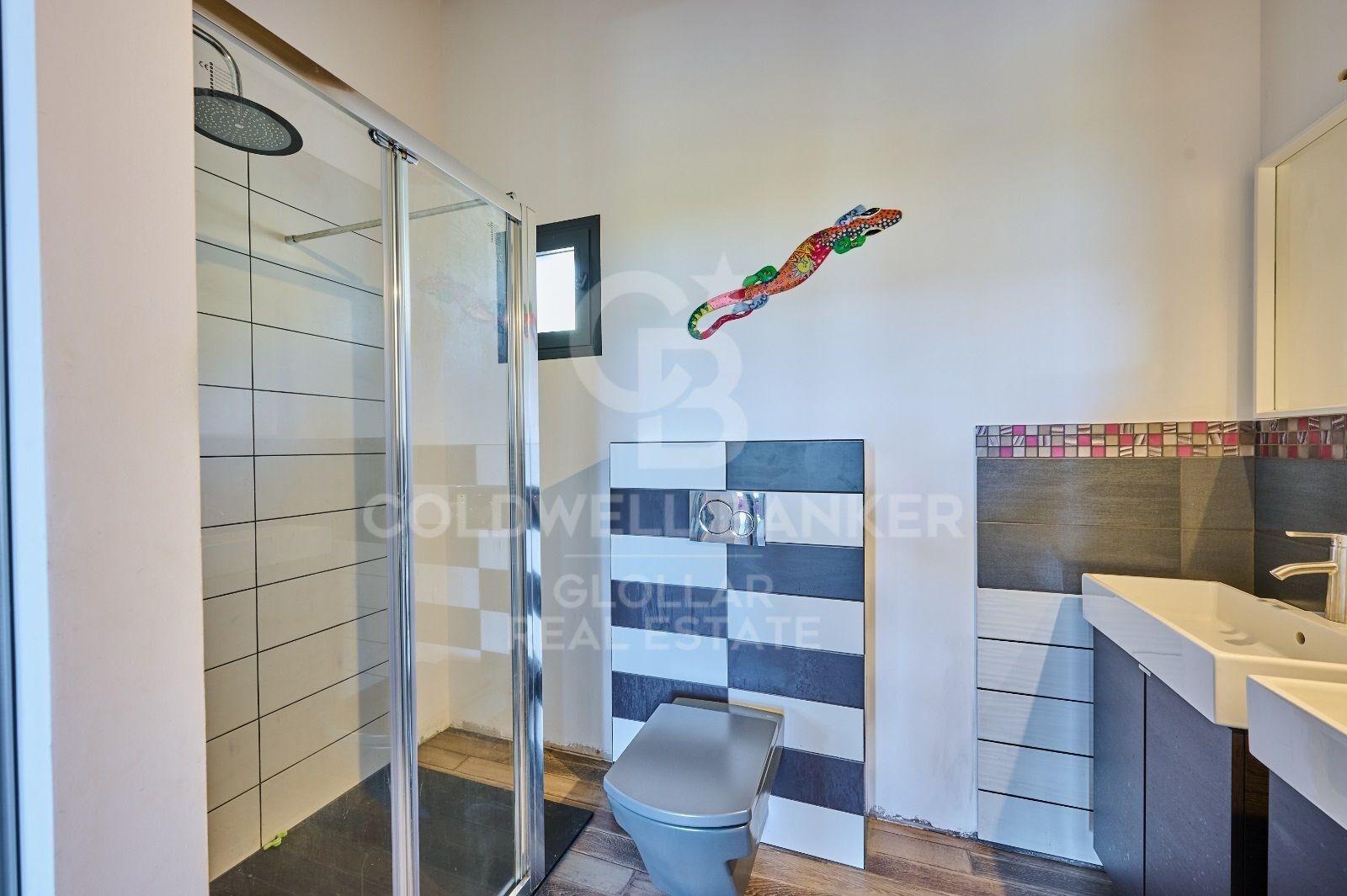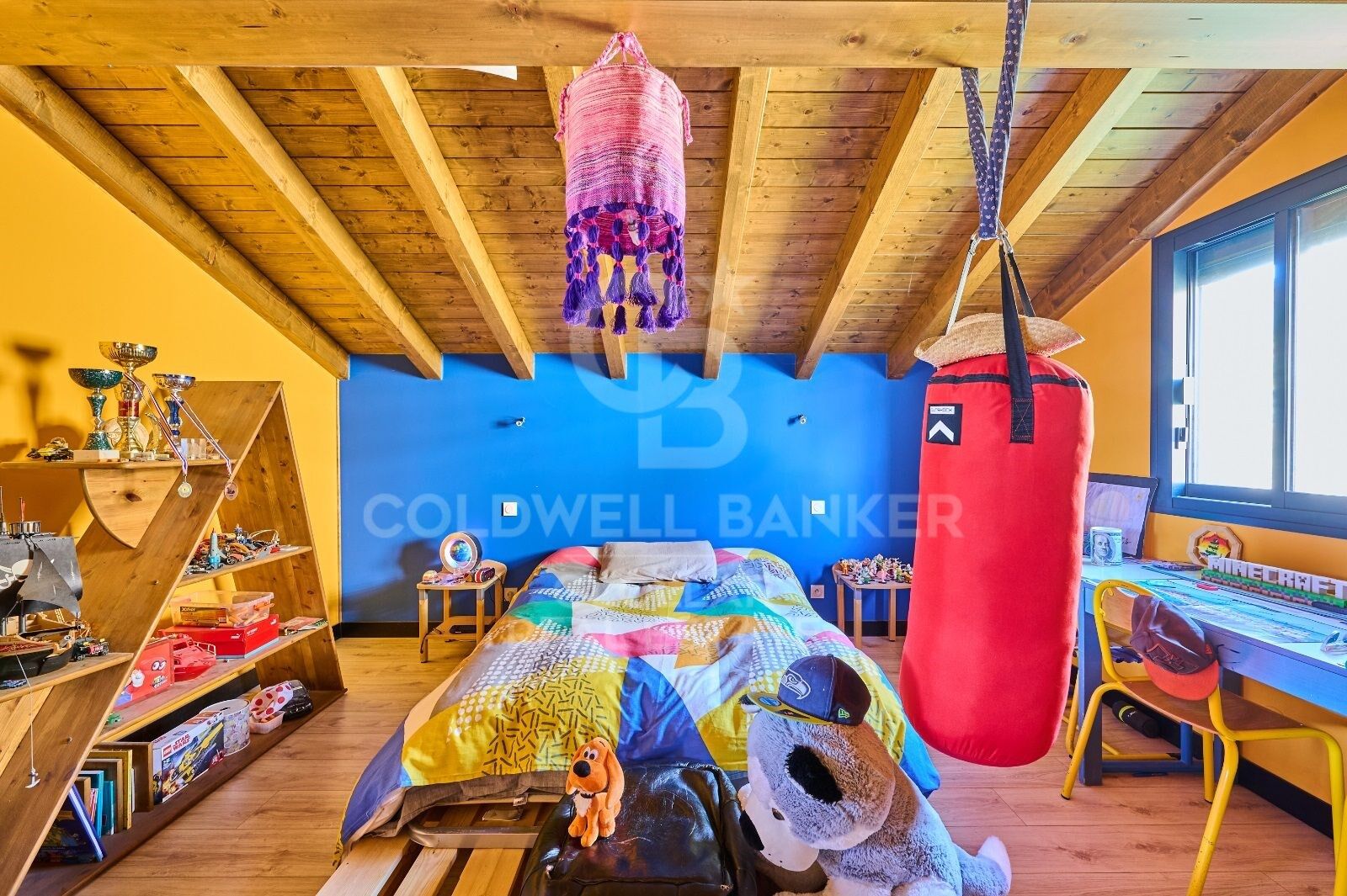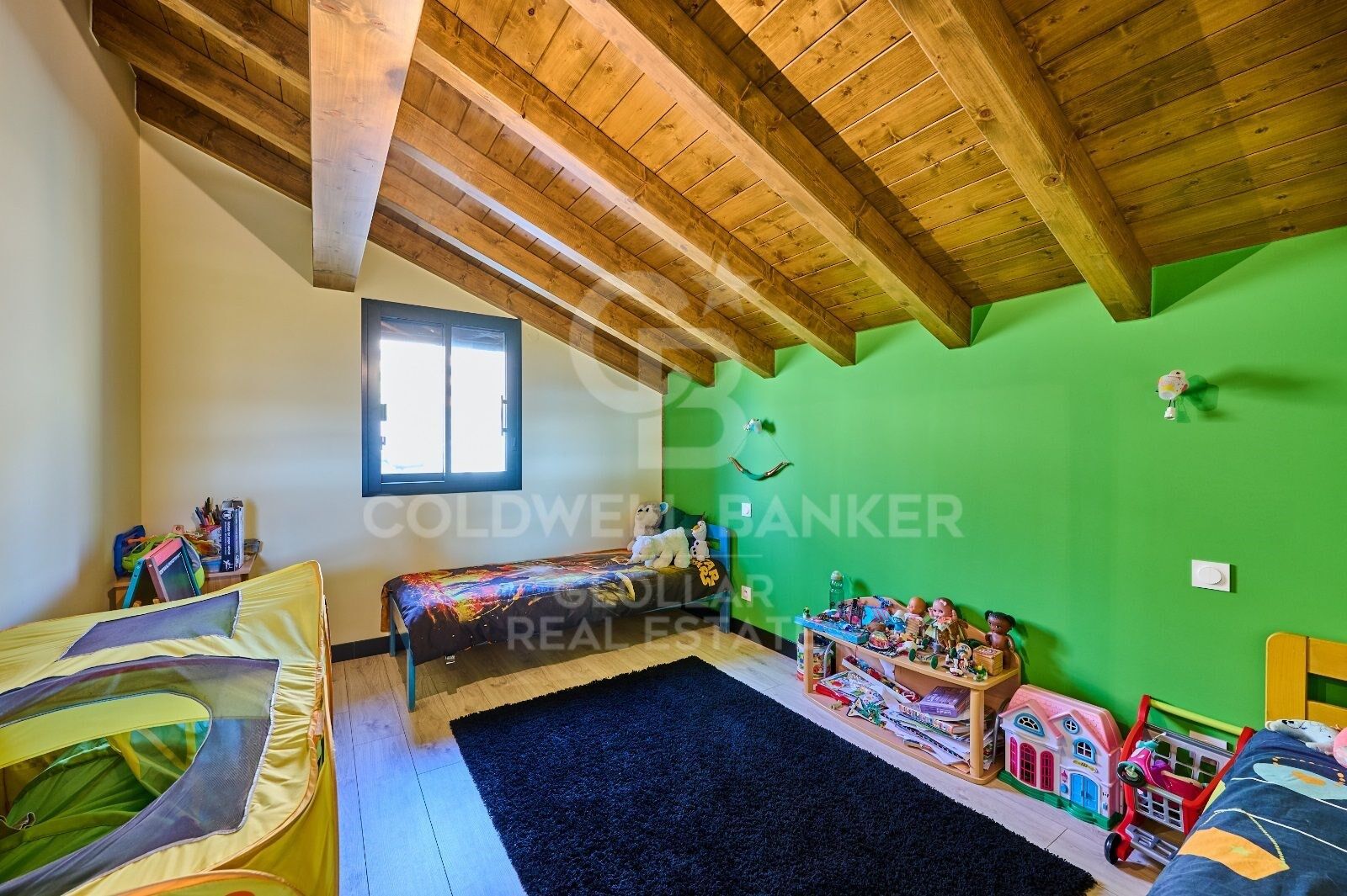 COLDWELL BANKER is pleased to present this charming, NEWLY RENOVATED house in one of the most exclusive areas of Bellaterra, with the best orientation, ready to move into. The 300 m2 house, with a land area of almost 1,000 m2 , has undergone a comprehensive renovation, both exterior and interior, resulting in a perfectly balanced complex consisting of a practical home and a modern, easy-to-maintain garden. Upon entering the property, which is entirely made of exposed brick on the exterior, we are pleasantly surprised by the landscaping that welcomes us; it is original, Mediterranean, and sustainable. The house is spread over two half floors, sufficient to overcome the unevenness of the plot. The interior access from the garage to the house also coincides directly at the entrance. On the lower floor, at the foot of the garden and pool, we find the wonderful living-dining room with a fireplace, filled with light through a large window and sliding doors that give direct access to the garden. The view of the green lawn that reaches down to the pool is very refreshing and invites us to step out into the garden. Right there, we have a large covered terrace where we can enjoy lunch and dinner al fresco, while still overlooking the enormous pool. There is enough space to accommodate a chill-out area to relax and enjoy conversations with family and friends. Finally, there is a beautiful barbecue well integrated into the building. Connected to the living room and with direct access to it, we find the functional and spacious kitchen, large enough to accommodate a breakfast area. From the kitchen, we access the utility and boiler area, which has its own exit to the west side of the house. On the same floor, there is a room that can be used as an office or bedroom, served by a bathroom with a shower. The upper floor has three double bedrooms that share a generous full bathroom, and the master suite with a dressing room and full bathroom. The garden can be seen from every room. The house has two outdoor storage rooms. The garden is irrigated by sprinkler irrigation in the pool area and drip irrigation in the planters and flowerbeds. There is a perimeter alarm. The pool has a saline water system. Gas heating. The renovation included new water, electricity, and gas lines throughout the house, and a drainage system on all sides of the roof. A walk around the house reveals every corner is well-maintained and functional. Aside from the large expanse of green lawn, the house boasts several magnificent trees. An impressive pine tree stands at the main entrance, and two cedar trees by the pool provide much-needed shade. On the east side of the house, there is an area of fruit trees. Don't miss this unique opportunity to own a brand-new home in a prime area of Bellaterra, surrounded by beautiful homes, with maximum privacy and tranquility and a south-facing orientation. LOCATION: Bellaterra is located in an elevated and sunny area, between the towns of Sant Cugat, Sabadell, Sant Quirze, and Cerdanyola. True to its origins, it has established itself as a prime residential area, with a family population residing year-round. Separated from the Collserola mountain range, Bellaterra faces the sea to the southeast and Montseny to the northeast. Its strategic location places it 12 minutes from Barcelona via the C-58 and 20 minutes from the AP-7 and B-30 highways. This connectivity allows access to all desirable services. In less than 5 minutes, you can reach leading hospitals, universities (UAB, UIC, and ESADE), the most prestigious international schools (Ágora, Europa School International, Japanese School, Thau, Viaró, La Vall), shopping centers (IKEA; Corte Inglés, cinemas), industrial estates (Can Sant Joan, etc.), and prominent sports centers. It offers the services expected of a small town, such as a pharmacy, bank, church, restaurants, sports club, hair salon, pet shop, and gas stations, among others. It also has two Generalitat railway stations. It offers everything you need to live in a natural setting without sacrificing immediate access to the surrounding cities. #ref:CBSC214