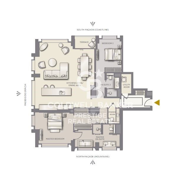 New luxury apartment on the middle floors of the 'Mandarin Oriental Residences' tower in Passeig de Gràcia, Barcelona. Formed by a spacious living room, with double aspect and a loggia; an open layout kitchen; two bedrooms with an ensuite bathroom; and a separate guest lavatory. Design, equipment, and finishes of the highest quality available in the market.