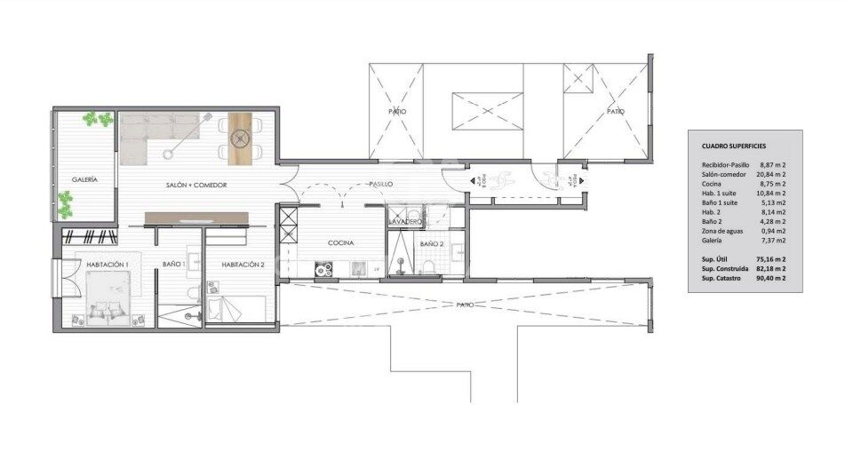 The property consists of a cosy living-dining room with a traditional gallery, from the interior courtyards of l'Eixample, which provides a great natural light to the space. The flat also has an independent kitchen, designed to be practical and functional. It has quality finishes that adapt to the space and is equipped with Bosch appliances.