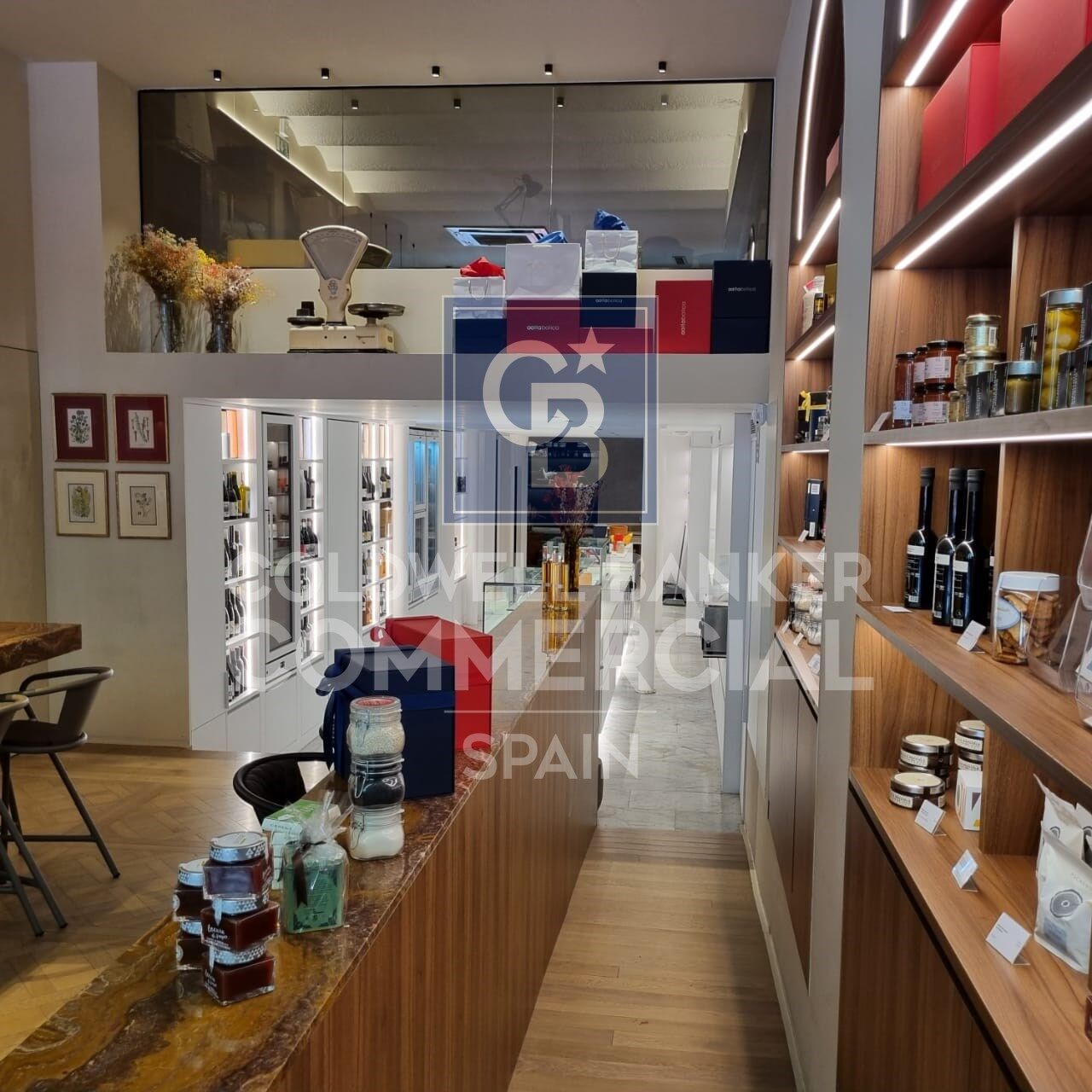 A spectacular store in operation is transferred, dedicated to the marketing of gourmet products with the sale of wines and a tasting space, located on the prestigious Enric Granados street in Barcelona, near Diagonal. The premises have been renovated just 2 years ago and have been in operation for 1 year, so it is in perfect condition and very well maintained. Ideal for a wine bar, pastry shop, gourmet store with a restaurant, store, cafe, ice cream parlor, brunch, etc. Local Features: - Facade: Glass, offering excellent visibility and luminosity. - Entrance Area: Persian onyx bar measuring almost 4 meters, Italian oak parquet floor, shelves for displaying products and stools for the cafeteria/bar area.. . - Exhibition Area: White Macael marble area with three central islands for displaying sausages and cheeses. Wine cellar with cold wine cellar and shelves full of products for sale. - Tasting Area: Cozy, with Italian oak parquet and dimmable lighting, equipped with 6 tables with capacity for 13 people (according to license). - Kitchen/Workshop: At the back, open, fully equipped with oven, iron, microwave, salamander and laundry area, all in black, new, very elegant and spacious. There is a small 5m2 patio for waste storage. - Storage and bathroom on the ground floor: Two storage areas on the ground floor and a bathroom with two toilets adapted for the disabled. - Storage and Office: On the upper floor, office, storage, staff room and another bathroom (non-commercial). Other features: - Without smoke outlet, but you can cook an infinite number of dishes. - Without terrace, although you can request permission from the City Council. - Rental Contract: 8 years remain of an initial 10-year contract. - Optional: Transfer with or without equipment. Fees: 15% of the annuity plus 5% of the Transfer plus VAT #ref:LOC_16