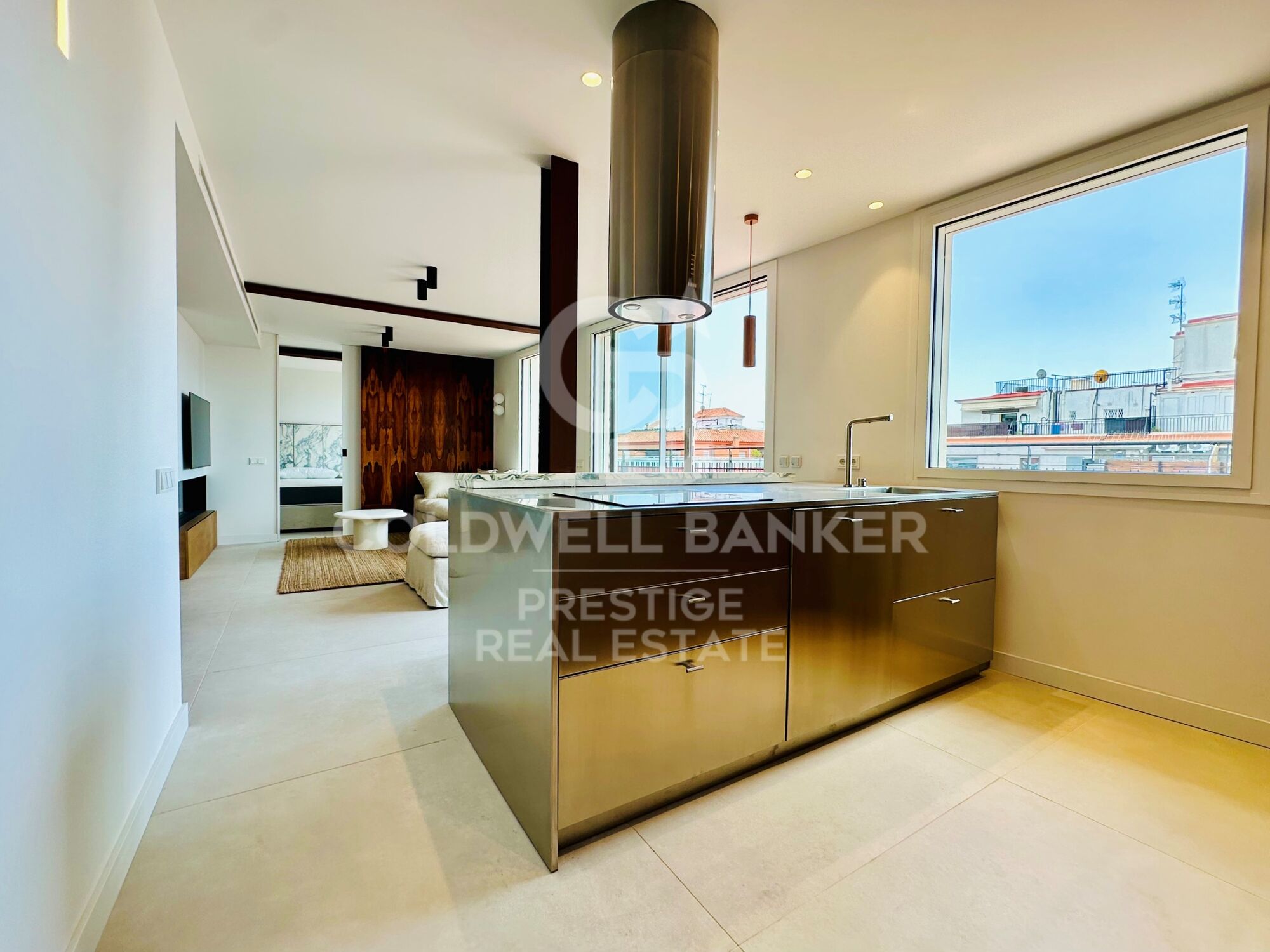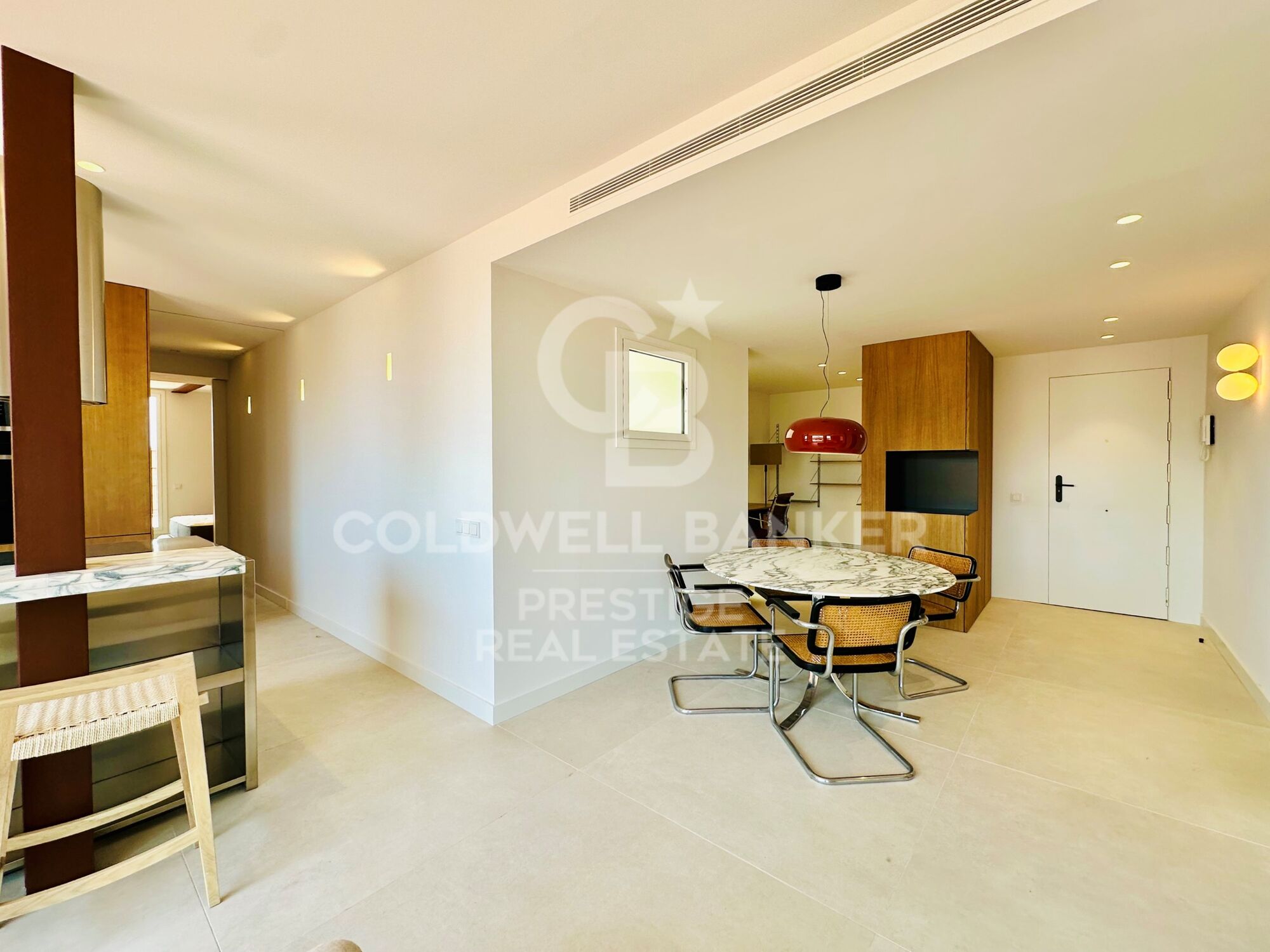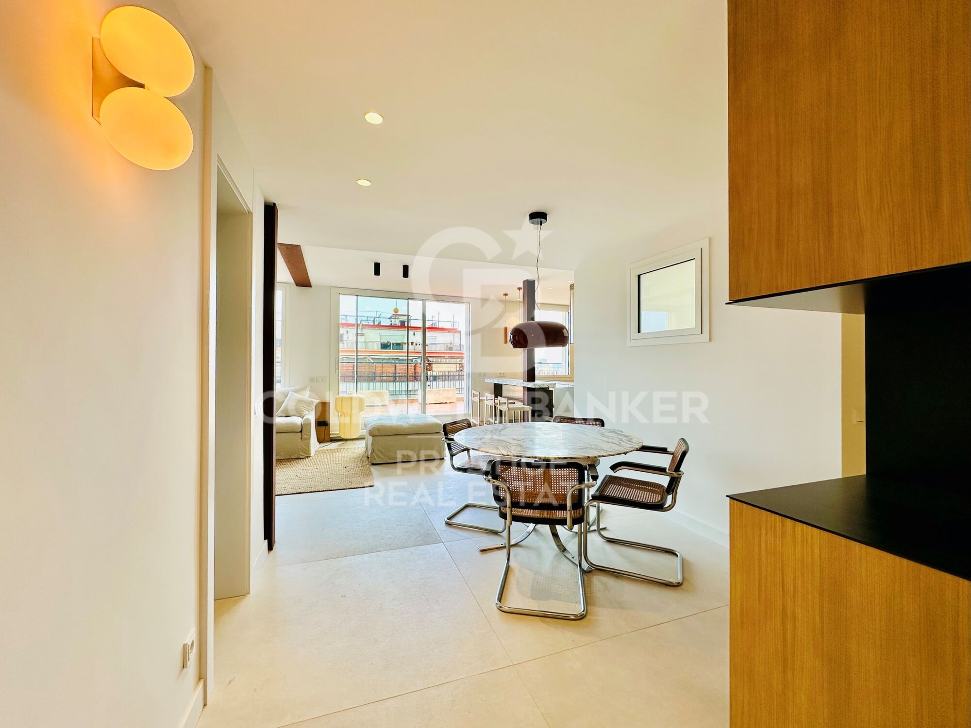 The renovation has been carried out with top-quality materials and meticulous attention to detail. The open-plan kitchen combines functionality and style: marble bar, stainless steel surfaces and a matching decorative hood. Equipped with Siemens state-of-the-art appliances (fridge, oven, microwave, dishwasher and ceramic hob).
