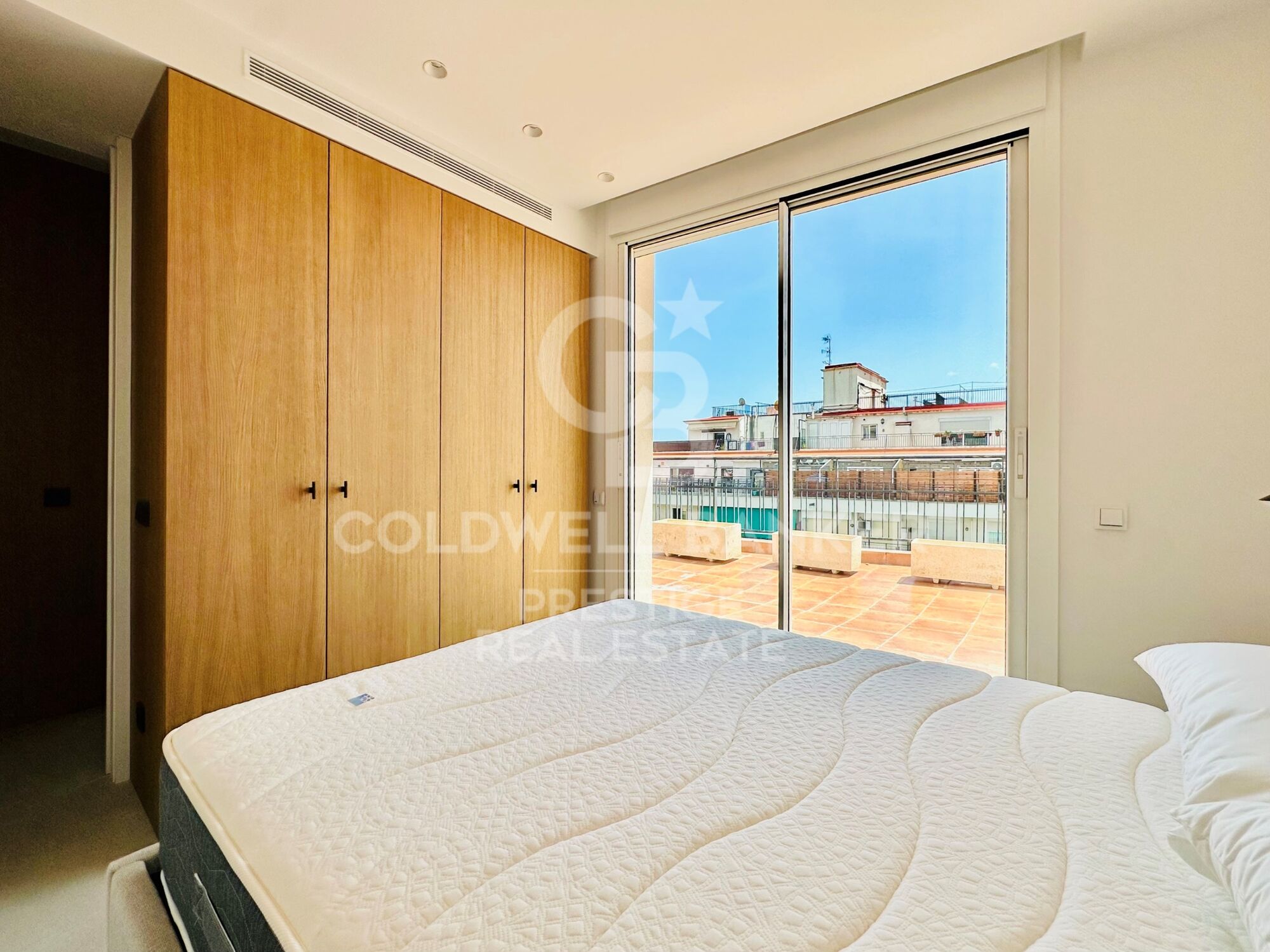 Two double bedrooms with built-in wardrobes and direct access to the terrace.
