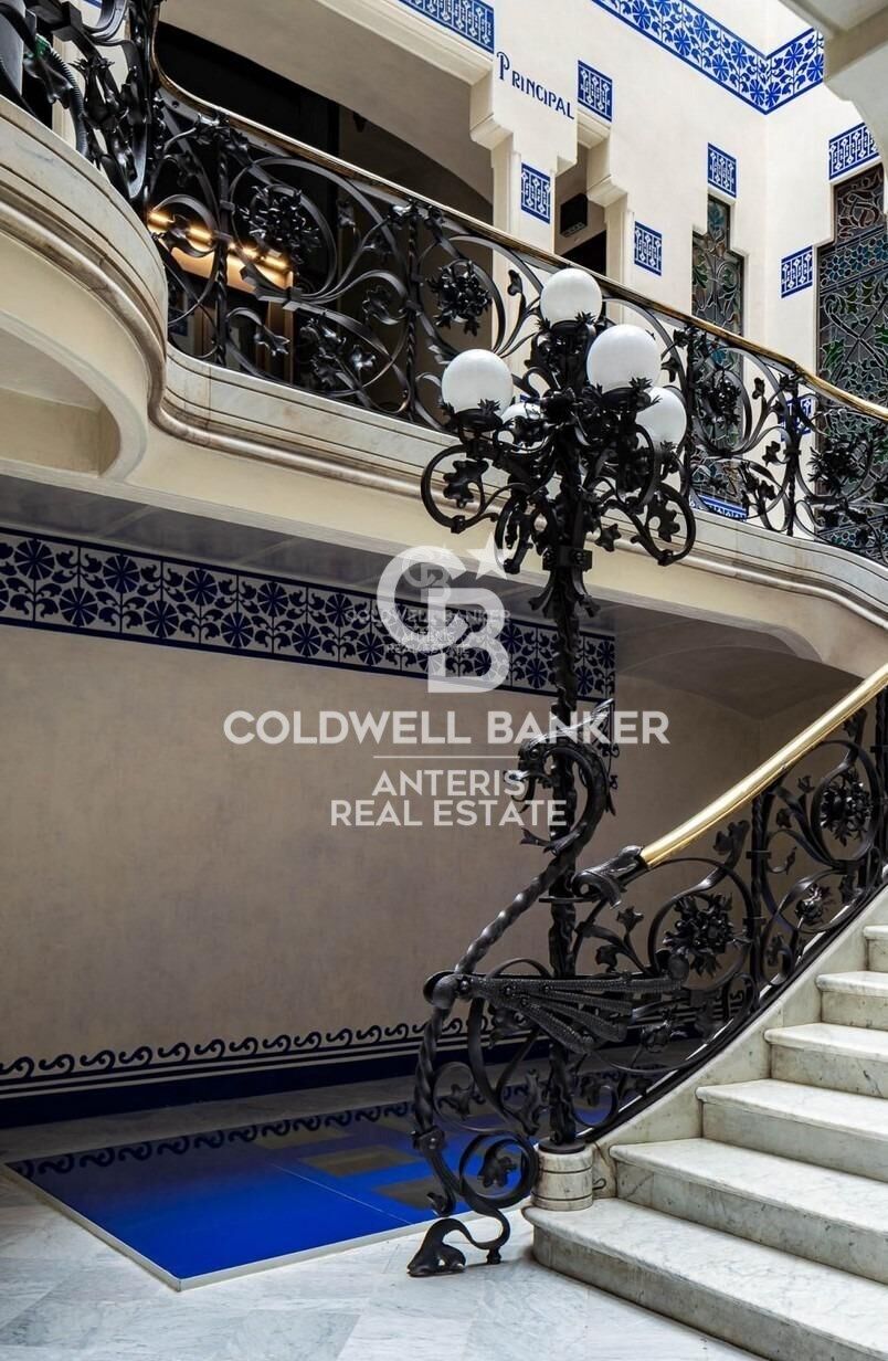 Each apartment within Casa Condeminas celebrates these original architectural elements, featuring original hydraulic floors, leaded glass, and large windows with beautifully restored wooden shutters that enhance both acoustic and thermal insulation.