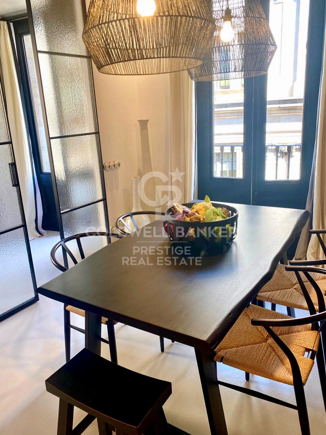 With a surface area of 79 m², the property combines the authenticity of high ceilings with Catalan vaults with the comfort of contemporary design and art. Large windows flood every room with natural light.