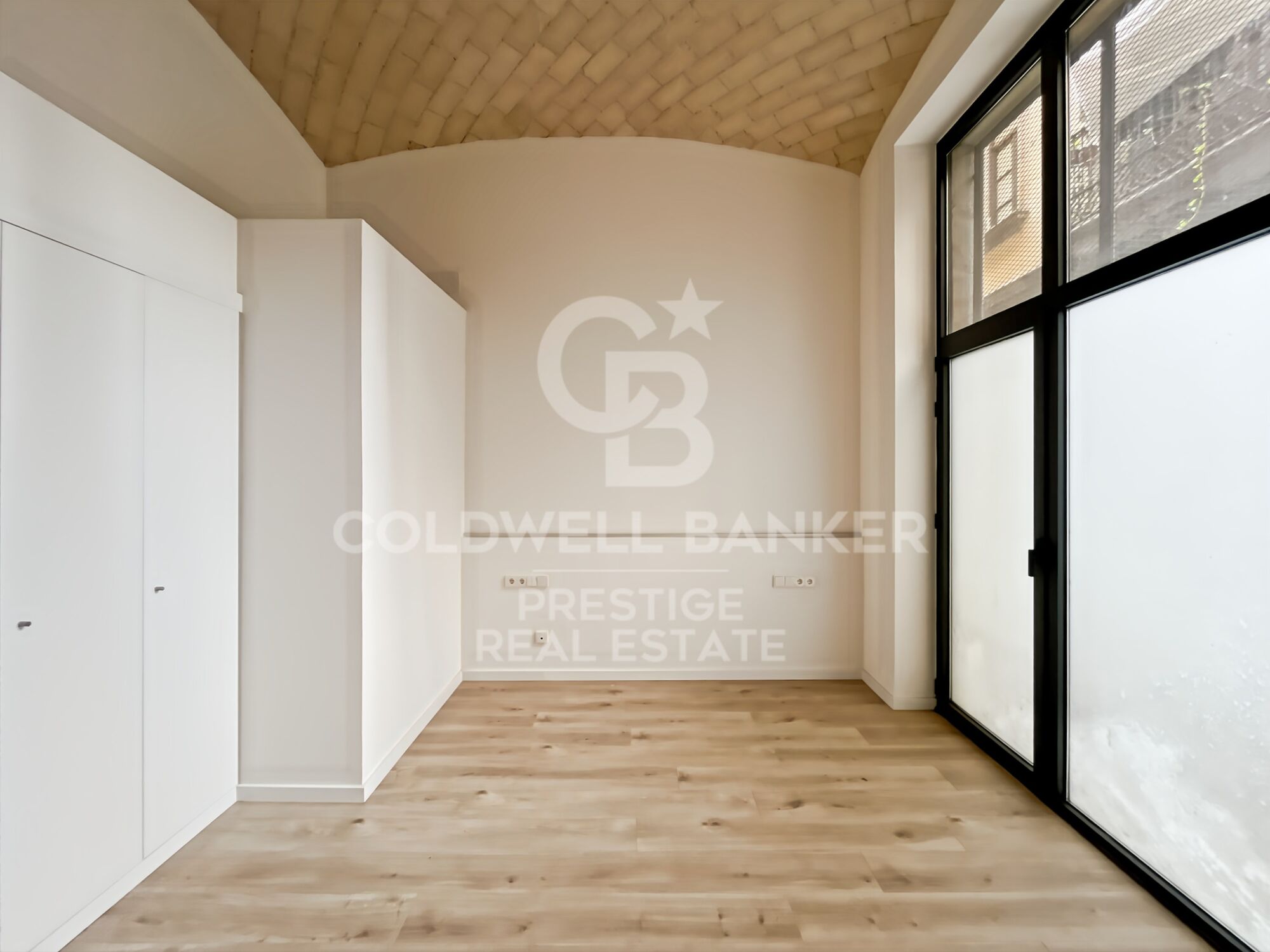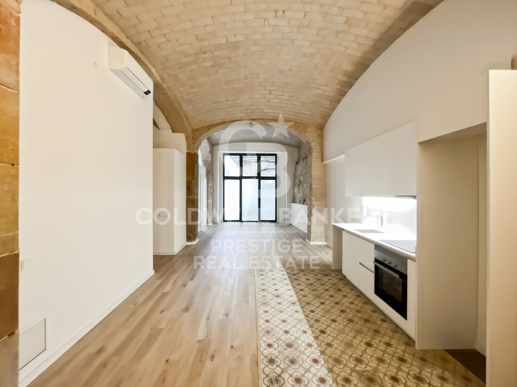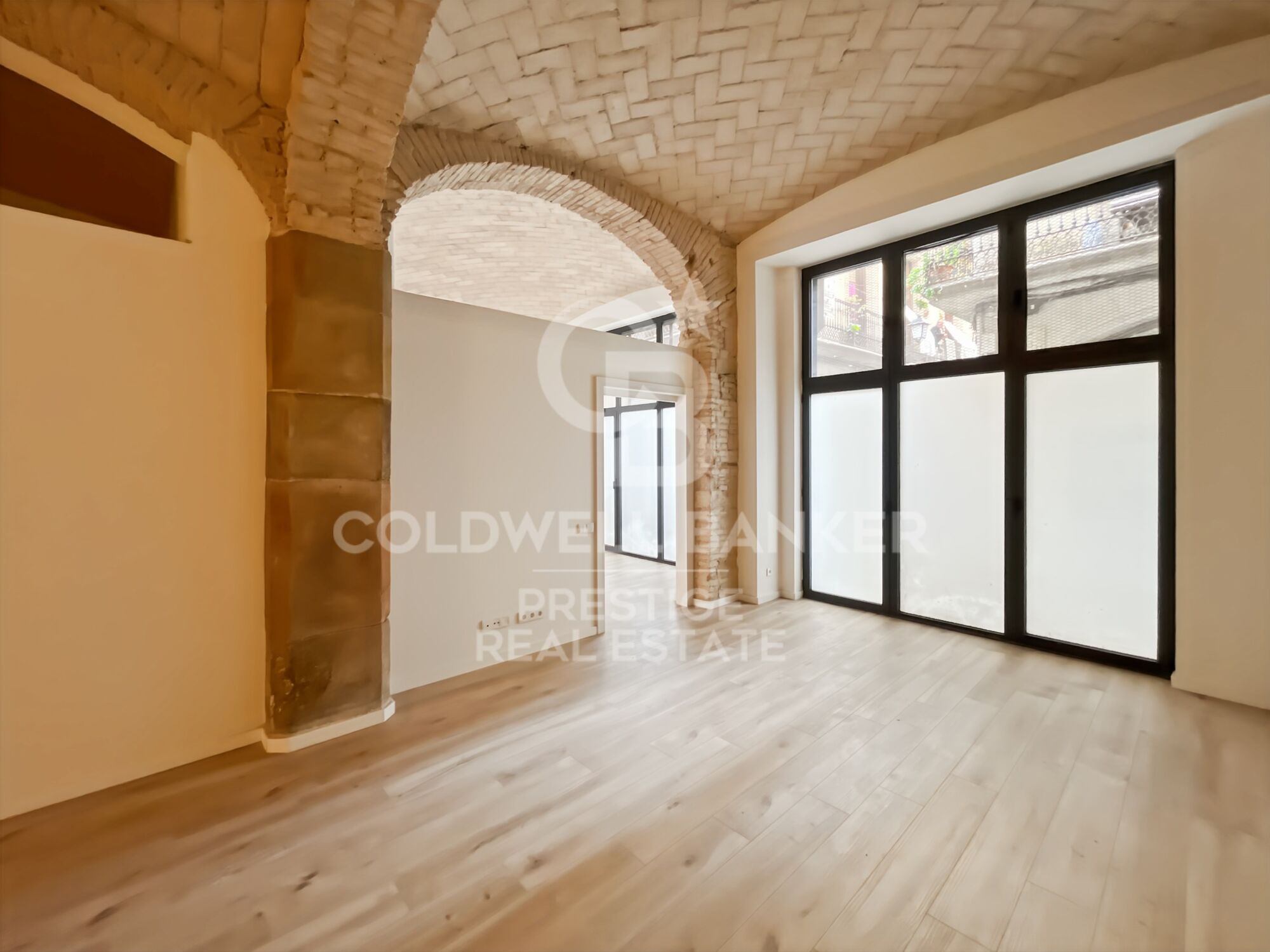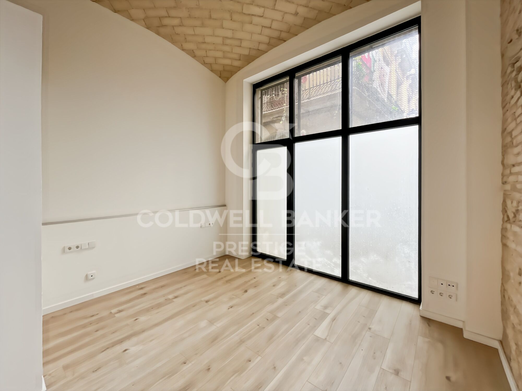 The spaces have been designed to make the most of natural light, creating a cozy atmosphere, with style and full of character. The distribution is versatile and adapts to both residential and professional use, being ideal for creative profiles or those looking for a space where to combine housing and work. The living room, with large windows and access to the interior patio, offers a quiet atmosphere in the heart of the city. The double bedroom is spacious and comfortable, and the whole is completed with a modern and well-resolved bathroom. Located in a fully renovated 1828 estate, the building retains its historical essence while incorporating current elements for greater comfort. It also has a pleasant communal terrace, perfect to enjoy the good climate of Barcelona, relax or share moments with other residents. Located in the heart of the Gothic Quarter, this property allows you to live one of the most authentic and vibrant areas of Barcelona. A few steps from emblematic places such as Soho House Barcelona, the charming Plaza de la Merced and the historic Basilica de la Merced, as well as a short distance from the port and Barceloneta Beach. A perfect environment for a dynamic lifestyle, surrounded by culture, gastronomy and social life, ideal for those who want to enjoy the most of the city center.