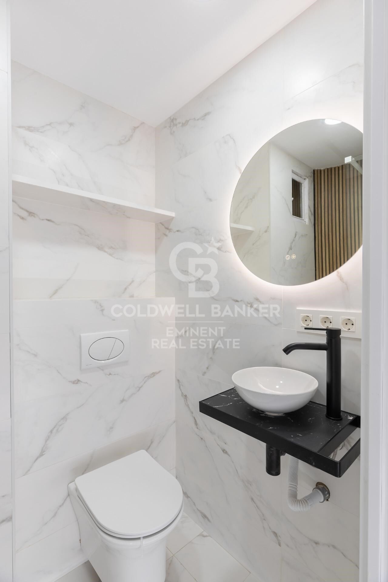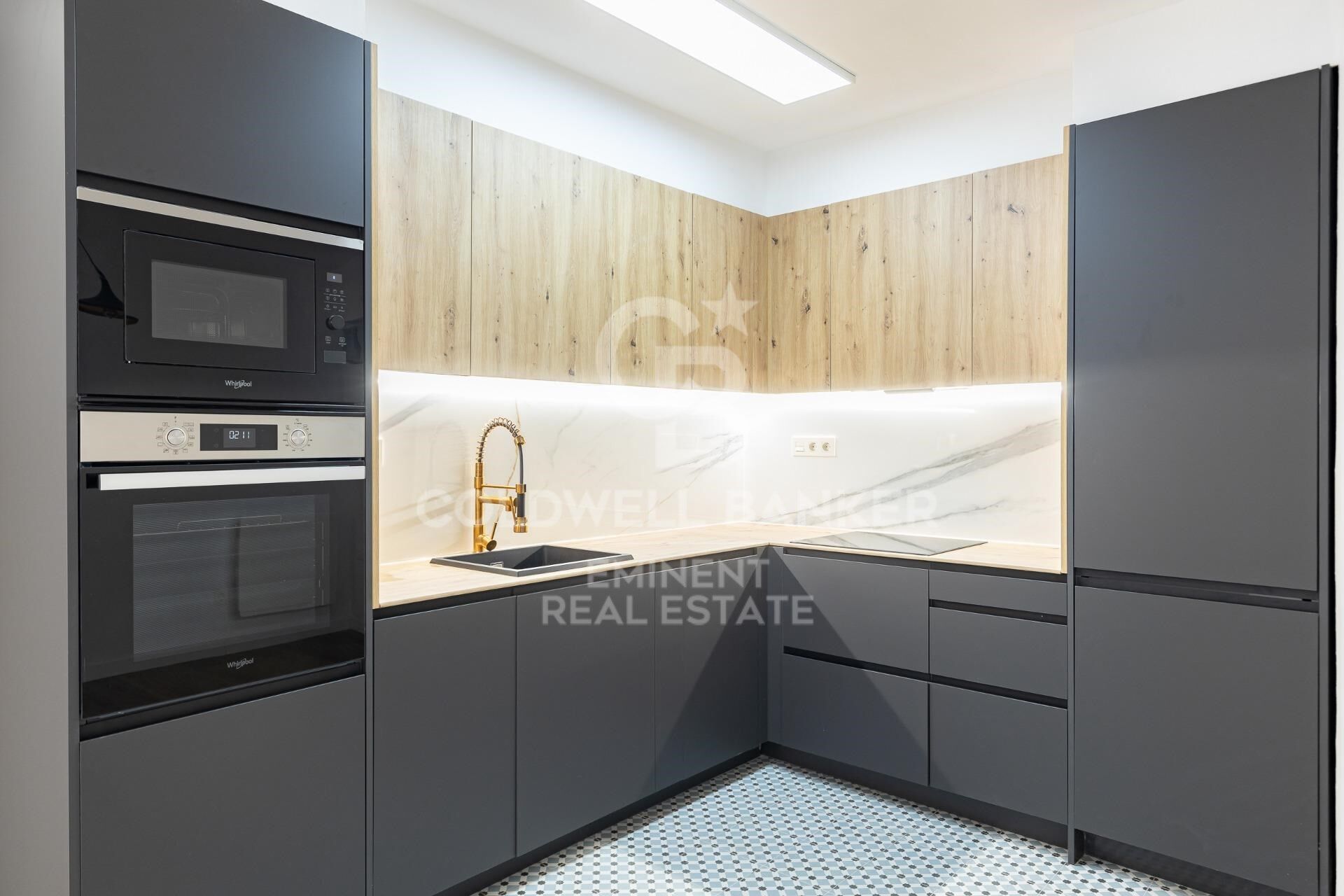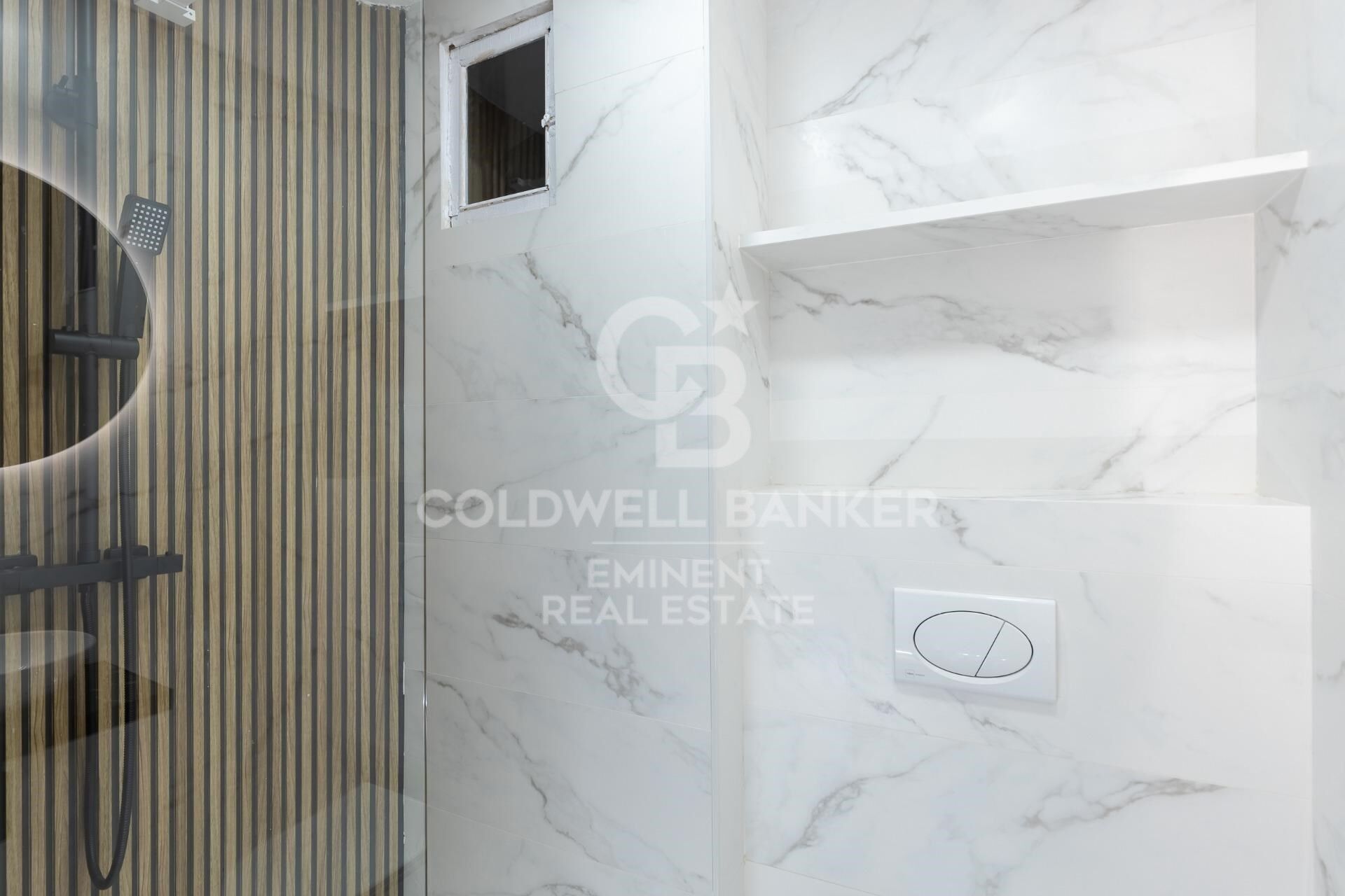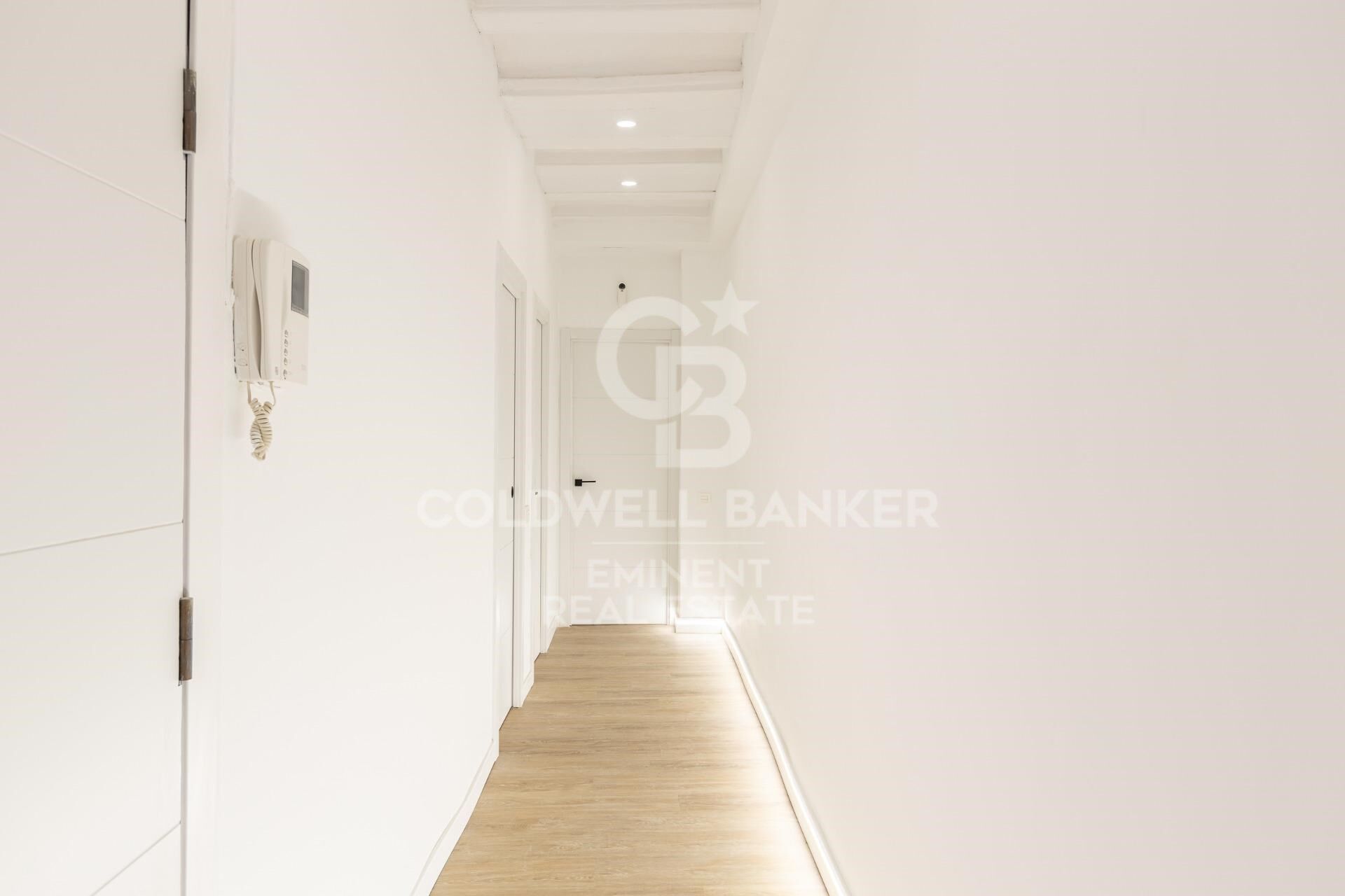 The property has been fully renovated, preserving original elements of great value such as the Catalan vaulted ceilings with wooden beams, which add warmth and authenticity. From the living room, there is access to a charming balcony with two large windows that flood the space with natural light.