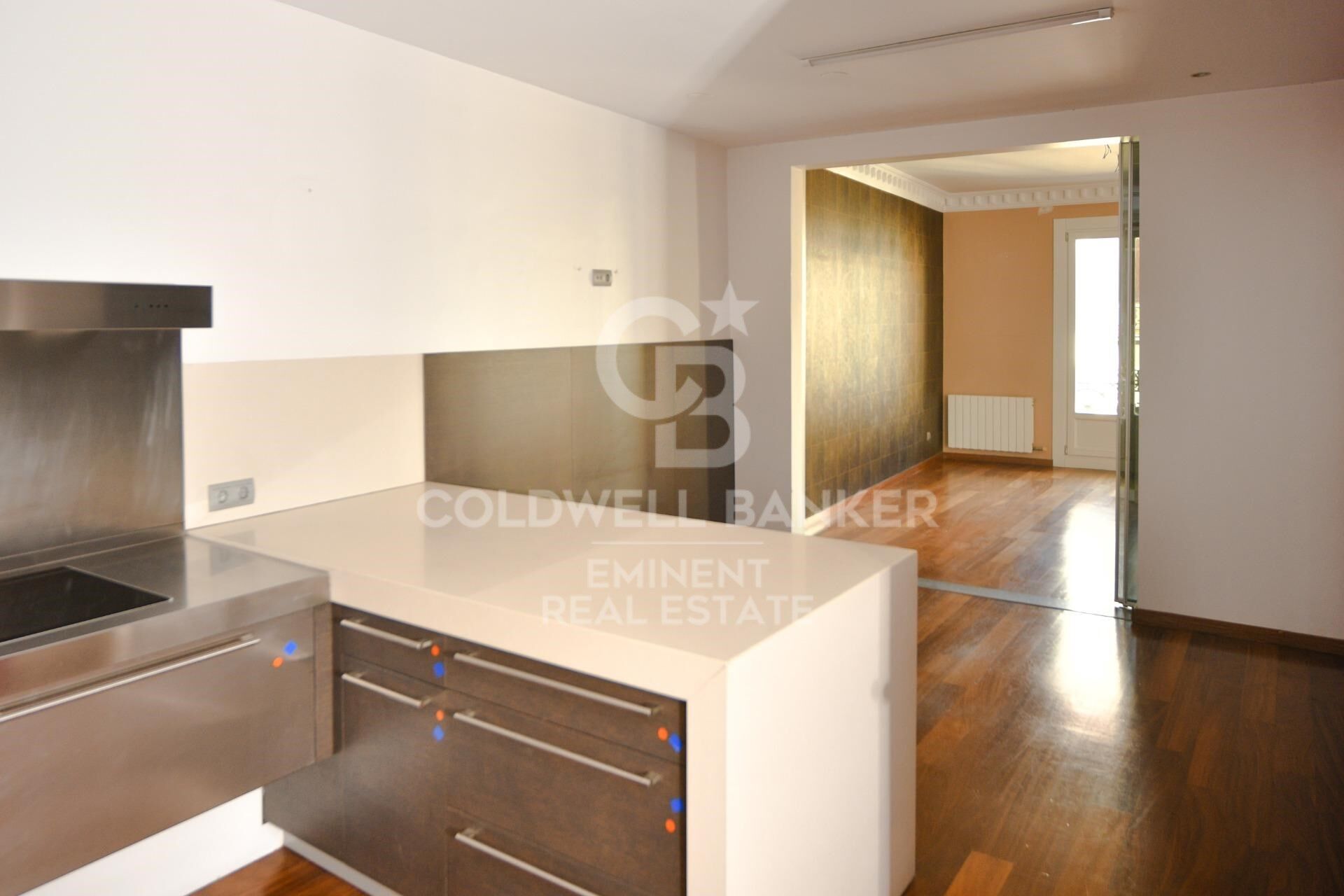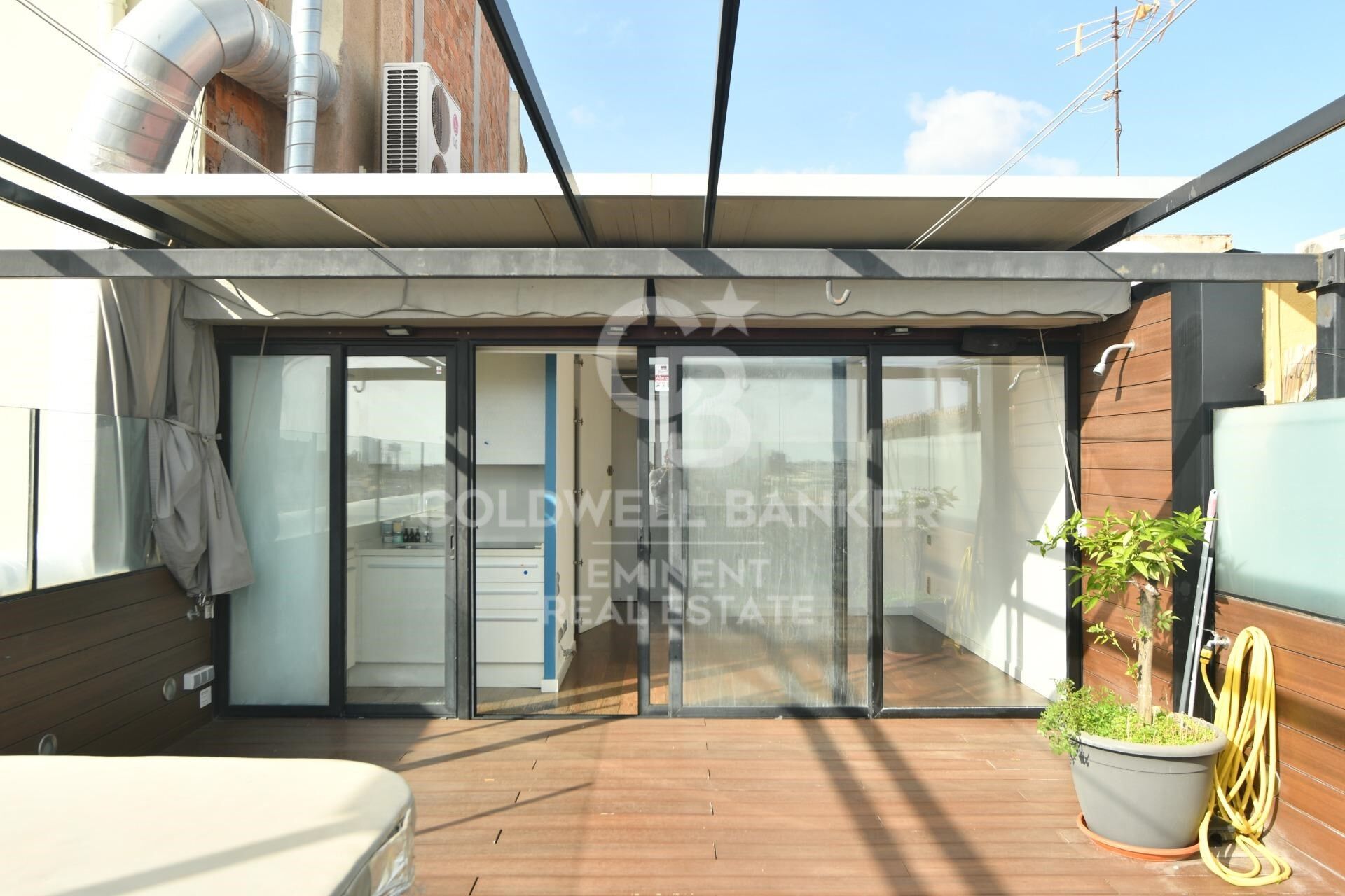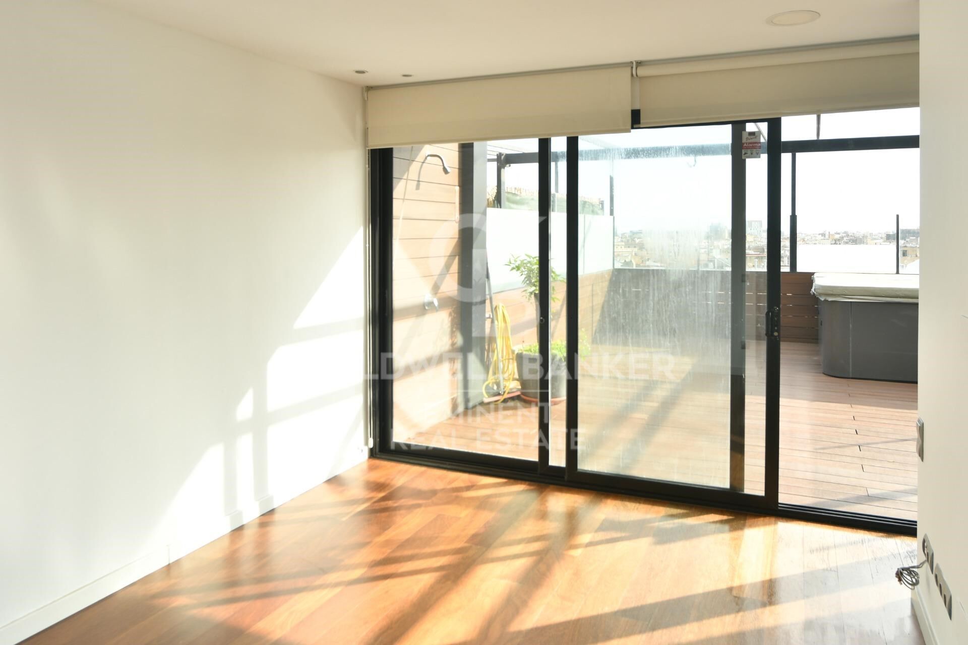 Coldwell Banker Anteris presents this fantastic renovated penthouse with a private rooftop terrace, located on one of the most sought-after and quiet streets in the neighborhood, surrounded by shops and all kinds of services. Located on the top floor of a classic 1900s building with an elevator, this bright apartment offers 131 m² of floor space plus 41 m² of private terrace, with a layout designed for comfort, natural light, and elegance. The high ceilings and wooden beams add warmth and character, while the natural parquet floors and exterior woodwork ensure comfort and style. The living-dining room stands out for its spaciousness and brightness thanks to its four balconies, and the open-plan kitchen is fully equipped with built-in appliances and a small wine cooler. All this with the added character provided by the wooden beams on the ceiling. The sleeping area includes a double bedroom with en-suite bathroom and the master bedroom with en-suite bathroom, dressing room, and an exterior balcony with morning light. In addition, there is an architect's plan to convert the property into three bedrooms, providing flexibility for future owners. Its features include renovated facilities, ducted air conditioning, wooden beamed ceilings, natural parquet flooring, and double-glazed exterior windows, ensuring comfort, efficiency, and style. Thanks to its privileged location, just a few steps from shops, cafes, local markets, and public transportation, this penthouse is ideal both as a ready-to-move-in home and as an excellent investment in a well-established neighborhood with high demand in Barcelona. A home with light, design, and character that combines the exclusivity of a private terrace with the convenience of living in the heart of the city. Contact us and schedule your visit! #ref:AV255