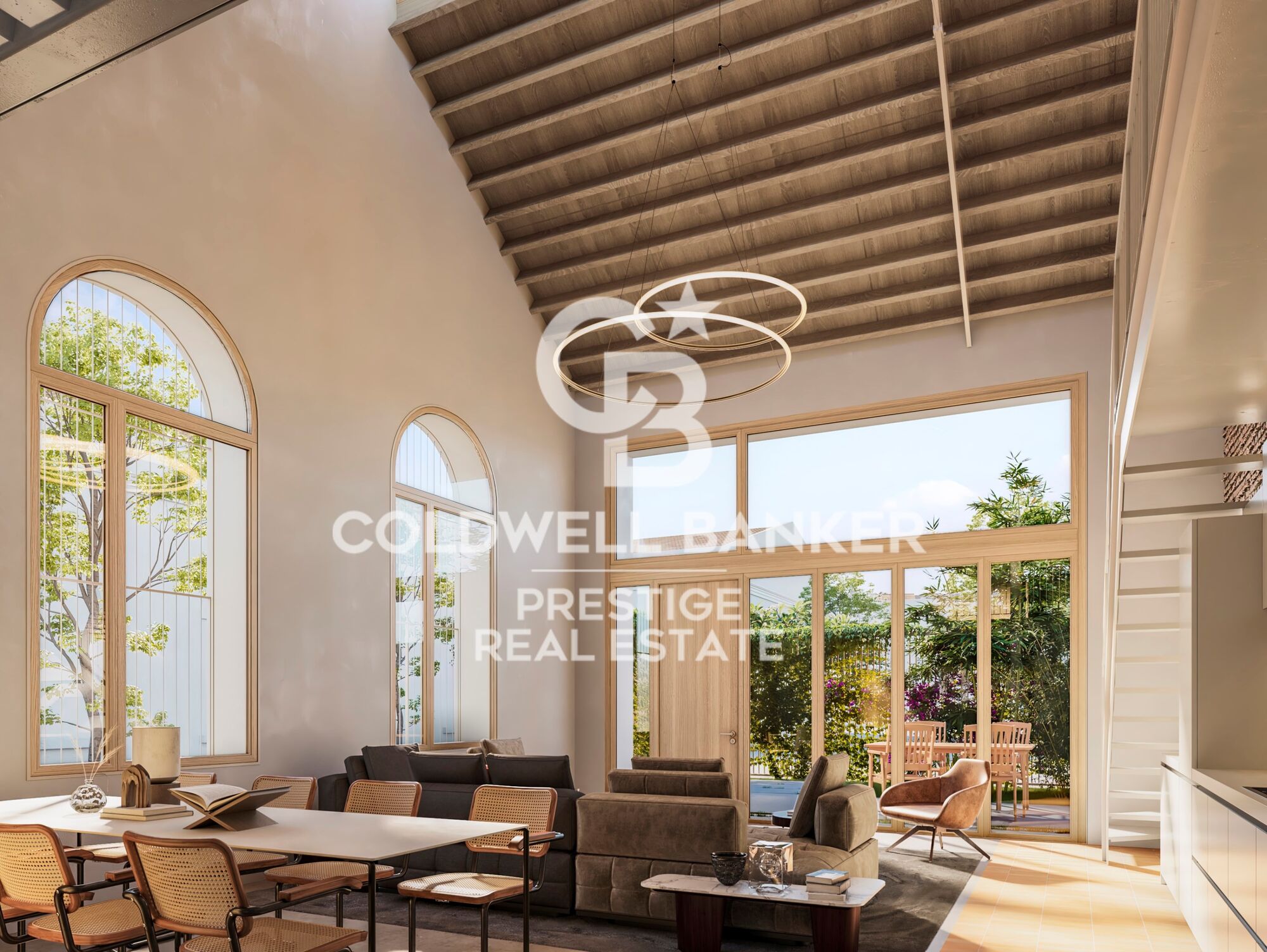 New development of 4 refurbished emblematic buildings with unique lofts for sale in Poblenou, Barcelona.