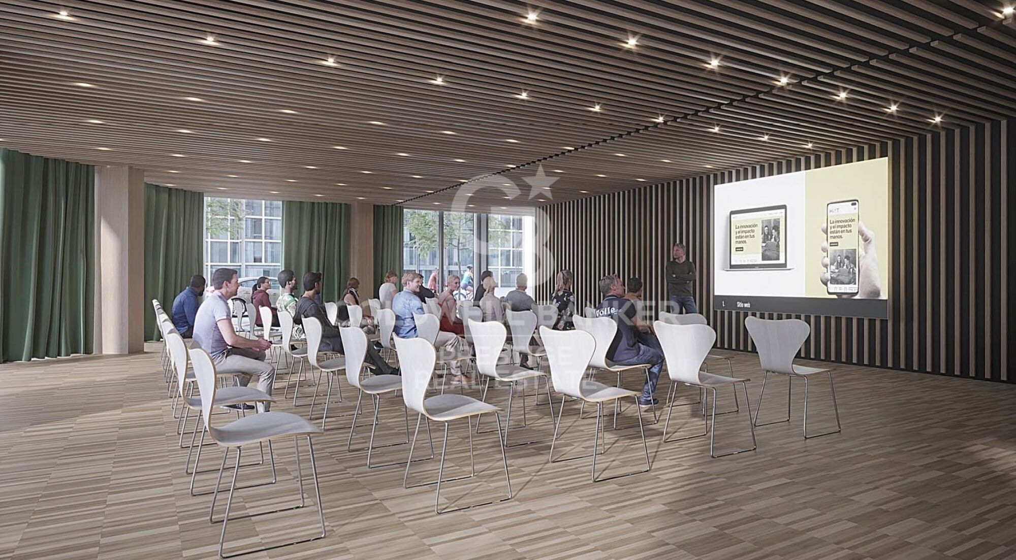 The HUMAN building features service areas such as the wellness point and the multi-purpose room, as well as office spaces, while the TECH building is designed primarily to be work and high productivity spaces.