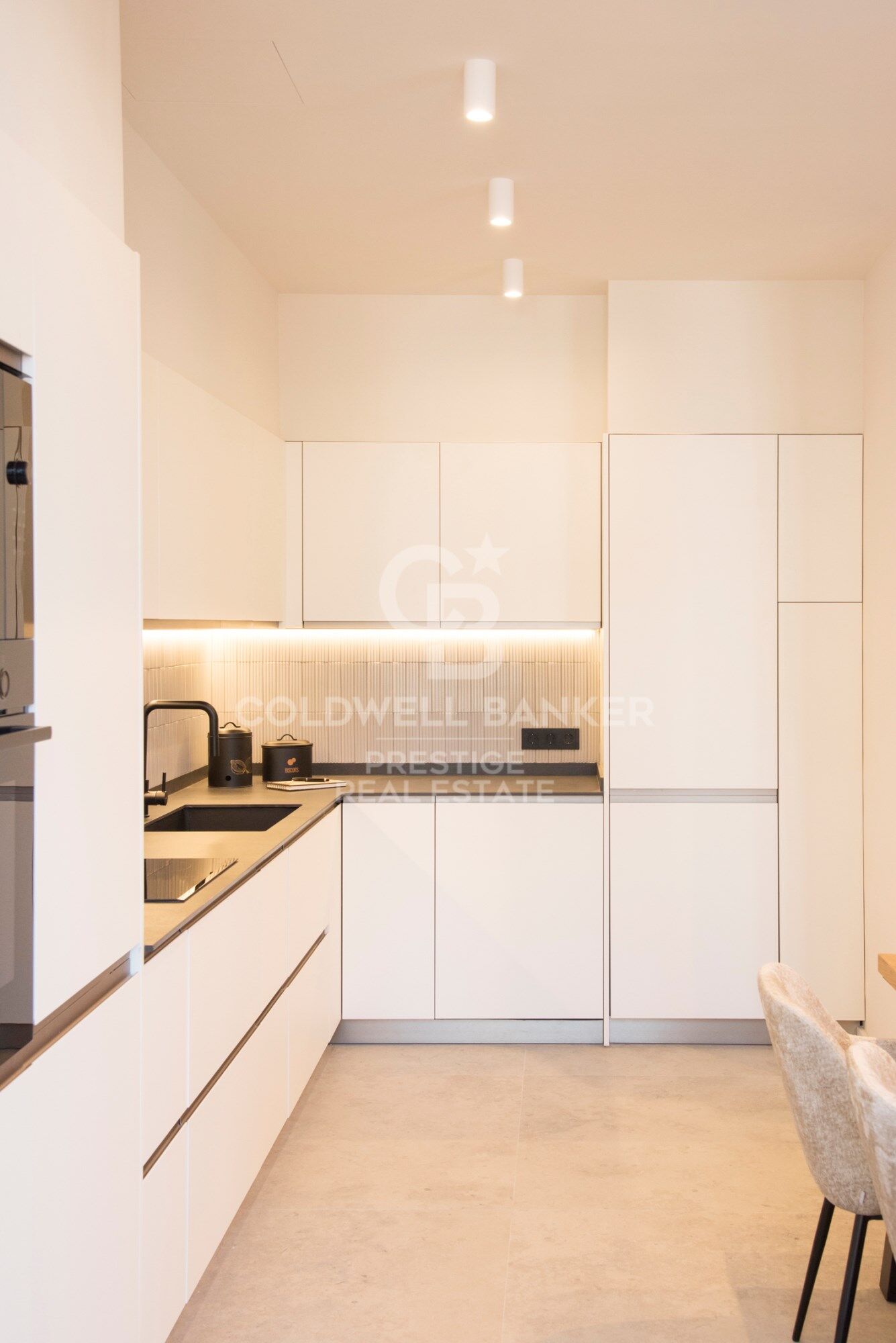 The spacious open-concept living and dining room seamlessly connects to the American-style kitchen, equipped with high-end appliances and fixtures from the prestigious brand Buades. This space opens onto a charming terrace, thoughtfully insulated from the surroundings and fitted with a glass pergola and designer furniture from Dareels and Kave Home perfect for enjoying outdoor living most of the year.