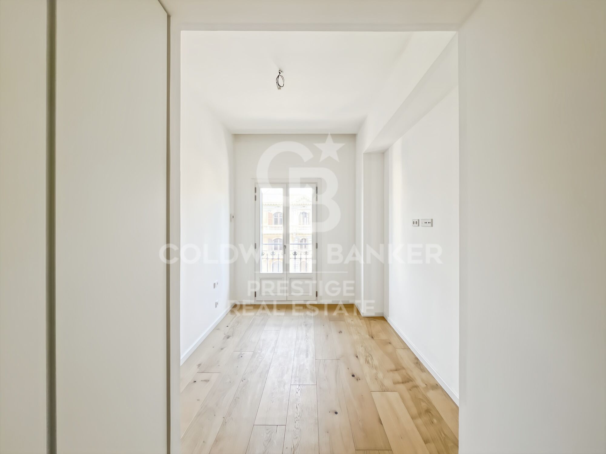 The living-dining room and kitchen flow seamlessly into an open-plan living area, featuring a balcony overlooking Rambla Cataluña. The bright double bedroom - which also has a balcony overlooking Rambla Cataluña - features a walk-in wardrobe and an en-suite bathroom.