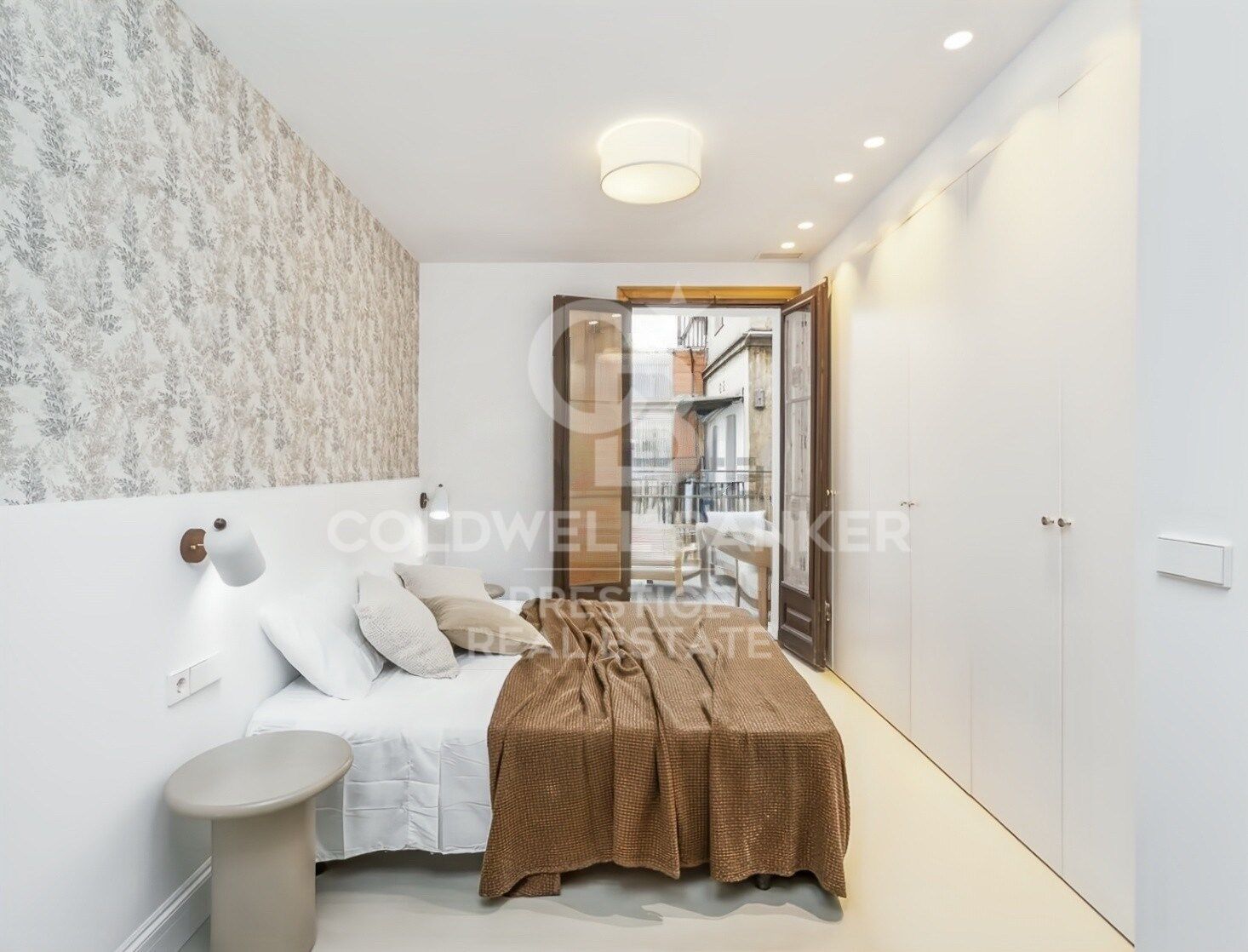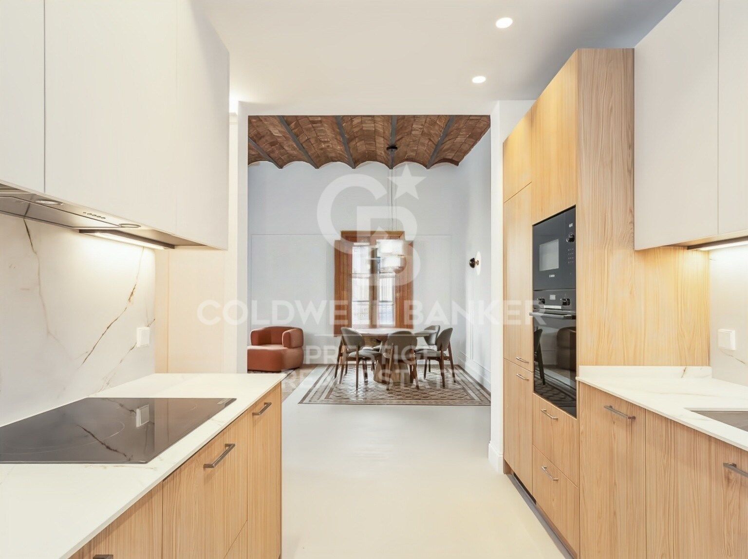 Presented by Coldwell Banker Eminent, this exclusive property, fully renovated in 2022, is located in a listed historic building in the prestigious Dreta de l'Eixample district. It preserves the elegance of early 20th-century architecture in its façade, entrance hall, and staircase, all protected as architectural heritage by the Barcelona City Council. Interior design and layout The interior has been redesigned in a contemporary style while respecting its historical essence. Spacious and bright rooms are enhanced by increased natural light, thanks to the redesigned inner courtyard and large southwest-facing windows. From the fourth floor, you can enjoy panoramic city views. The home includes: Welcoming entrance hall Day area with open-plan living room, dining area, and kitchen Exterior balconies Master bedroom with en-suite bathroom Second double bedroom Additional full bathroom Features and amenities High-end finishes: kitchen equipped with state-of-the-art appliances, Mitsubishi central air conditioning, radiator heating, and solar panels ensuring year-round comfort. Prime location Set in a peaceful and sophisticated area, surrounded by luxury boutiques, fine dining, cafés, and art galleries. Just 15 minutes' walk to Passeig de Gràcia and 35 minutes by car to Barcelona-El Prat Airport. Excellent public transport connections. Ideal for those seeking history, design, and quality living in the heart of Barcelona. Highlights: Early 20th-century building, fully restored in 2022 Original features preserved: façade, staircase, entrance hall Listed as architectural heritage by the City Council Apartment features: Very bright: three southwest-facing windows, natural light all day Comfortable layout: day area separated from the sleeping area Open-plan kitchen with state-of-the-art appliances Master bedroom with en-suite bathroom and street views Second double bedroom + additional full bathroom Exterior balconies, built-in wardrobes, air conditioning and heating Français #ref:CBE01191