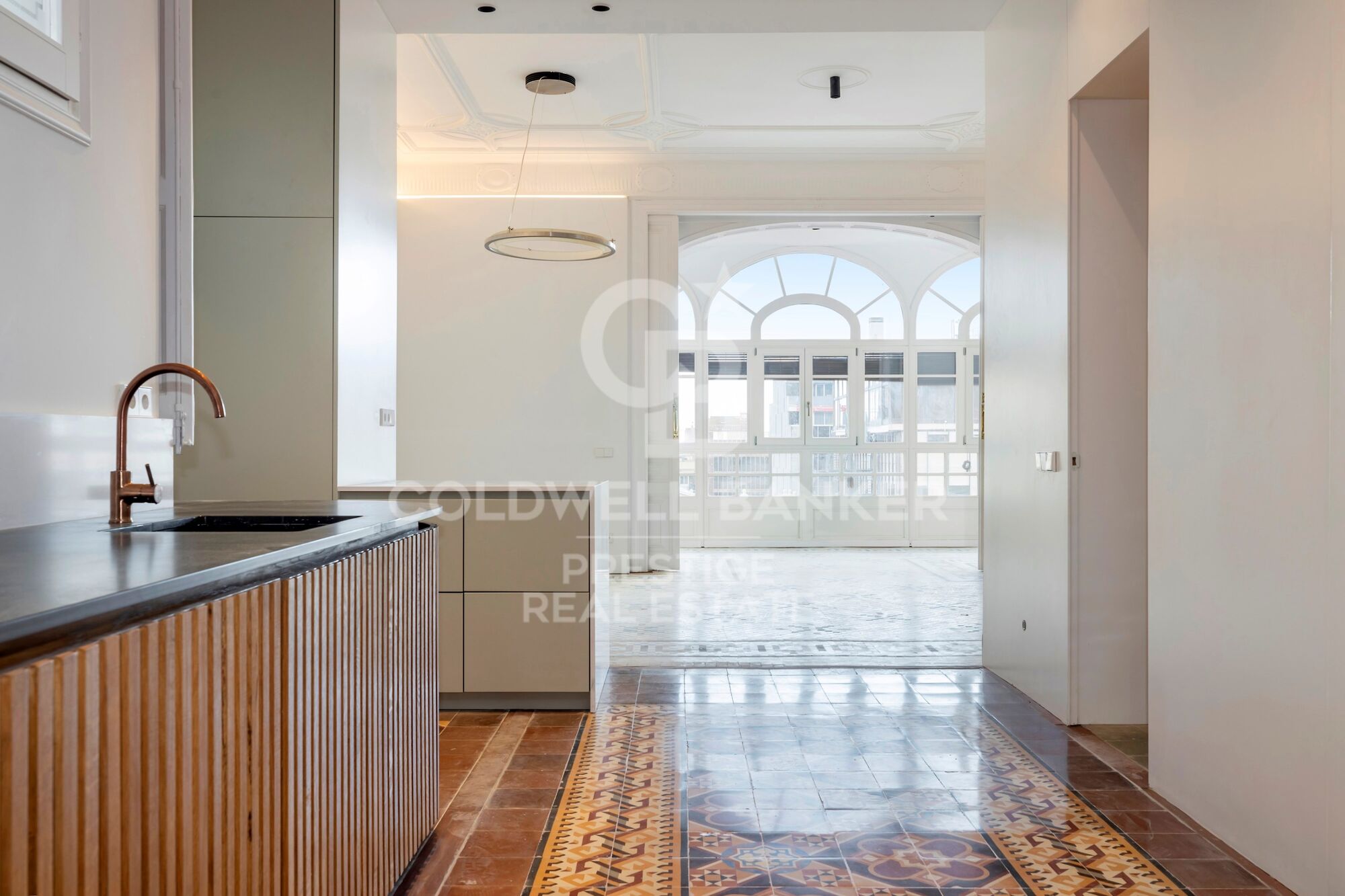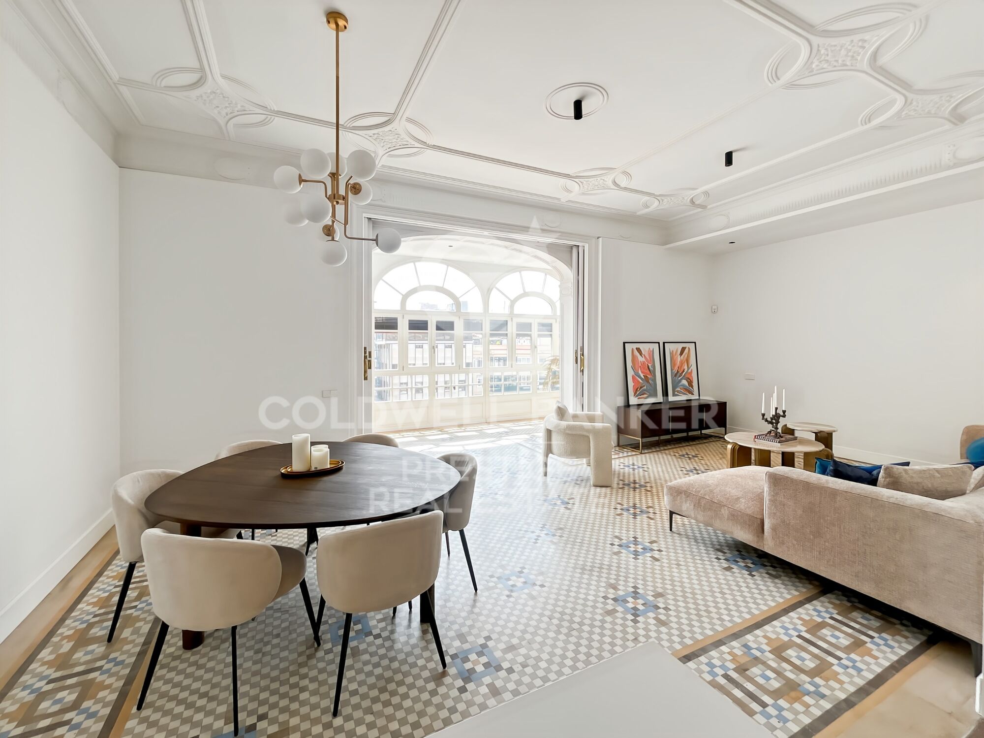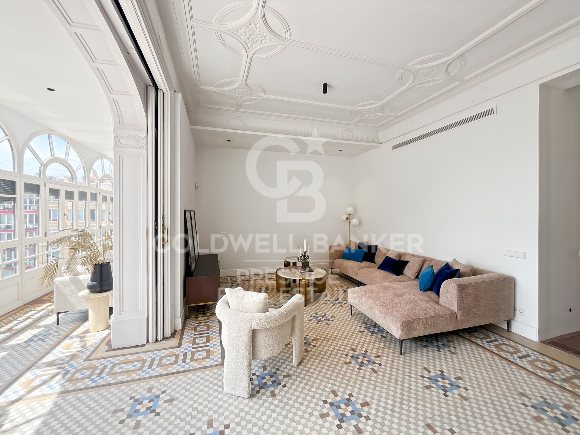 This exclusive 3-bedroom, 2-bathroom apartment offers the perfect blend of tradition, design, and modern comfort. The property has been fully renovated while preserving all the original features that make Eixample apartments so highly sought-after: 3.5-meter-high ceilings with handcrafted moldings, original hydraulic floors, and a lobby with decorative wall paintings, all maintaining the historic charm of the building.