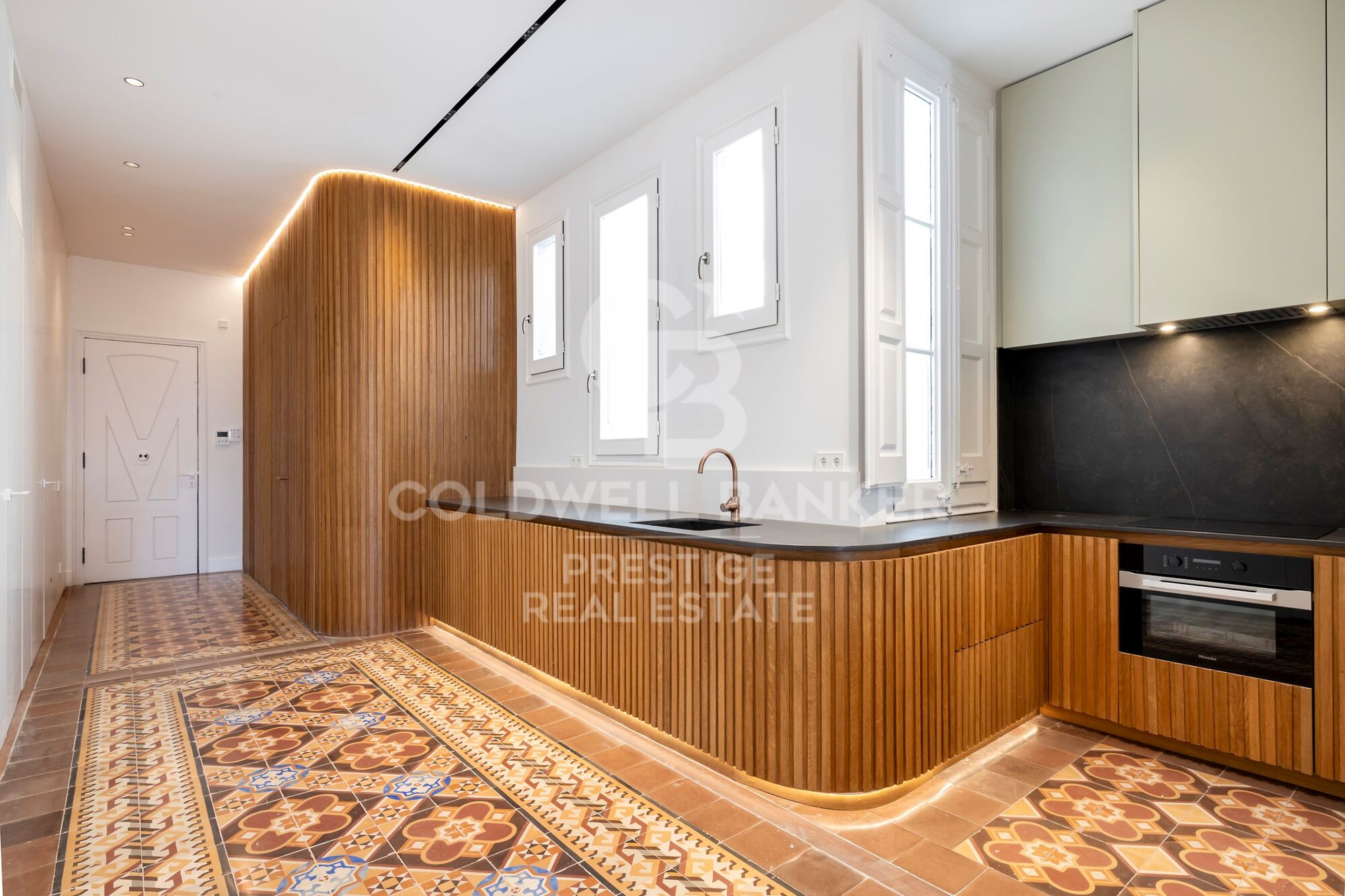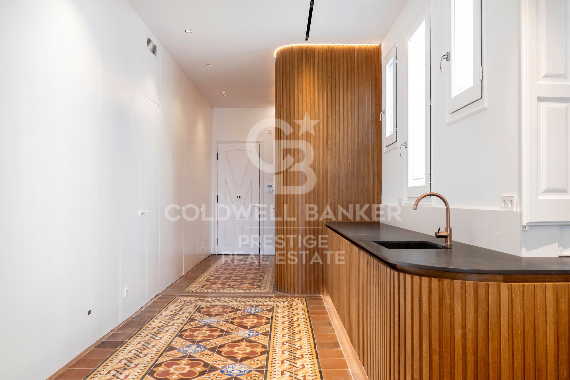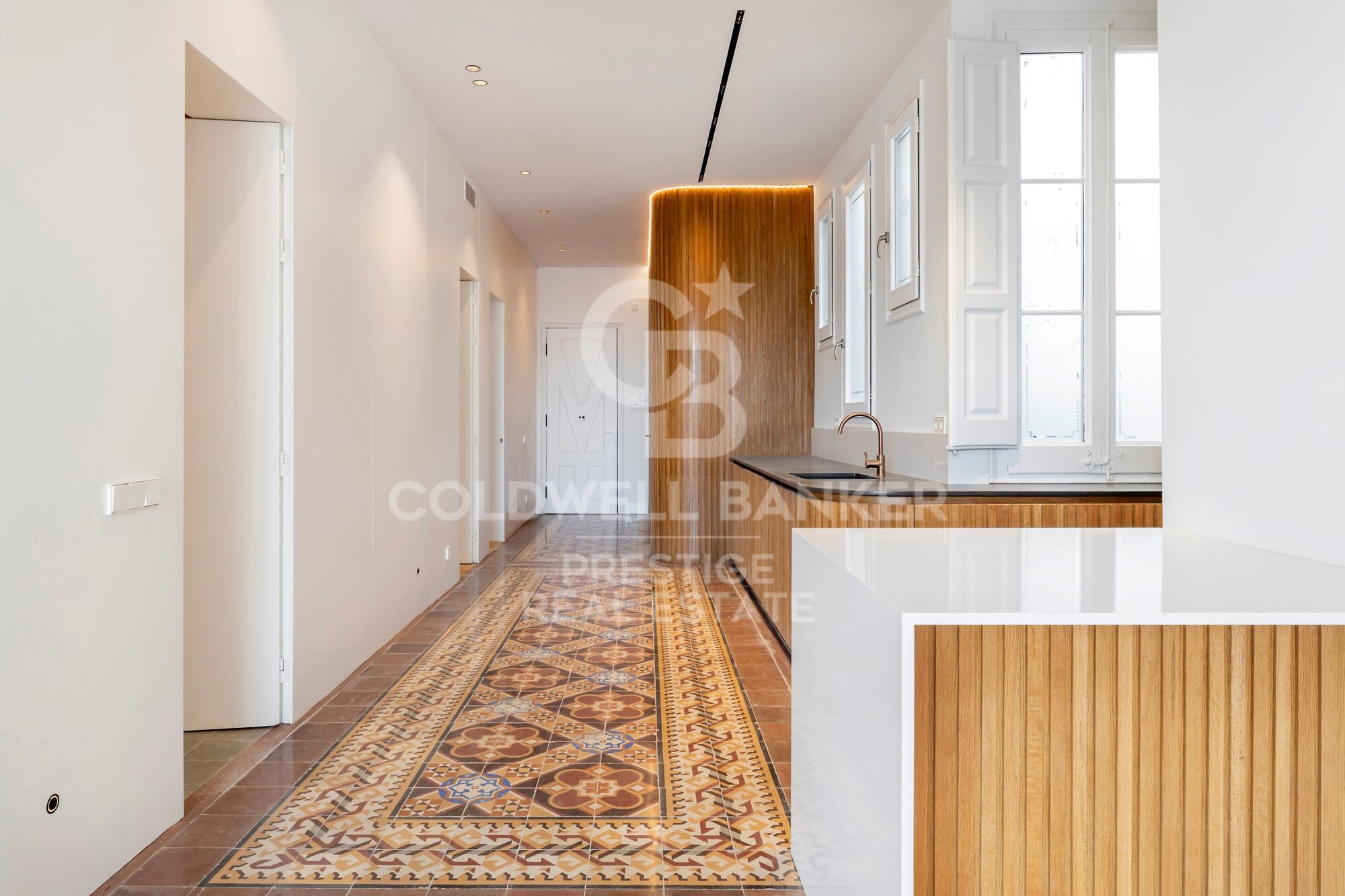 This exclusive 3-bedroom, 2-bathroom apartment offers the perfect blend of tradition, design, and modern comfort. The property has been fully renovated while preserving all the original features that make Eixample apartments so highly sought-after: 3.5-meter-high ceilings with handcrafted moldings, original hydraulic floors, and a lobby with decorative wall paintings, all maintaining the historic charm of the building.