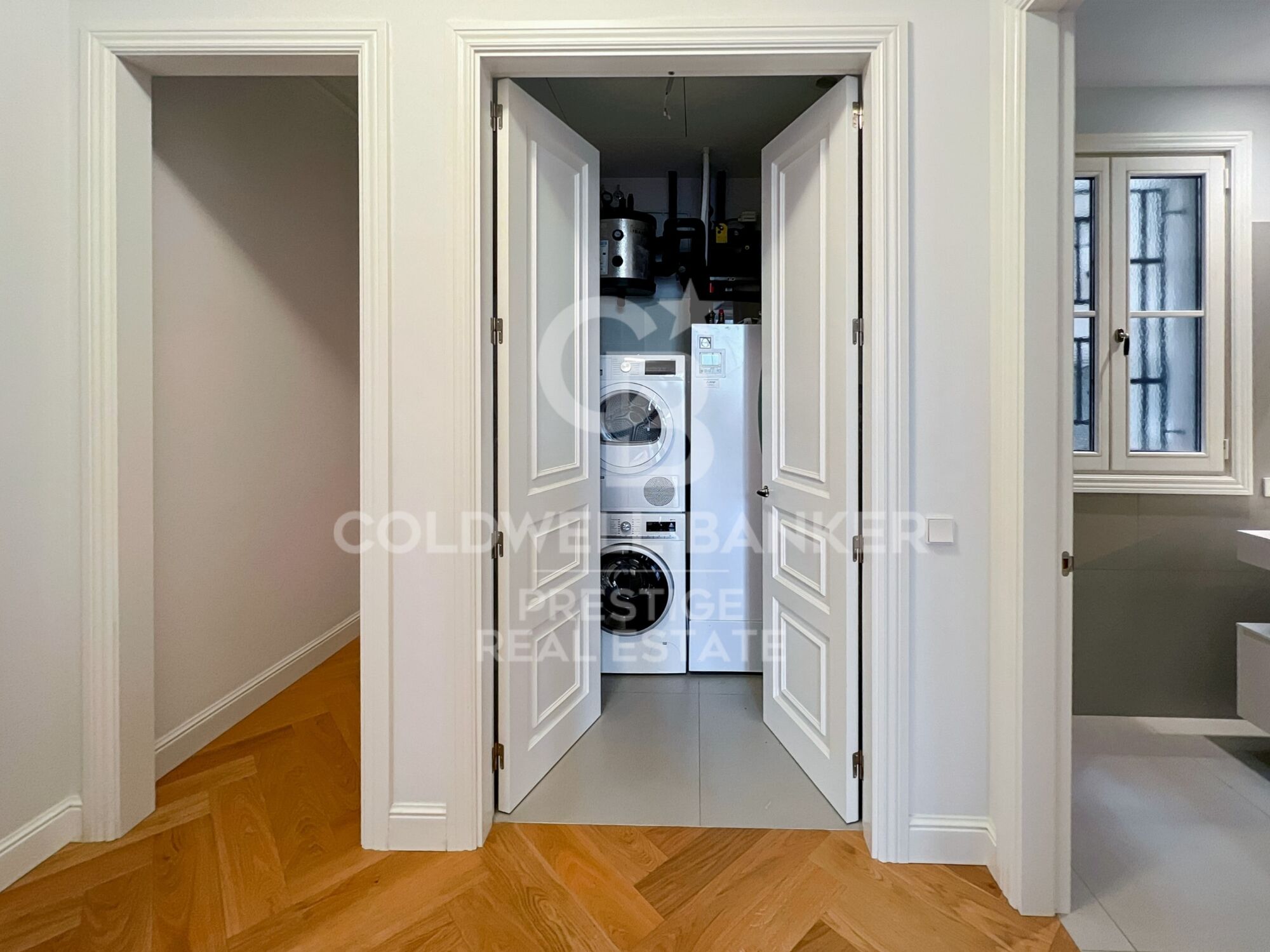 The flat consists of 3 bedrooms, all of them completely exterior, which guarantees an abundance of natural light. The master bedroom is a suite that includes a dressing room, offering an incomparable space of privacy and comfort. The two additional bedrooms are spacious and double in size, and there is access to a lovely balcony from all of them, providing you with a perfect corner to enjoy the views and fresh air of the city.