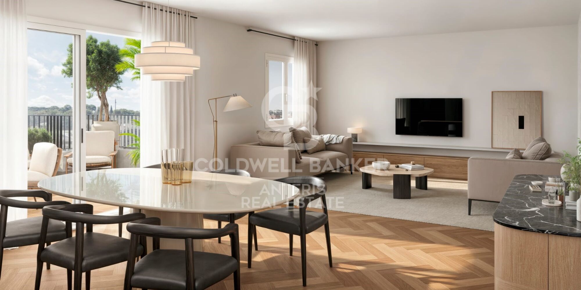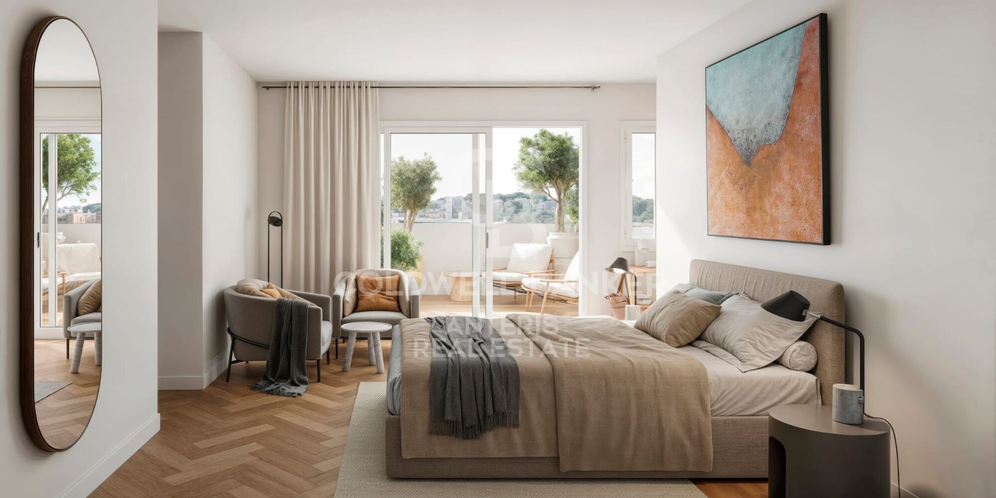The property combines comfort and design in every detail: fully equipped kitchen, ducted air conditioning with Samsung equipment, hot water production via Junkers-Bosch air thermal system, electrical installation in accordance with REBT, herringbone oak parquet flooring and delicate decorative mouldings in the living room that add warmth and sophistication.