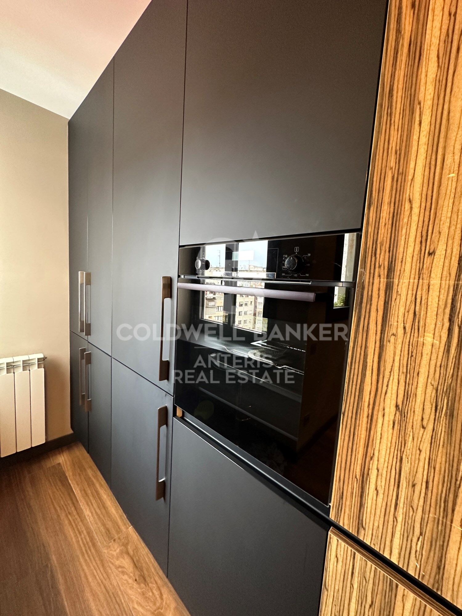 The apartment features two exterior double bedrooms with open viewsone overlooking Montjuïc and the other facing the Mercat del Ninota full bathroom with walk-in shower, and a spacious open-plan living and dining area with a modern kitchen that opens onto a charming terrace with unobstructed views. The high-quality renovation includes premium materials throughout, hot-and-cold air conditioning, natural gas heating, new carpentry, and a well-designed layout that maximizes natural light throughout the day.
