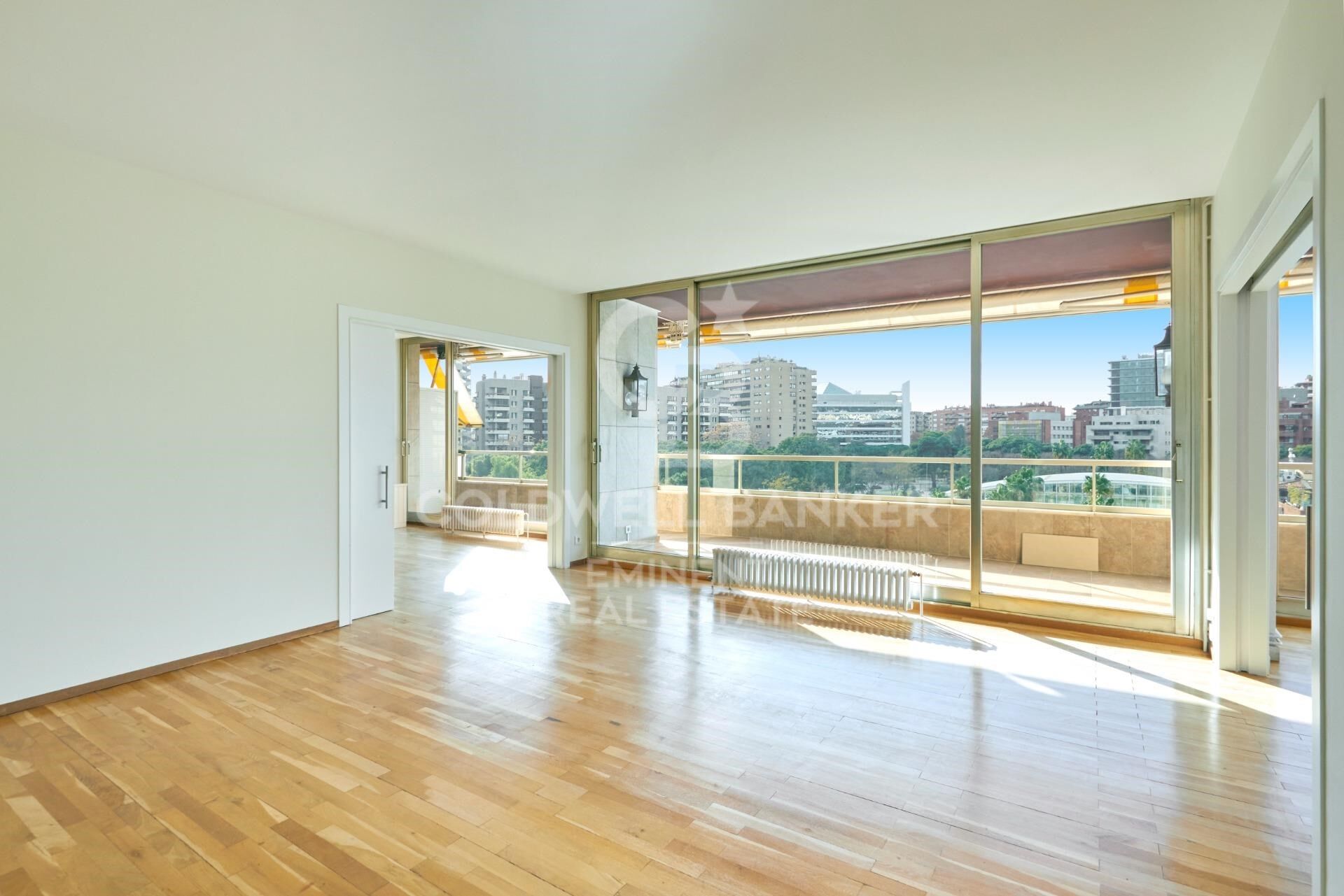 Exclusive luxury apartment for rent in the upper area of Barcelona with terrace, views, and parking.