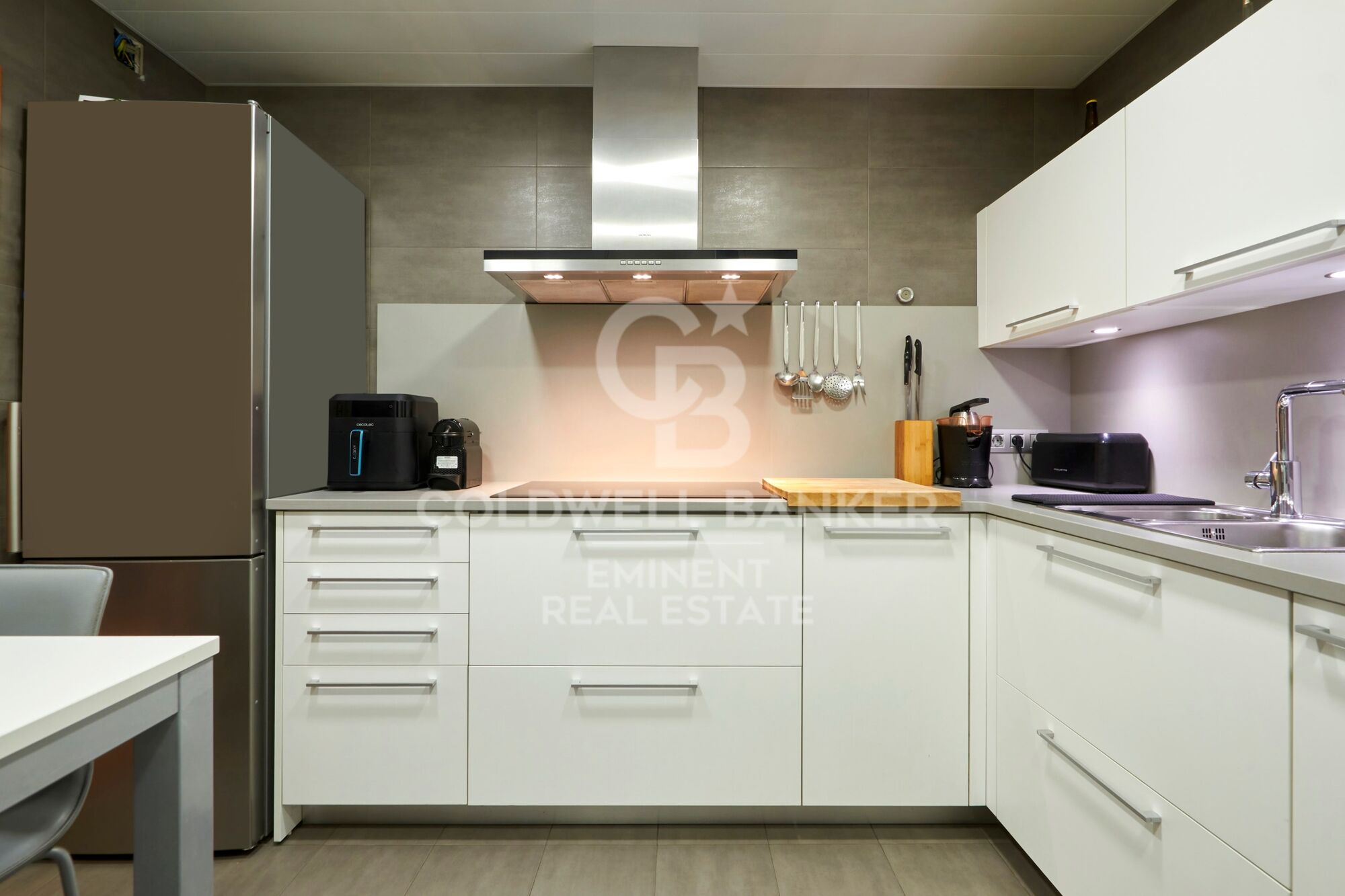 The kitchen is modern and fully equipped, perfect for lovers of comfortable spaces as it allows a place for a table and four chairs.