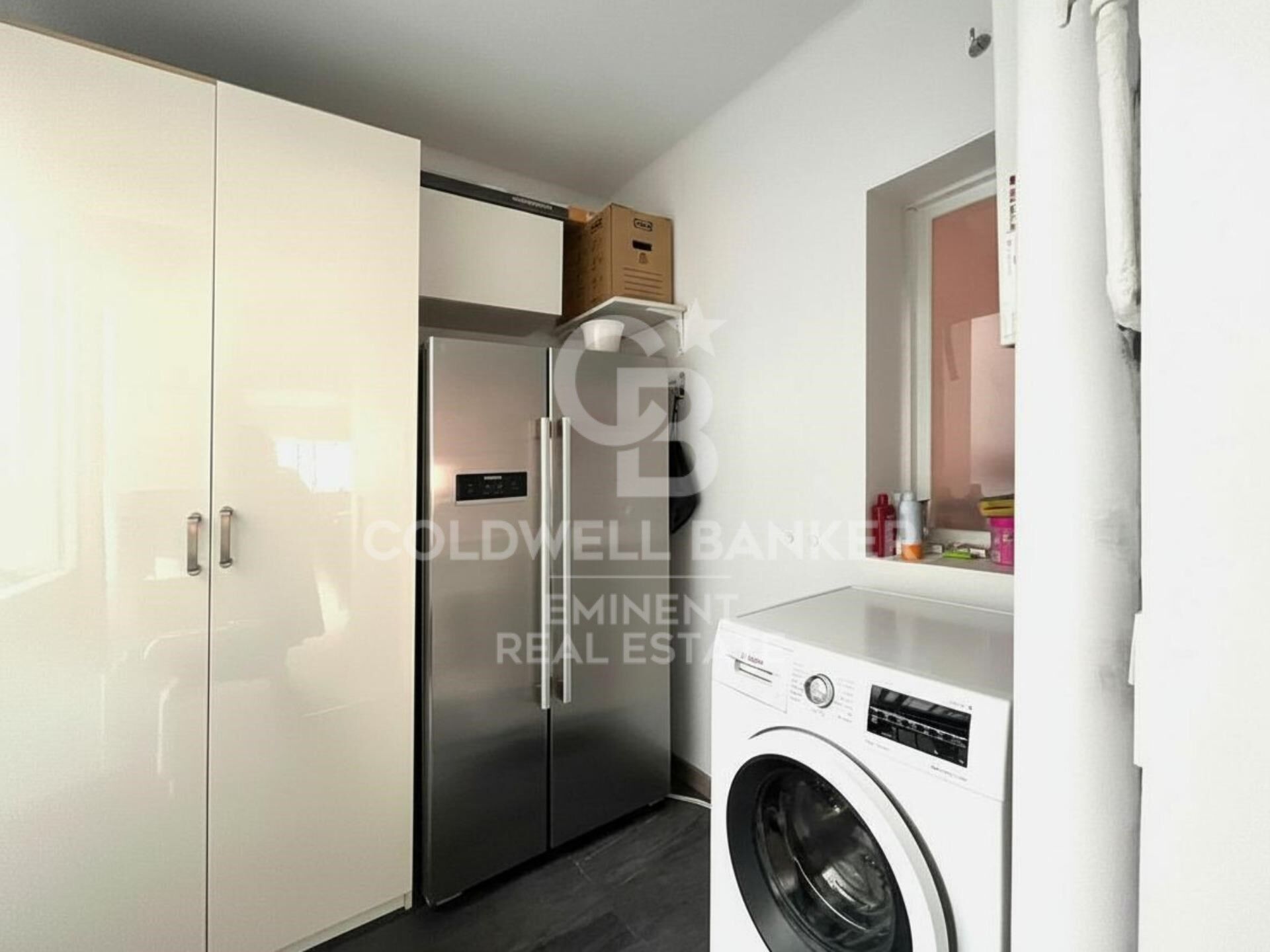 Upon entering, there is a small entrance hall with a storage closet that leads directly to the living-dining room a spacious and very bright area. The open-plan kitchen features a large central island and connects visually with the living room, creating a very spacious and welcoming daytime area. From the kitchen there is access to a large utility/laundry room, with space for a washing machine, storage and a window facing the inner courtyard for drying clothes.