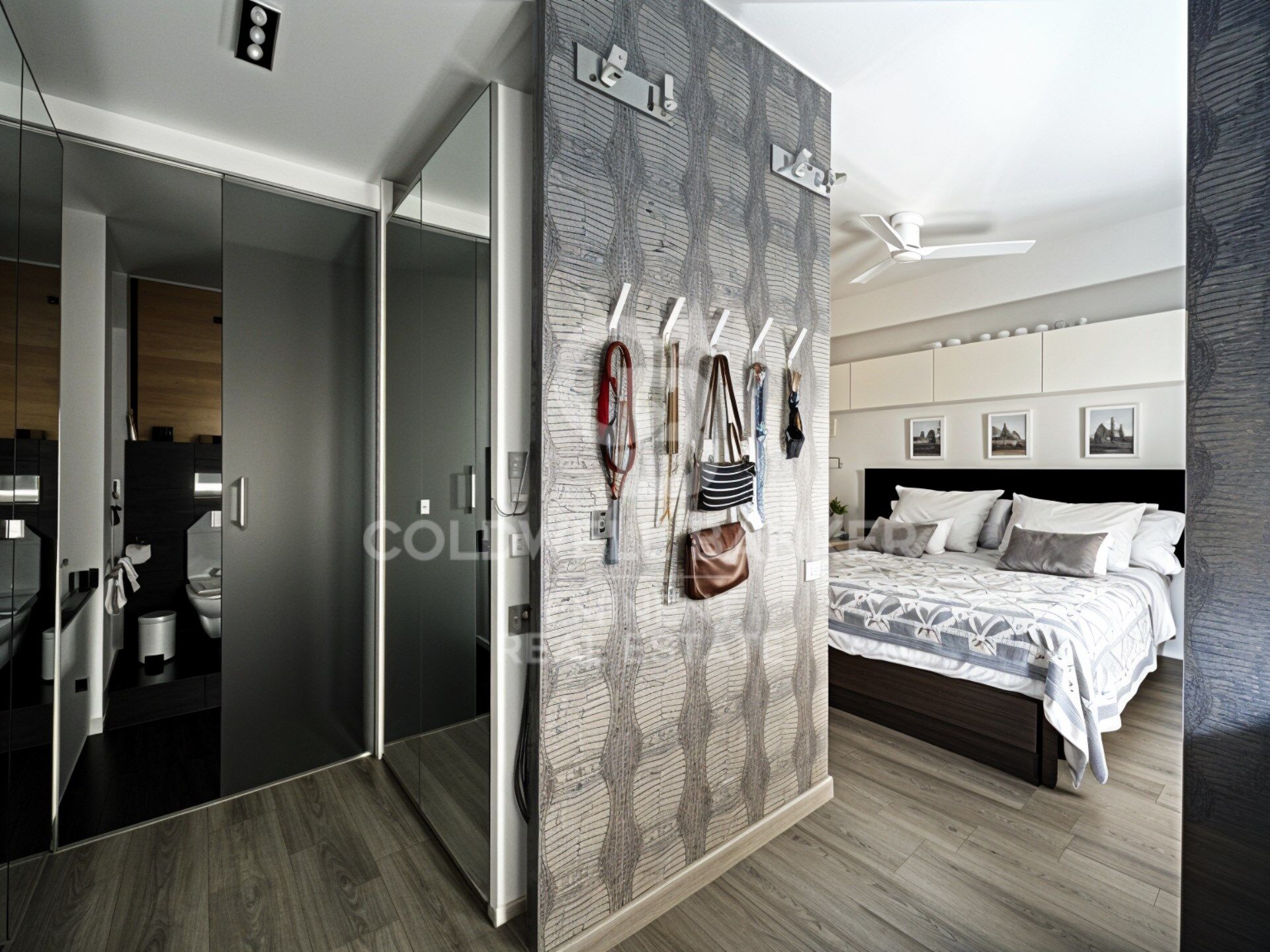 On the other side of the hallway is the master suite, consisting of a large bedroom, a spacious independent walk-in wardrobe and a full en-suite bathroom. This area was originally two bedrooms, which results in generous spaces and great comfort.