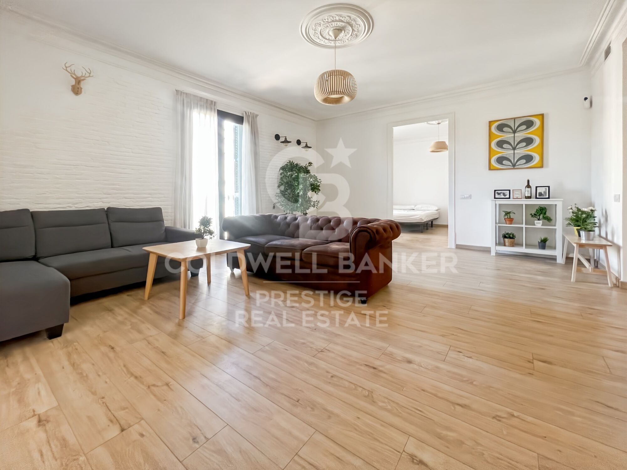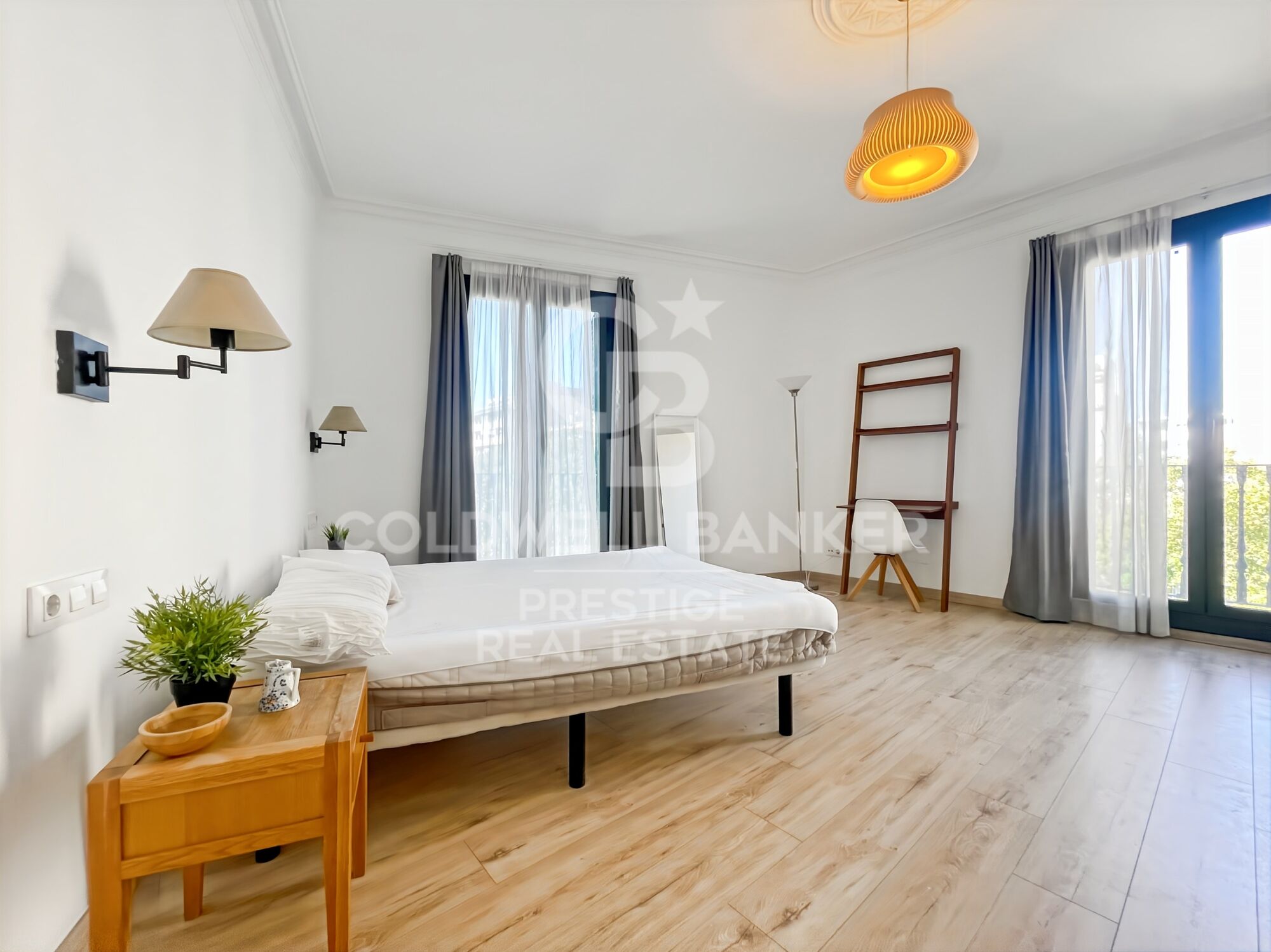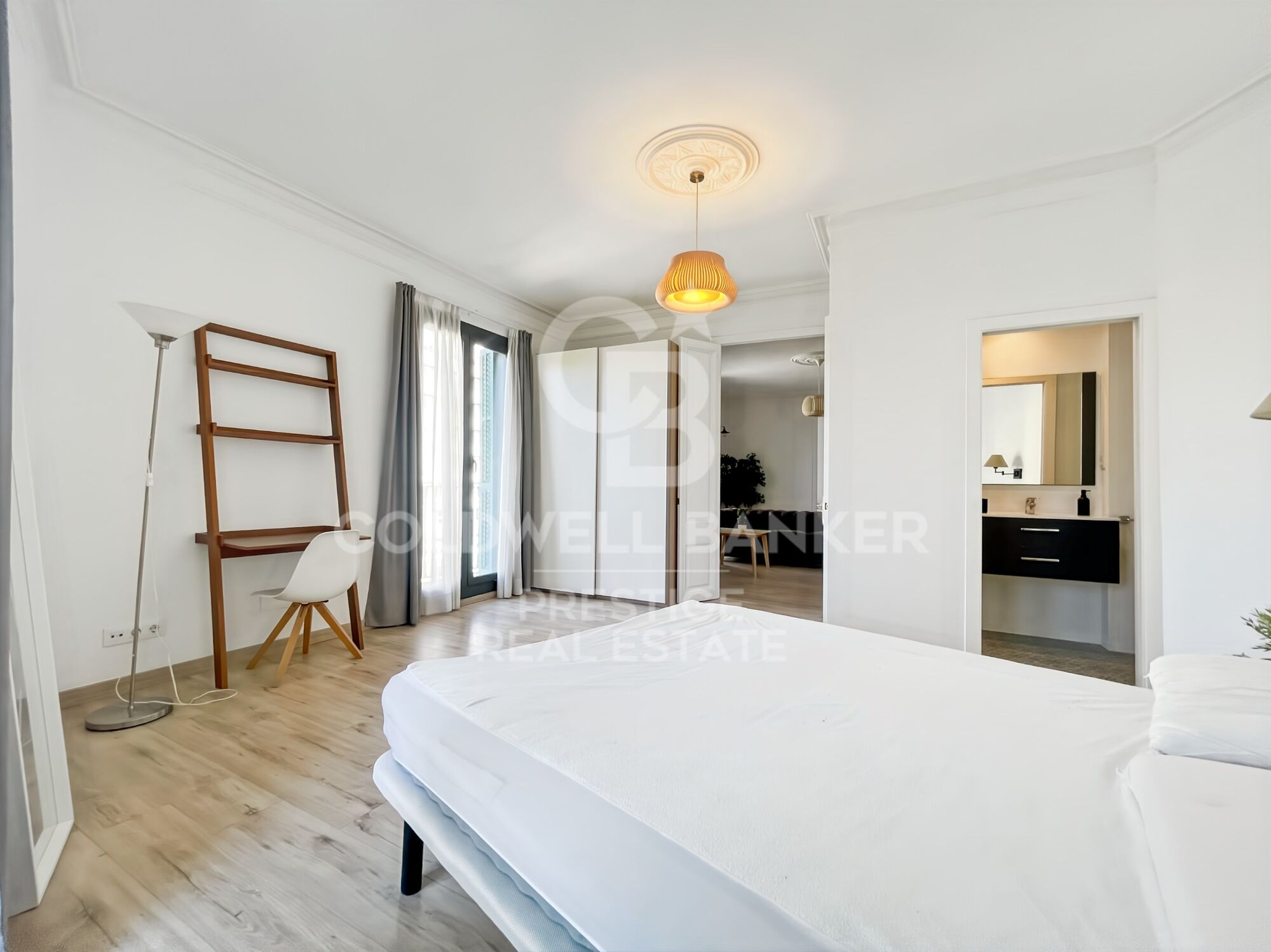The day area is arranged around a spacious open-plan living space where the living room, dining room, and fully equipped kitchen are connected. Bathed in natural light and with access to exterior balconies, this area offers pleasant views of Avinguda Paral·lel. The atmosphere is perfect for enjoying social gatherings or moments of relaxation.