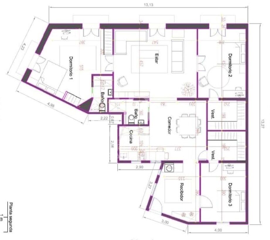 The night area includes three large and bright bedrooms. The master suite has its own private bathroom, while the other two feature walk-in wardrobes, one of them also with access to a balcony. In addition, there is a second full bathroom serving the rest of the apartment.