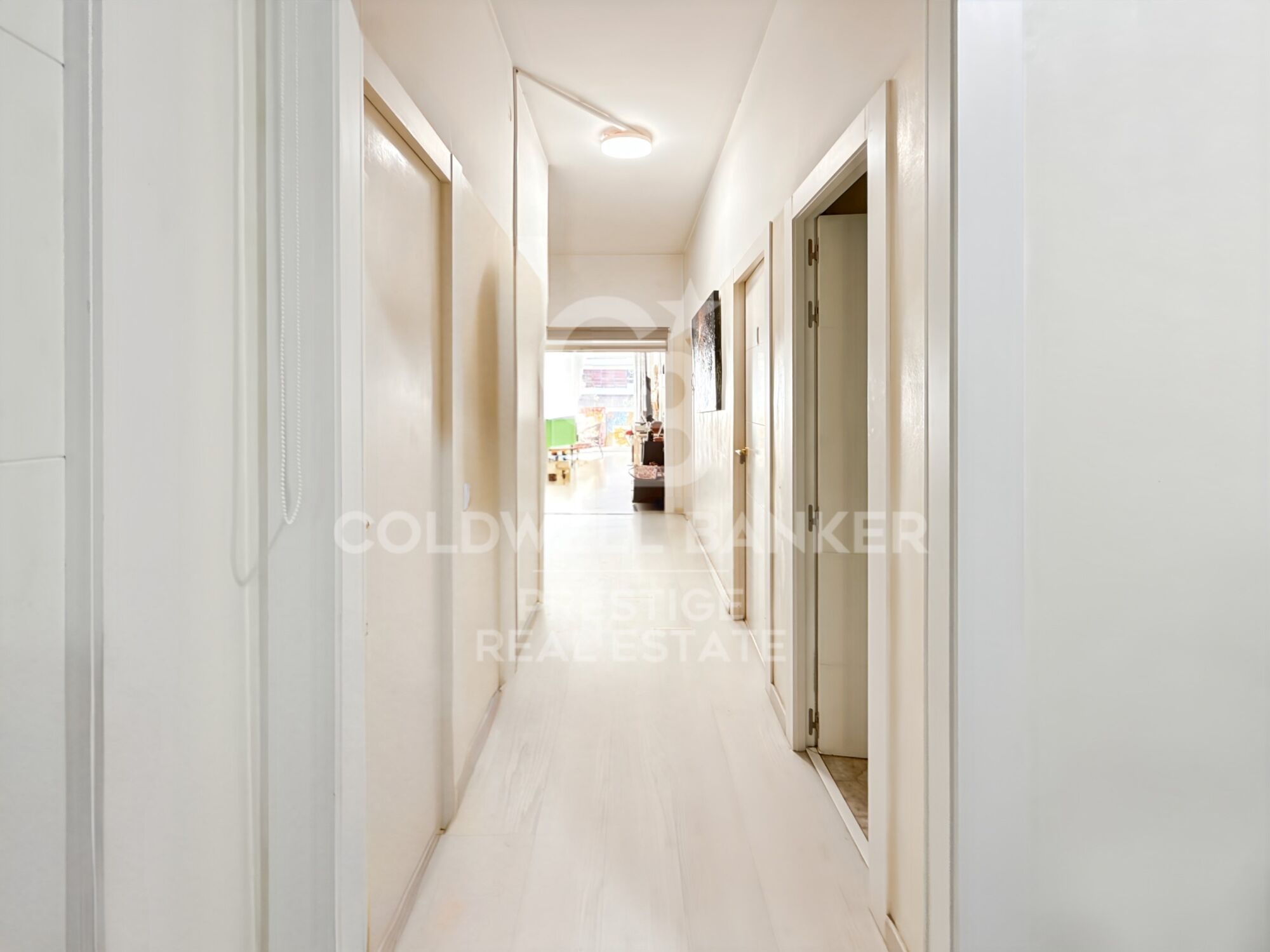 Situated on the first floor (second real), the property is distributed into five bedrooms and two bathrooms, including an exterior bedroom with an en-suite bathroom, ideal as the master suite thanks to its natural light and privacy. The apartment features high ceilings and a practical layout, offering multiple renovation possibilities to suit different lifestyles and needs.