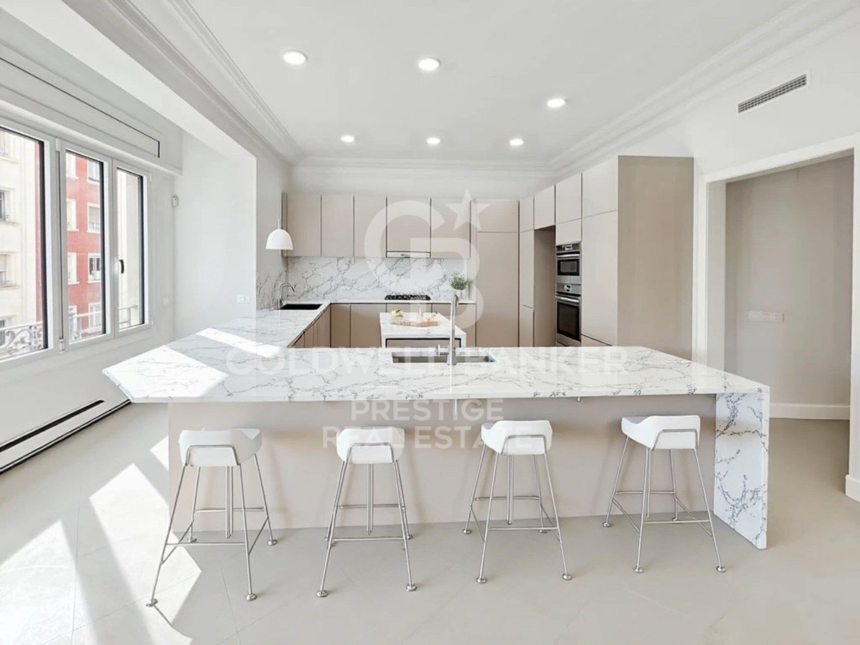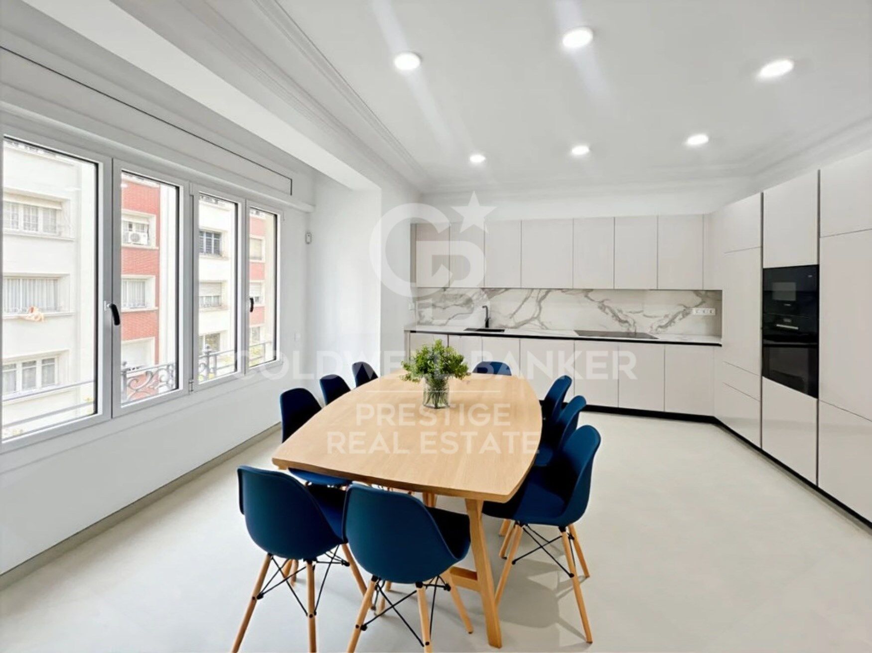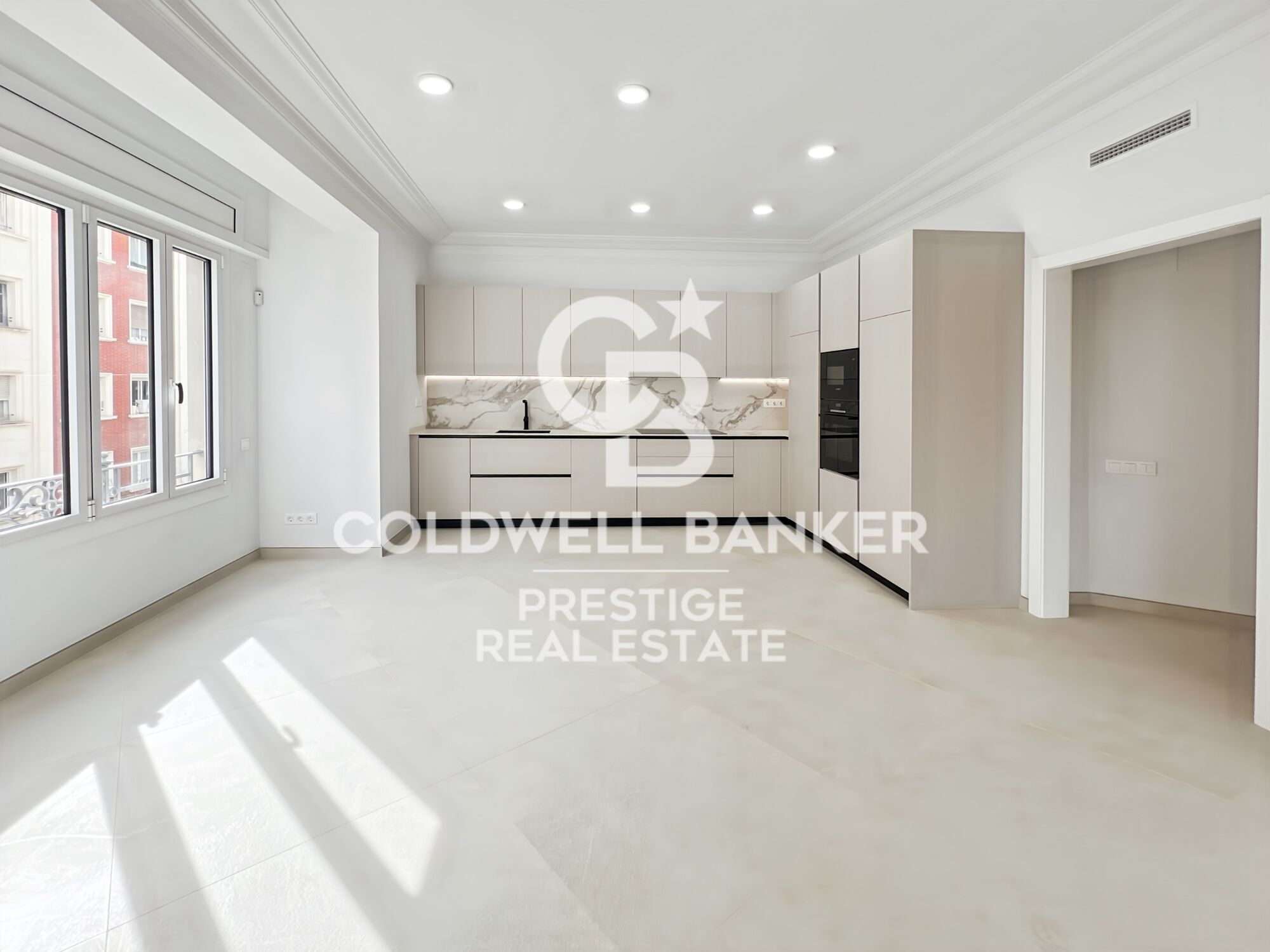 Located in one of the most privileged areas of Barcelona, near Plaza Francesc Macià, this high-end apartment offers a spacious and functional layout. The property covers 152.29 m², offering a master suite with a dressing room, two additional double bedrooms, a study, two full bathrooms, a guest toilet, a large living-dining room, and a fully equipped kitchen adjacent to the living room. In addition, it has a practical laundry area. This elegant apartment has been renovated with high-quality materials and luxurious finishes. The spaces have been carefully designed with a practical and intelligent layout that separates the rest areas from the kitchen and dining areas, providing unparalleled privacy. The large spaces, all with large windows, allow natural light to flood every corner, creating a bright and welcoming atmosphere. The living-dining room, with an area of 31.72 m², is one of the most pleasant spaces, with two large windows that flood the space with natural light, and the ceilings adorned with a plastered Catalan vault that adds a touch of classic elegance. The kitchen is equipped with the latest appliances, while the natural oak laminate parquet floors and the beige and natural wood tones bring warmth and comfort to every space. The bedrooms, away from the common areas, ensure a peaceful retreat. The master bedroom, with an area of 15.52 m², is a suite that includes a dressing room and a private bathroom. The high-quality finishes, such as the natural oak laminate parquet, provide warmth and elegance. The suite has custom wardrobes, lacquered doors, and minimalist-style windows with thermal break technology, ensuring comfort and energy efficiency. The two double bedrooms are spacious and bright, thanks to the large windows that allow natural light to enter. These bedrooms share a full bathroom equipped with matte black built-in taps, resin shower trays, and micro cement-effect porcelain floors, combining functionality with a modern and elegant design. With an individual heating system using aluminum radiators, the home offers a warm and cozy atmosphere in winter. In summer, the ducted air conditioning system, with a high-efficiency heat pump, keeps the space cool and comfortable. This versatile system allows the temperature of each room to be regulated independently, ensuring comfort year-round and reducing CO2 emissions. #ref:CBES2365