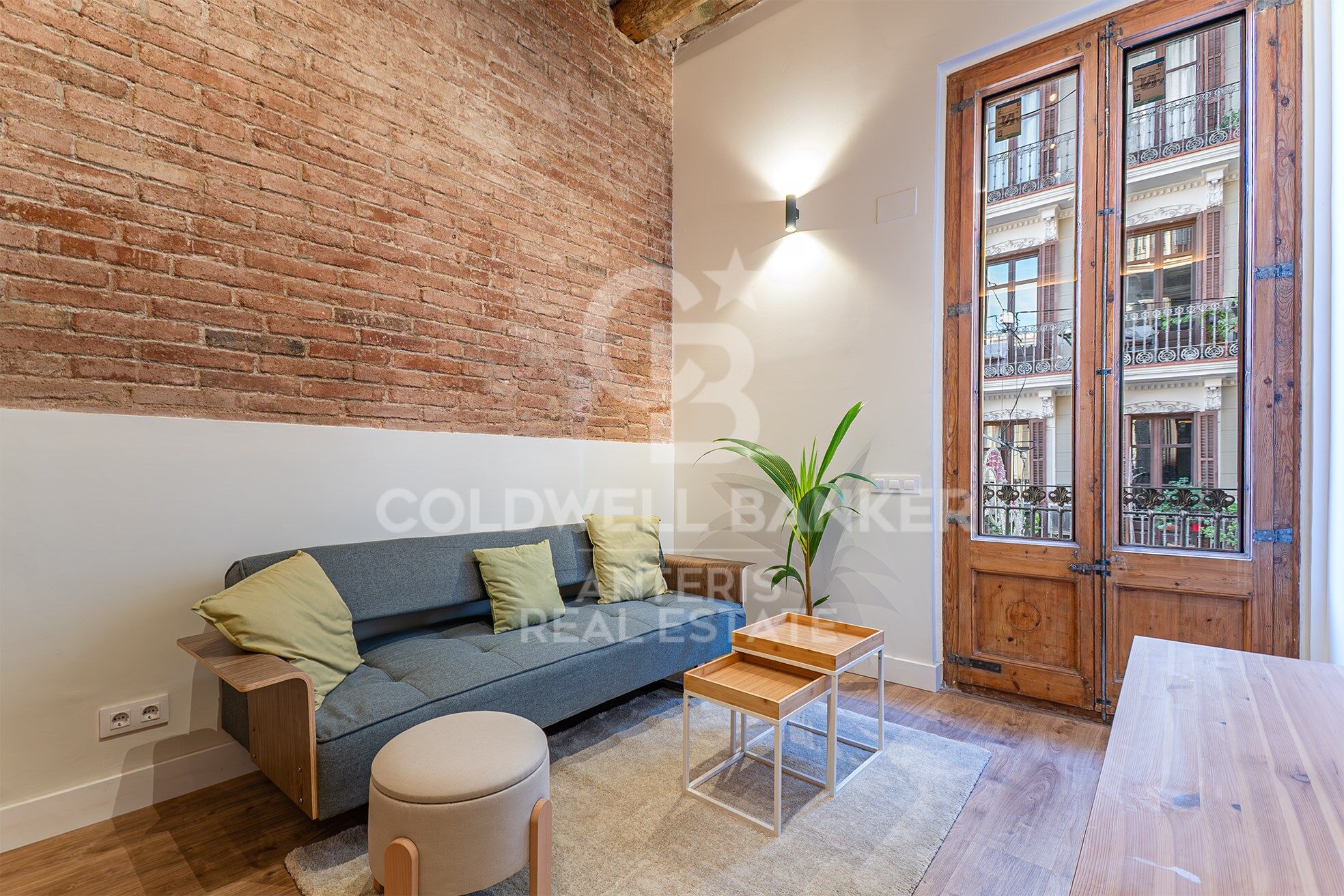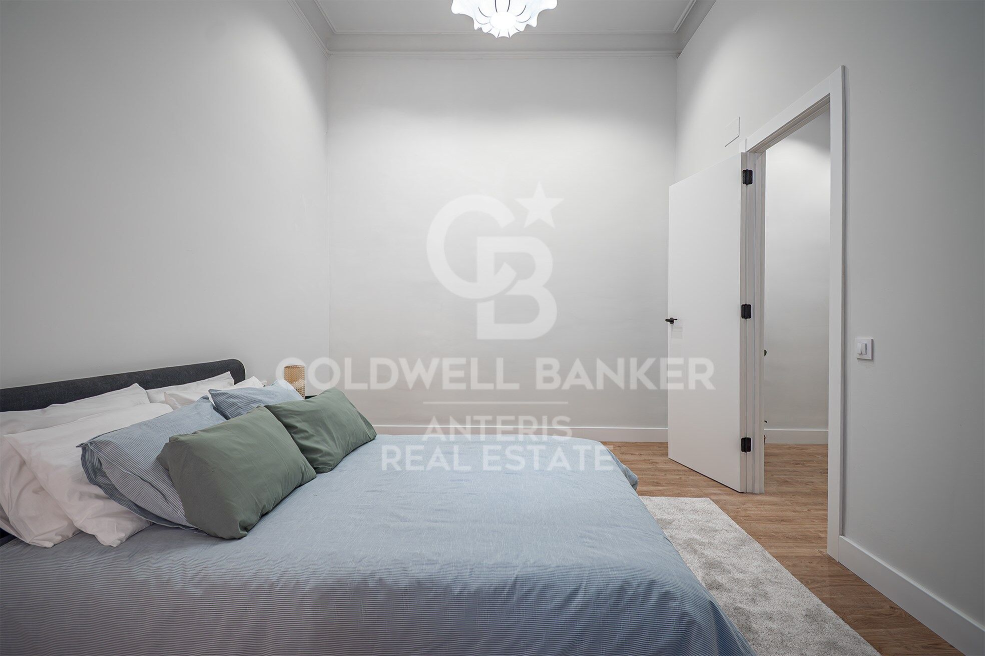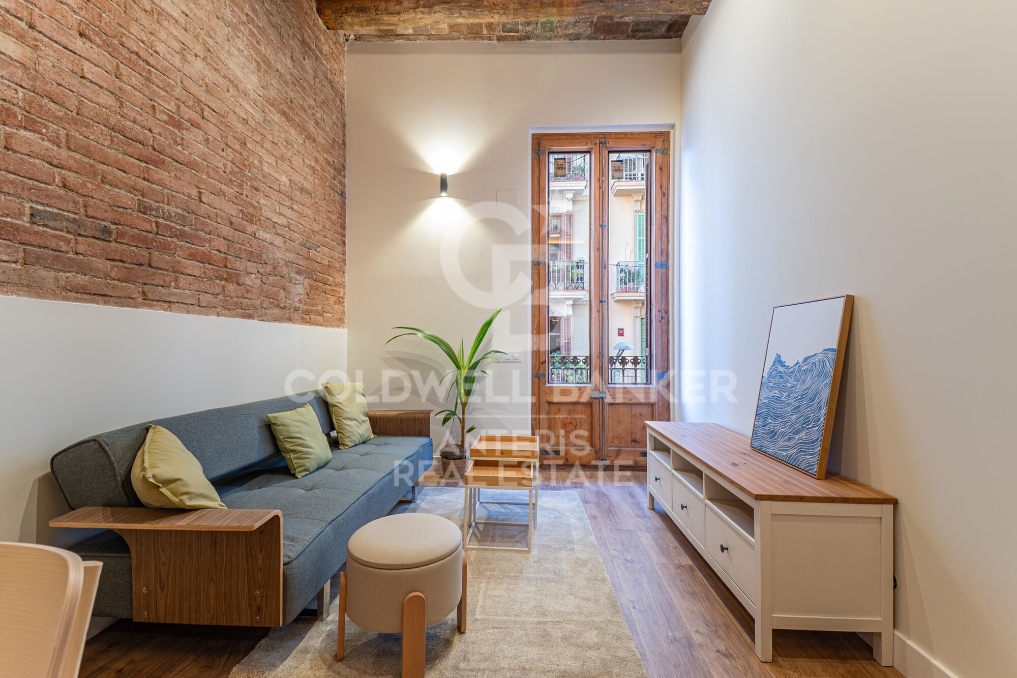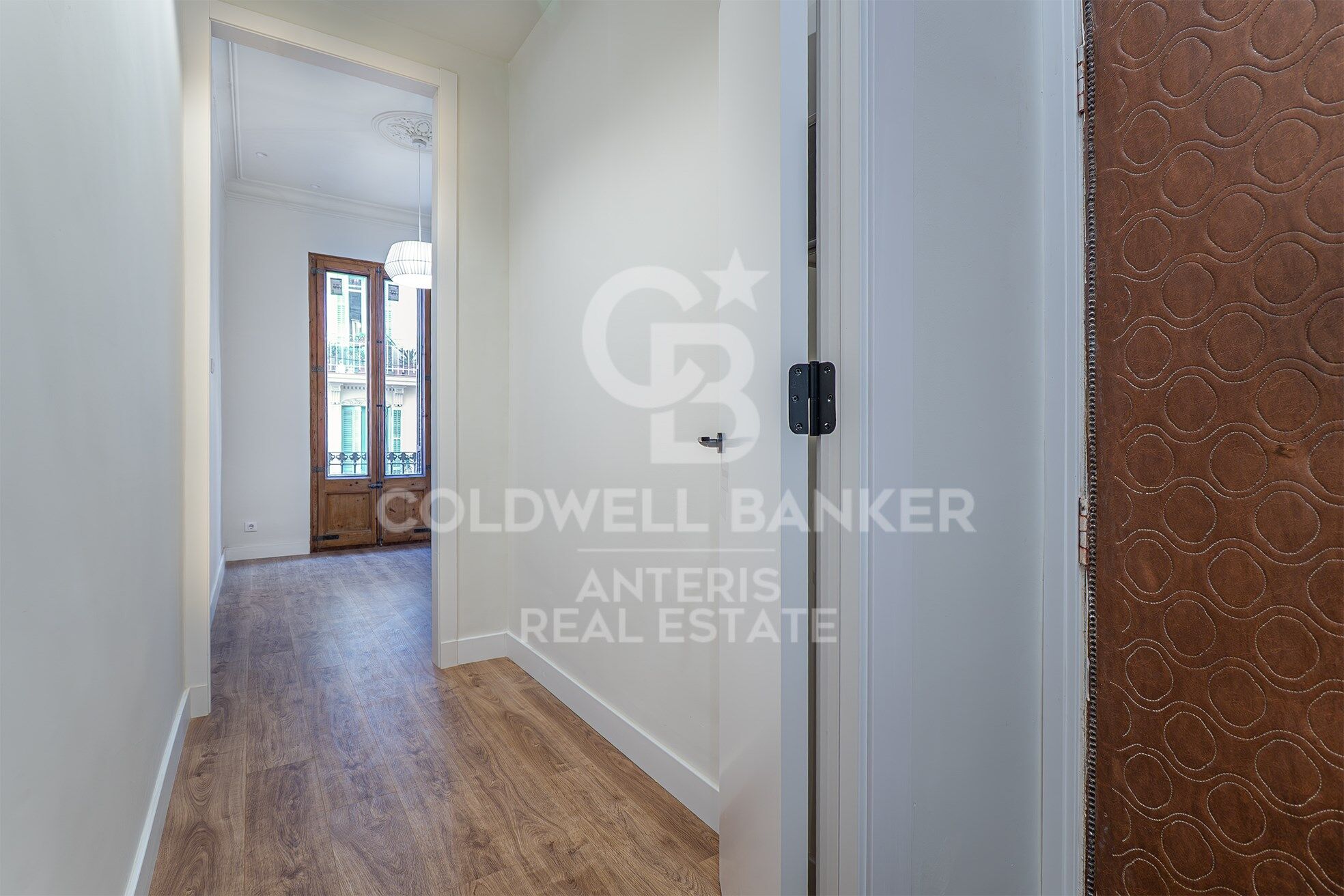 This apartment has been completely renovated and is brand new. It stands out for its excellent layout and for preserving the characteristic features of classic properties, such as high ceilings with moldings, exposed walls, Catalan vaulted ceilings, wooden beams, and a beautiful balcony overlooking the main street.