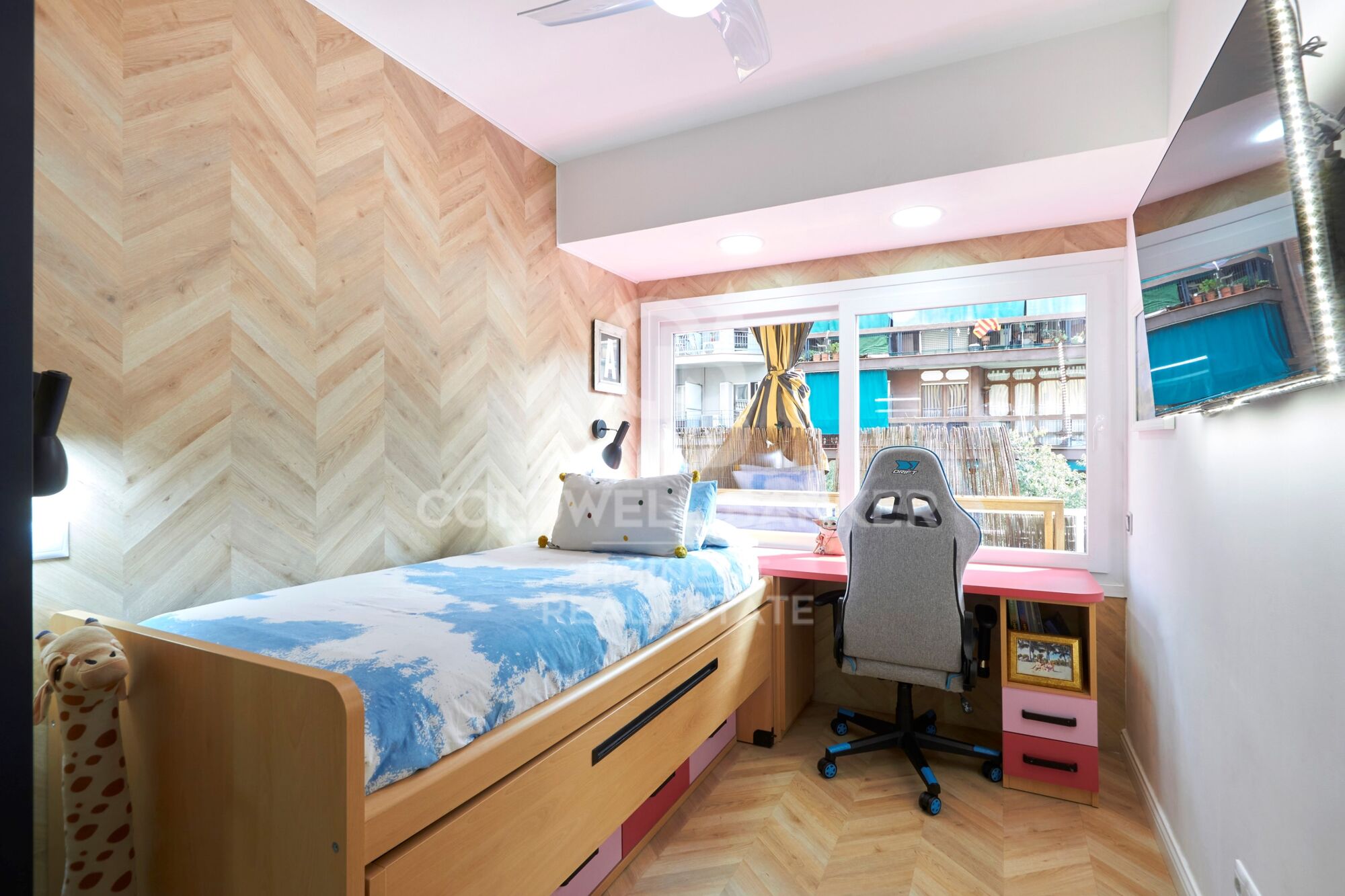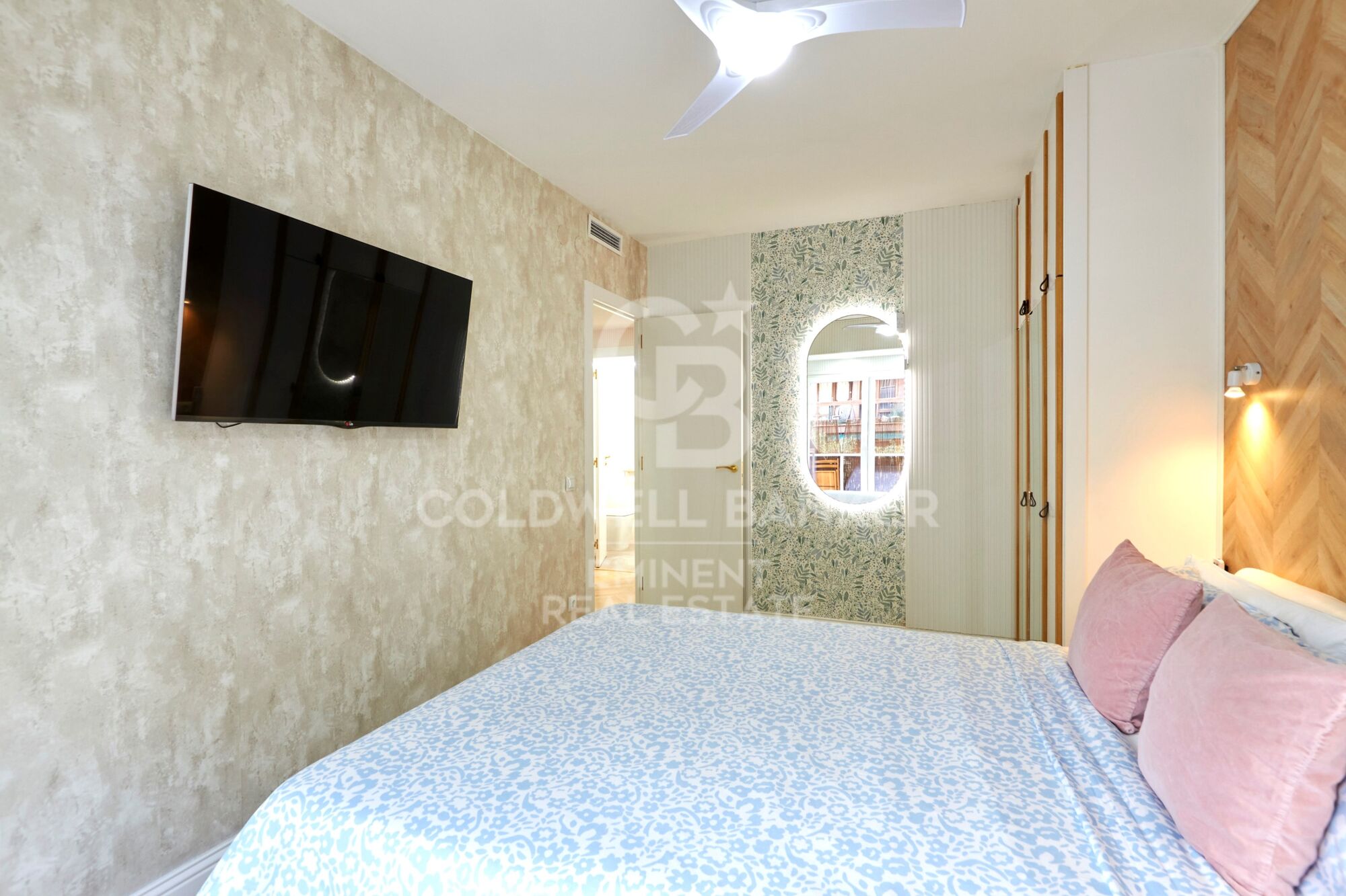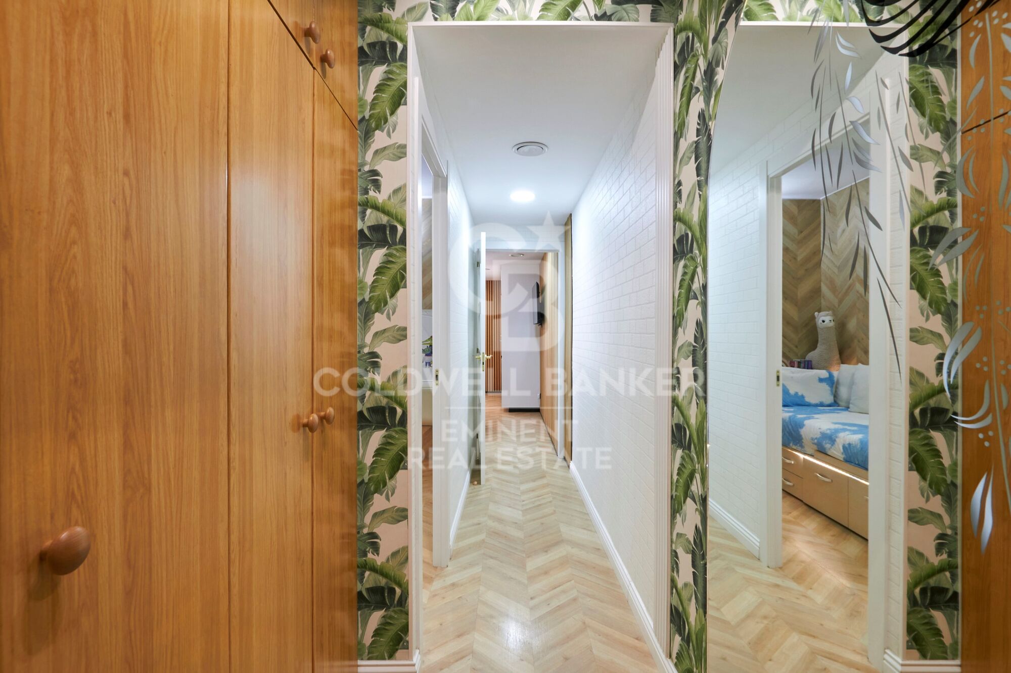 The hallway includes an additional built-in wardrobe, and every space has been thoughtfully designed with wallpaper accents, LED lighting, and ducted climate control.