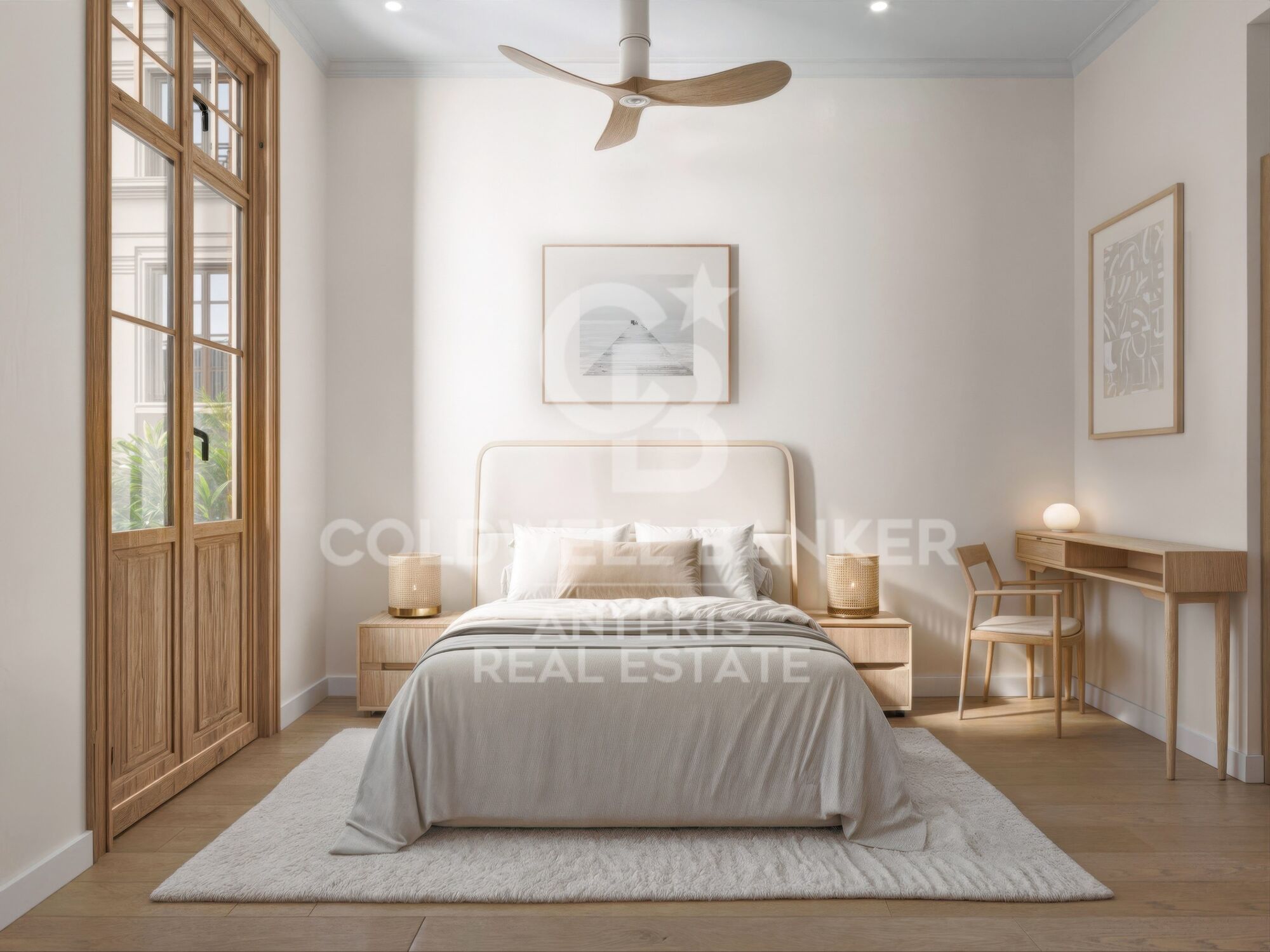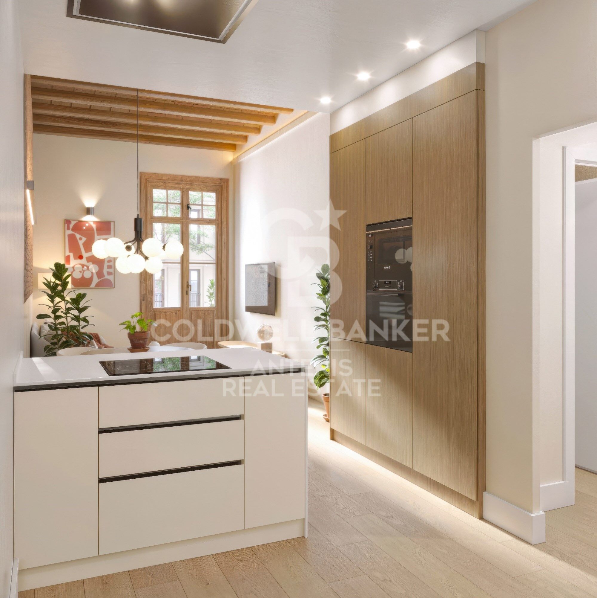 This cosy home is located on the second royal floor of a magnificent royal estate dating back to 1900, which has been carefully maintained. The property will retain distinctive architectural elements, such as high ceilings, the emblematic volta catalana and exposed brickwork, which give it a unique and welcoming character. The refurbishment is scheduled for completion in July 2025.