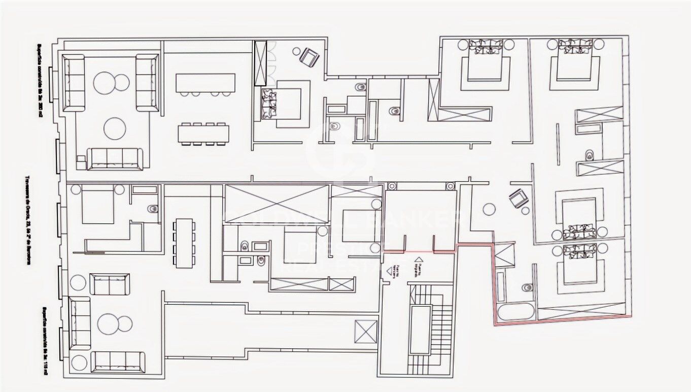 This property can be purchased as a single large apartment or is already divided into two independent units, making it ideal for large families, professionals, or investors. Entire floors range from 341 m² to 352 m², while the individual units range from 106 m² to 247 m².