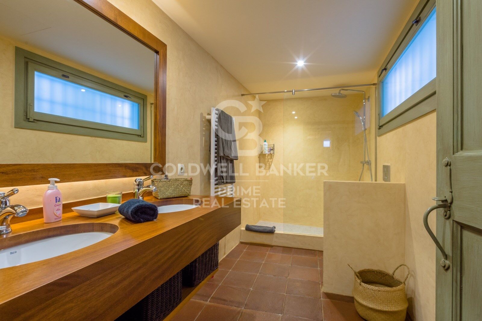 Coldwell Banker Prestige presents this stunning villa located in one of the most privileged areas of the Costa Brava, just a 15-minute walk from the center of Begur. Fully renovated with top-quality finishes, this property blends contemporary design, energy efficiency, and breathtaking panoramic views of the idyllic Aiguablava bay. Distributed over two levels, the house has been designed to maximize natural light and sea views from all main living areas. On the main floor, a spacious open-concept living and dining room connects seamlessly with a modern, fully equipped kitchen. Large windows open onto a south-facing terrace with spectacular views. This level also features two bedrooms (one en suite), a guest toilet, and a storage area. The lower floor houses the master suite, a true retreat with its own en suite bathroom, walk-in closet, and direct access to the outdoors. Two additional bedrooms are also located on this level, one of them with a private bathroom, plus another full bathroom and a storage room. From here, you have direct access to the pool and garden areas. An independent guest apartment is also included, perfect for visitors or staff. It features a living-dining area with open kitchen, a double bedroom, a full bathroom, and has direct access to the pool and garden. The outdoor spaces are designed for year-round enjoyment: an overflowing saltwater pool, low-maintenance Mediterranean garden, sun-drenched terraces, and a parking area for multiple vehicles. Beneath the pool area, a multipurpose room offers potential for a gym, office, cinema room, or playroom. Highlights include: underfloor heating, air conditioning, heat pump heating, and solar panelsensuring both comfort and energy efficiency. With its exceptional location, orientation, panoramic views, and elegant design, this villa is an ideal option as a primary residence, holiday home, or high-return investment in one of the most sought-after areas of the Catalan coastline. Built area: 499 m² Plot size: 2,232 m² Year built: 1974 (renovated in 2023) Orientation: South #ref:CBES2689