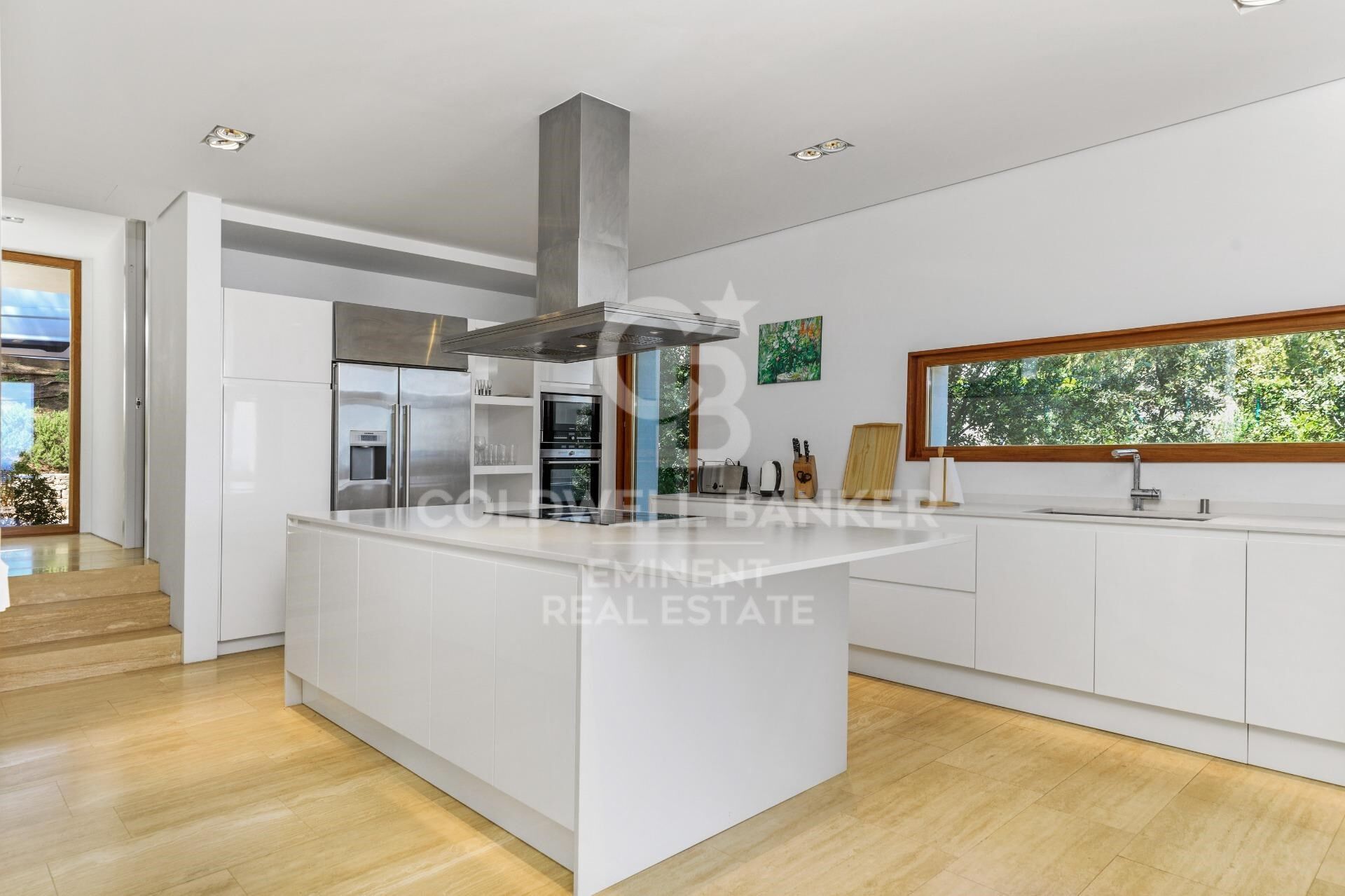 From its impressive main entrance, the property surprises with a direct view of the sea and a lush pine forest, creating an unparalleled first impression. The ground floor is organized around a sophisticated glazed interior patio which, in addition to being an aesthetic element of great value, bathes the house with abundant natural light and reinforces the connection with the exterior landscape.