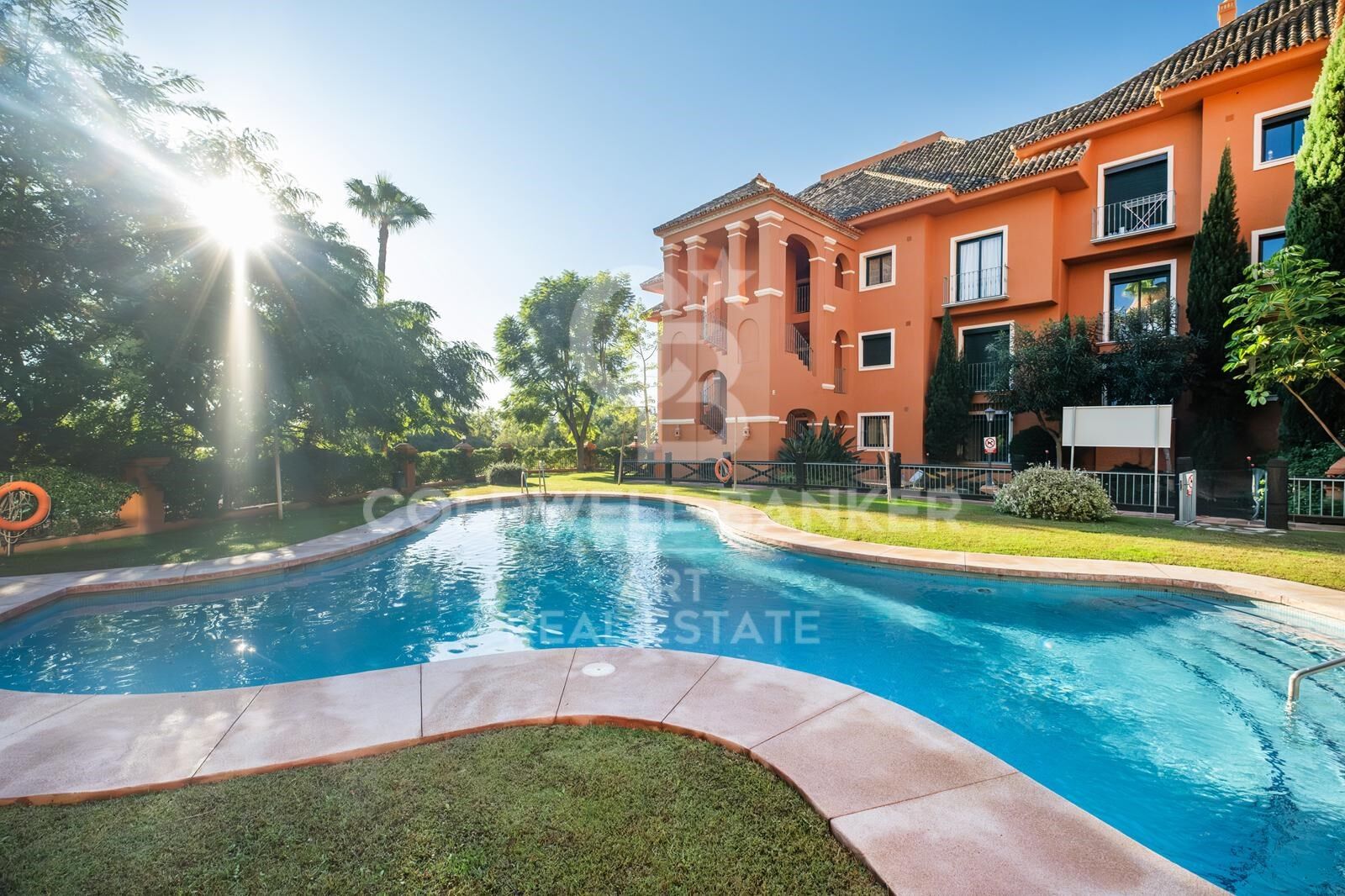 Set within the renowned El Real de Monte Halcones complex, the apartment boasts a sought-after south-west orientation, bathing the home in natural light and offering spectacular vistas. Built in 2005, the development is known for its timeless design, spacious interiors, and impressive high ceilings.