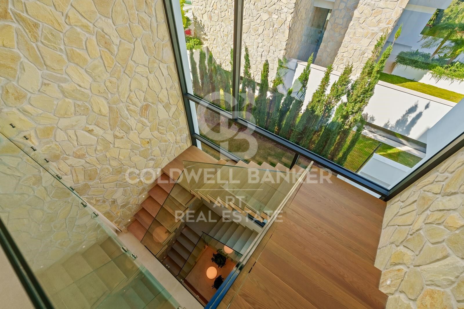 Magnificent contemporary residence located within the private enclave in La Quinta, Marbella. Created by Cogitari Homes, it reflects the perfect harmony between sophisticated architectural design and the serene natural beauty that surrounds it. Set between the Mediterranean Sea and La Concha mountain, this exclusive villa enjoys panoramic views over the golf valley and coastline while offering total privacy and tranquility.