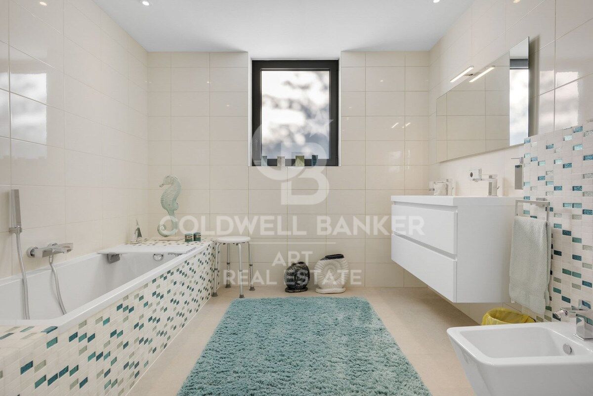 The outdoor area is equally impressive, with a stunning infinity pool and multiple lounging areas perfect for relaxation and sunbathing. The heated pool, reaching depths of up to 2.7 meters, offers a luxurious setting for both swimming and unwinding. Thanks to its south-west orientation, the property enjoys sweeping views of the sea, garden, pool, coastline, and surrounding mountains.