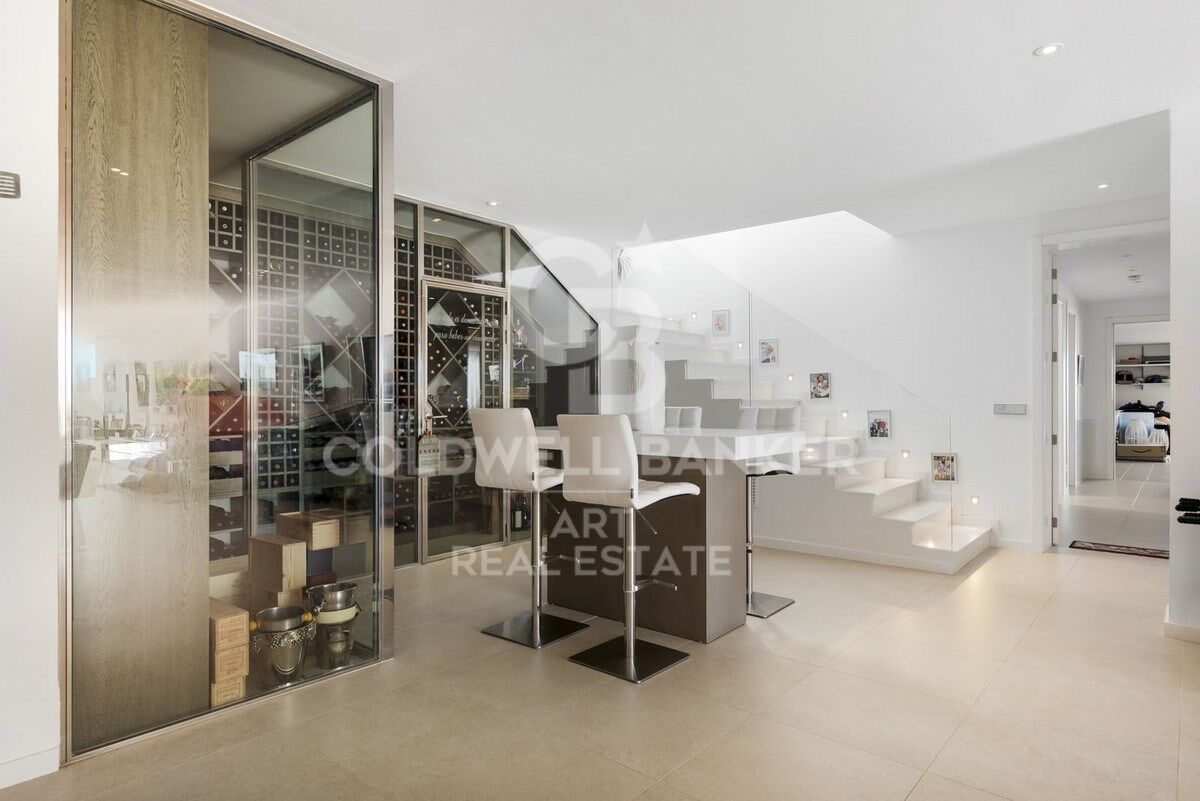Upon entering, you're immediately welcomed by the villa's contemporary elegance. Its open-plan design seamlessly connects each living space, enhanced by soaring ceilings and expansive floor-to-ceiling windows that flood the interior with natural light. The avant-garde interior features sleek, modern lines and understated sophistication, creating an atmosphere of refined comfort.
