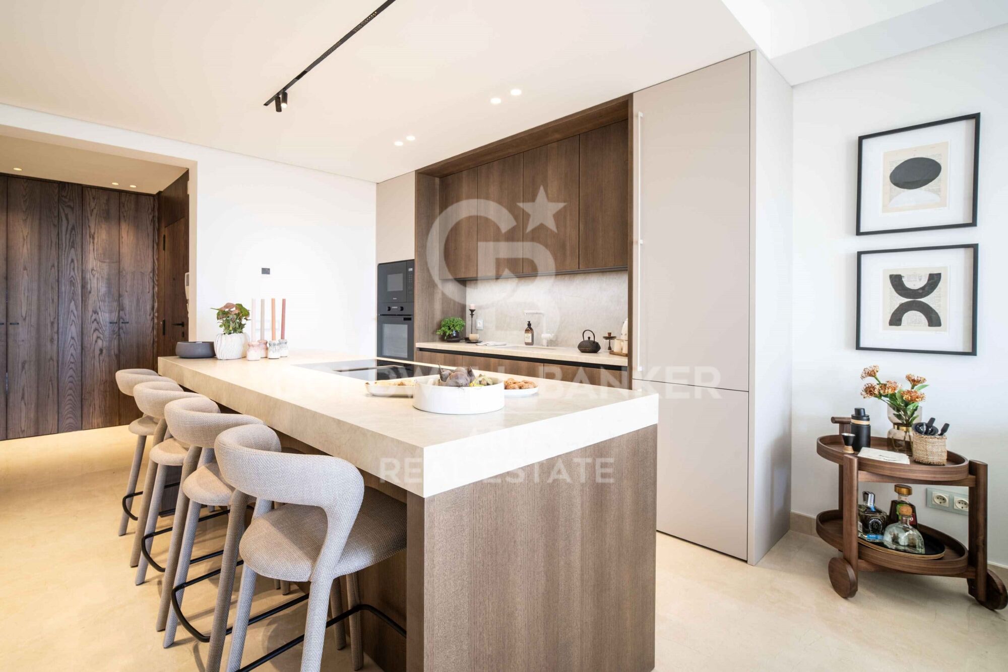 Inside, the penthouse boasts an open-plan design that seamlessly blends modern sophistication with practical functionality. The living area flows effortlessly into a state-of-the-art kitchen, equipped with high-end appliances, ample storage, and generous counter space, perfect for both daily living and hosting guests. With three beautifully appointed bedrooms, the master suite is a standout, offering a serene retreat with stunning views and a luxurious en-suite bathroom that exudes elegance.