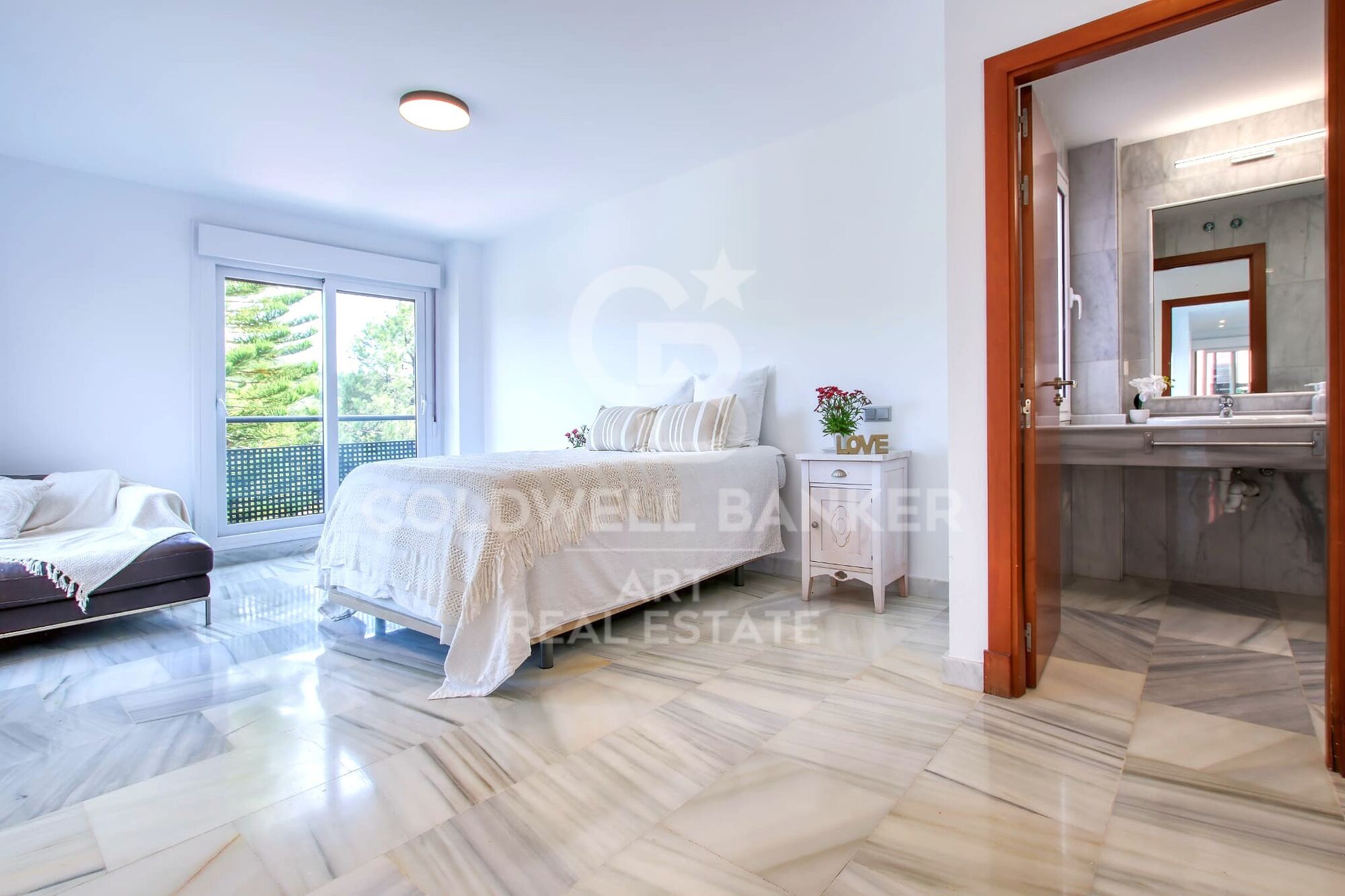 On the lower floor, there is the second suite, the third bedroom, and a full bathroom, all with beautiful views and direct access to the garden.