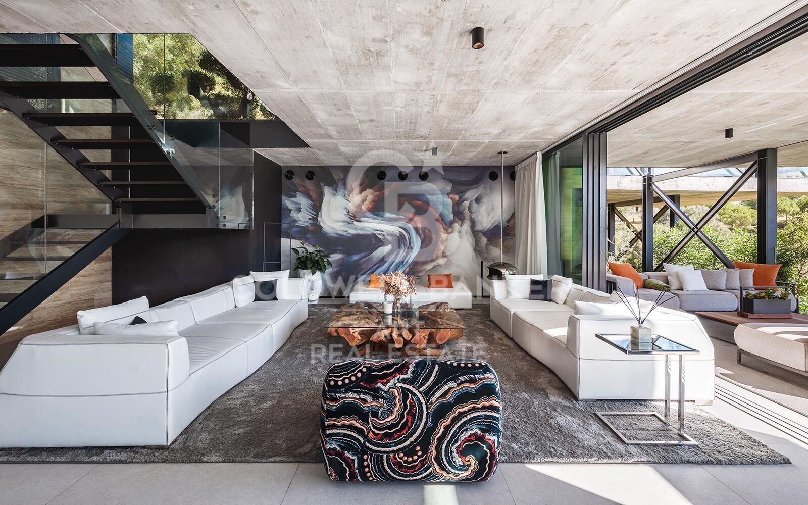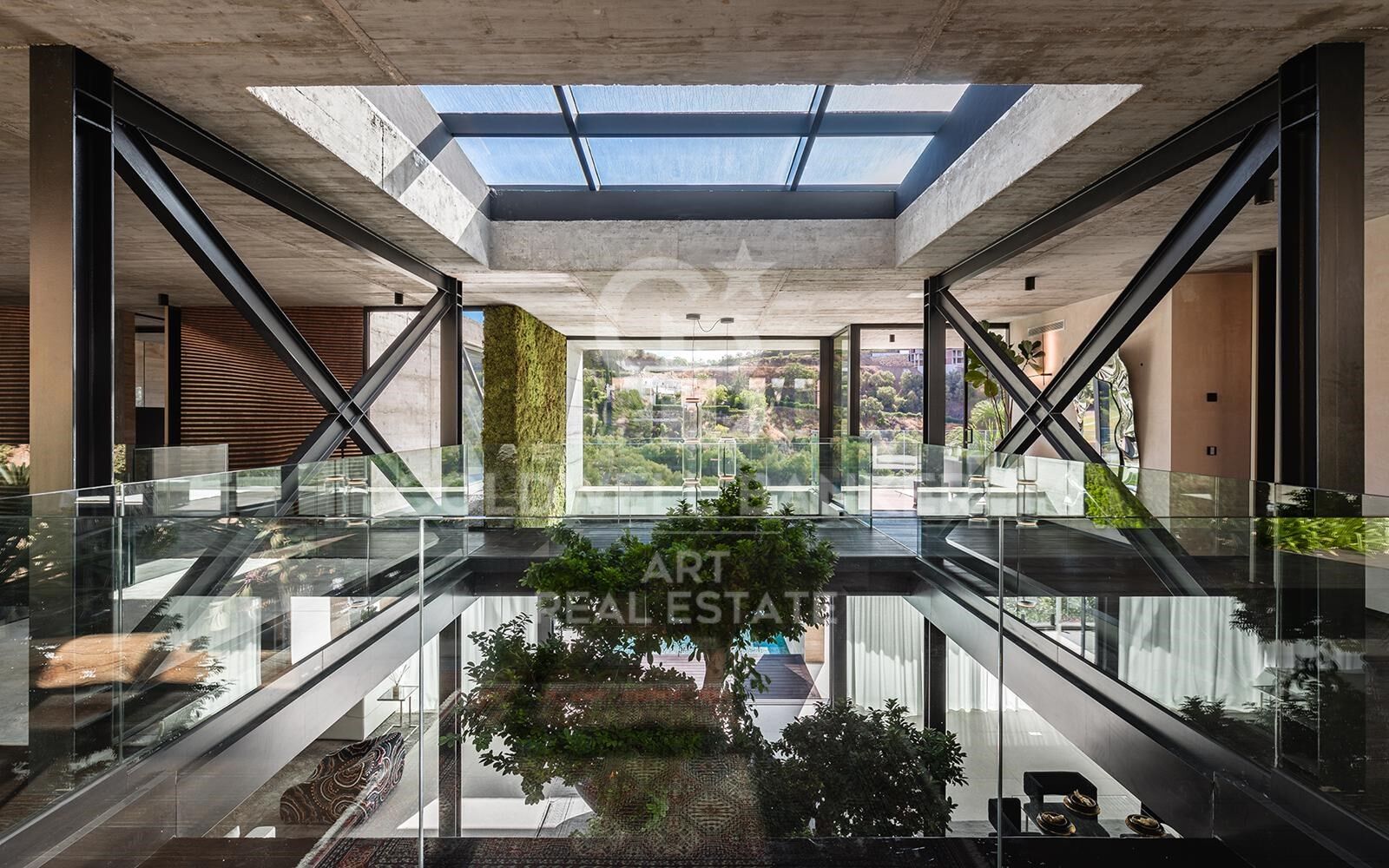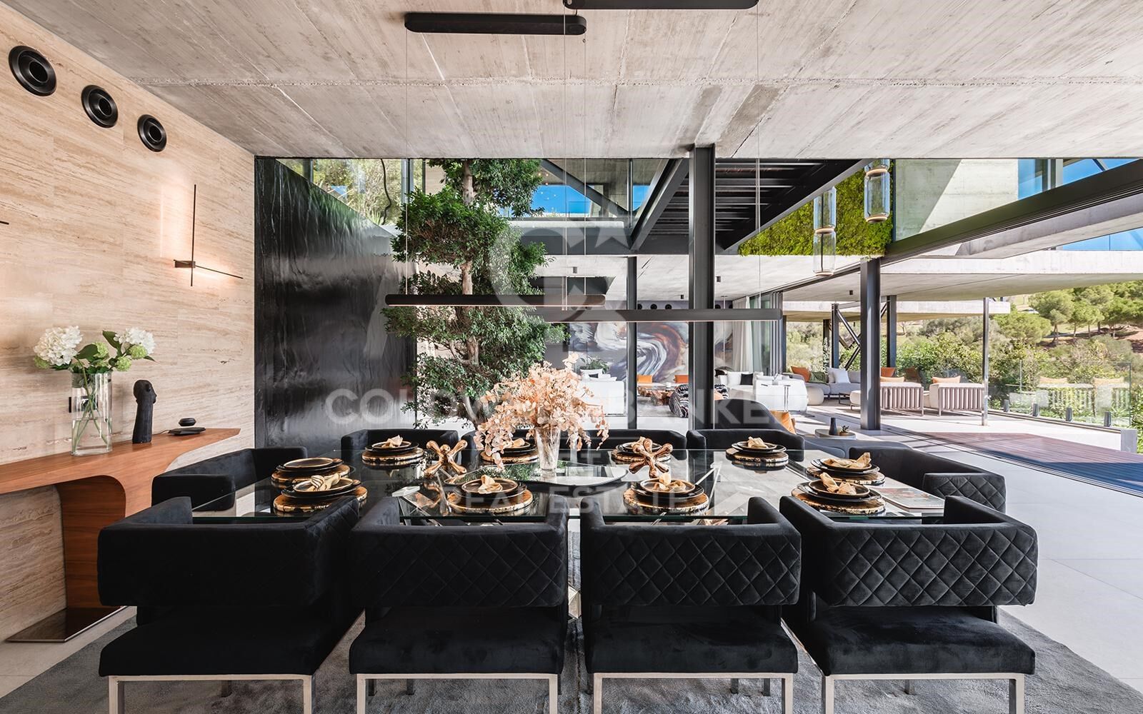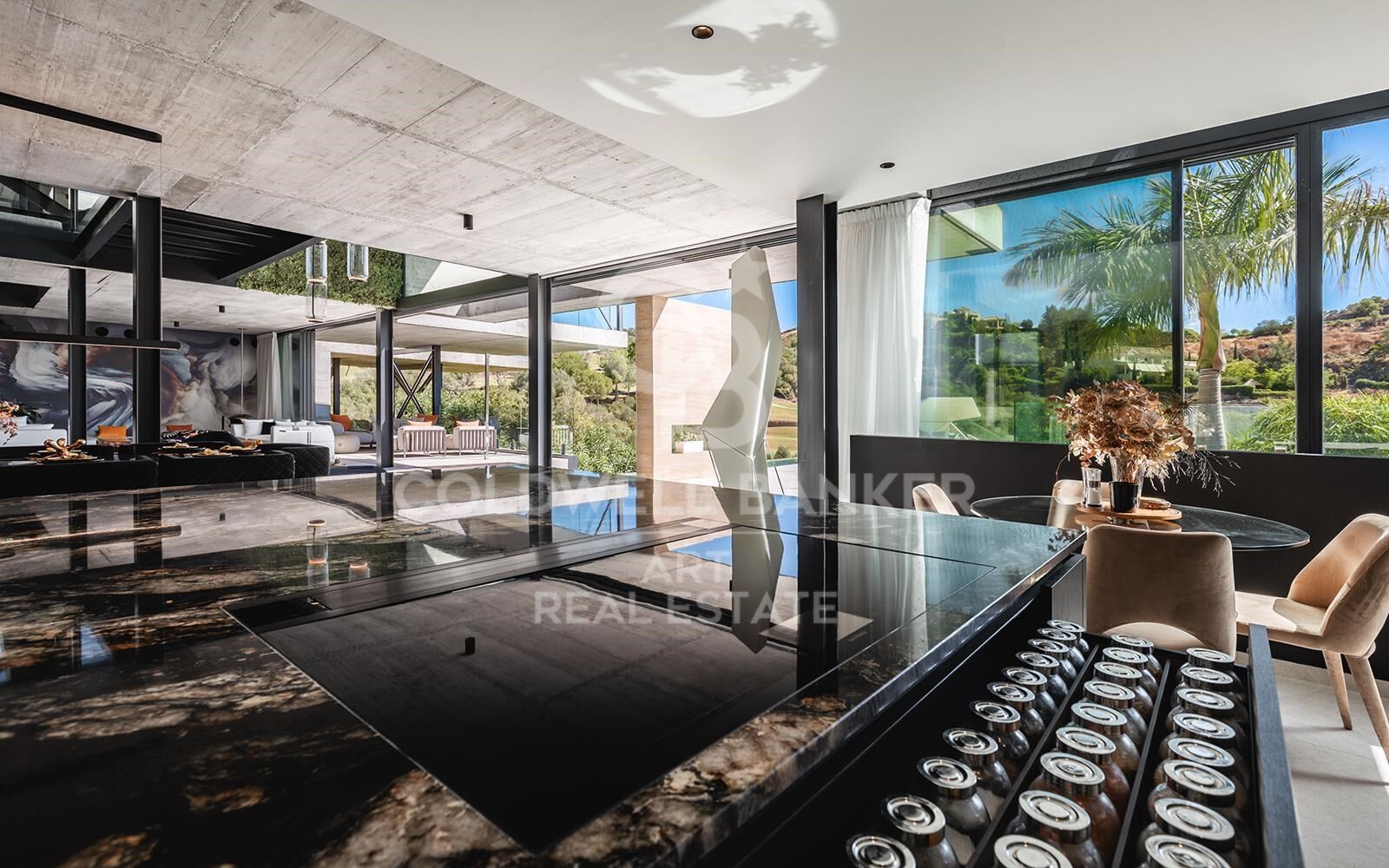 Set at one of the highest vantage points in the exclusive gated community of El Herrojo Alto, this extraordinary residence represents the epitome of contemporary architectural excellence. A true statement home, it seamlessly combines bold modern design with timeless natural elements, all framed by sweeping panoramic views of the surrounding landscape. A scenic, tree-lined approach introduces the property, culminating in a grand entrance and expansive driveway that set the tone for what lies within. The exterior's striking geometry is softened by the warm texture of organic materials, creating an inviting yet sophisticated first impression. Step inside to a world of light and openness, where floor-to-ceiling windows flood the interior with natural sunlight and capture uninterrupted vistas. The main living area is anchored by a sculptural fireplace, elegantly separating the stylish lounge from the dining space and state-of-the-art kitchen. An adjacent outdoor kitchen and entertaining area further enhance the sense of effortless luxury living. Also on this level are two beautifully appointed guest suites with private en-suite bathrooms. The upper floor features three additional en-suite bedrooms, including a show-stopping master suite of over 70 m². This private sanctuary includes a spacious walk-in wardrobe, a luxurious bathroom, and an expansive terrace complete with a jacuzziperfect for soaking in the spectacular surroundings in total privacy. On the lower level, nearly 800 m² of exceptional living space unfolddesigned to elevate comfort, wellness, and entertainment. This level includes multiple lounges, a cinema room, games area, fully equipped gym, and an indulgent indoor spa with pool and jacuzzievery element thoughtfully curated to deliver an unmatched lifestyle experience. Additional highlights include a dedicated home office, garage space for up to eight vehicles, and three more en-suite bedroomsone of which features a separate entrance and kitchenette, ideal for guests or staff accommodation. A truly rare offering, this home is not merely a residenceit is an architectural landmark, crafted for those who demand the extraordinary. #ref:CBSH1170