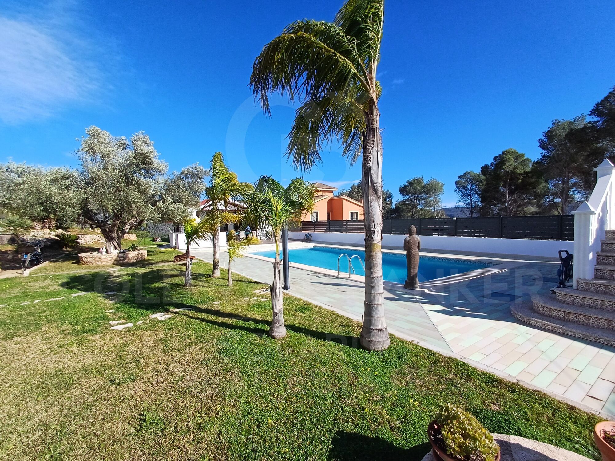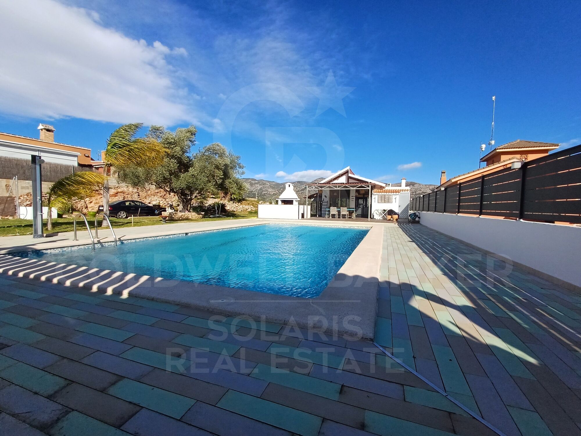 En el exterior, le espera una magnífica piscina de 6 x 12 metros, rodeada de baldosas antideslizantes y resistentes al calor, perfecta para disfrutar de los días soleados. Desde la vivienda y la terraza podrá contemplar unas vistas panorámicas del entorno natural, las montañas y el brillante mar a lo lejos.