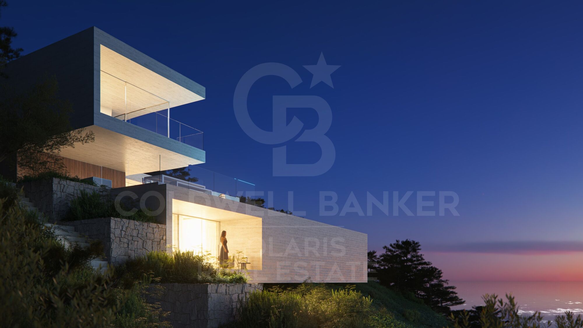 Esta villa tiene 4 plantas que están conectadas con un ascensor y una escalera interna. La planta baja cuenta con un amplio salón-comedor-cocina de concepto abierto y un aseo. La cocina está totalmente equipada y dispone de una isla para cocinar. Las puertas correderas de suelo a techo dan acceso directo a una amplia terraza y a la piscina.