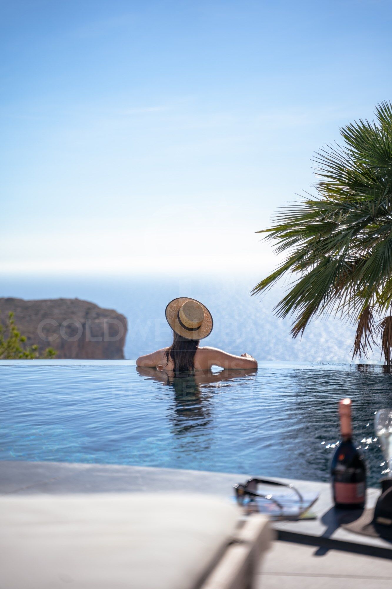 SUPERB OPPORTUNITY: Villa Camilia, a fully renovated villa offering complete privacy and breathtaking views of the Mediterranean Sea! Located in the prestigious urbanization of Cumbre del Sol, just 5 minutes by car from the Lady Elisabeth International School, this 163 m² villa, set on a 1,113 m² plot, provides the unique feeling of living right by the sea.