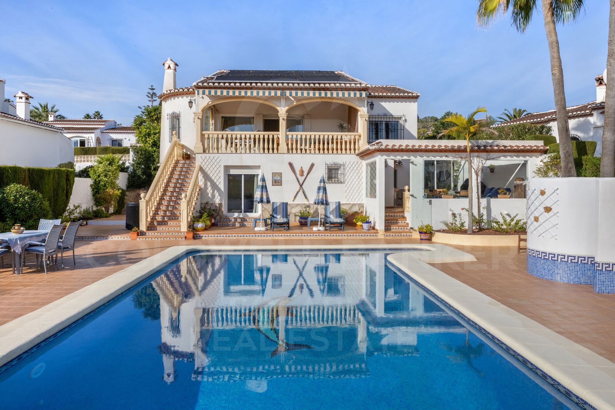 Welcome to this peaceful 4-bed, 2-bathroom villa with a heated pool and uninterrupted, panoramic day-and-night valley views of Benitachell and the surrounding landscape.