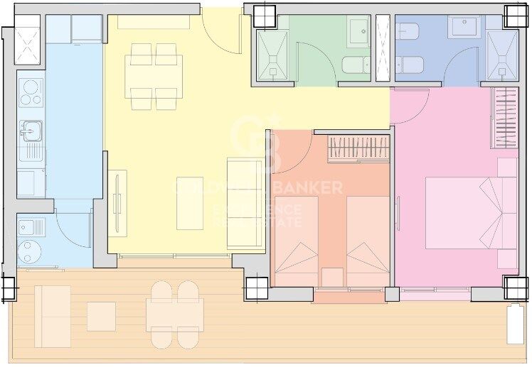 - B3N: 81 m2, 2 bedrooms, 2 bathrooms, garage. 19 m2 terrace. From €256,467